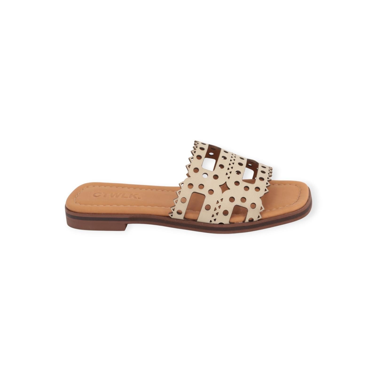 Slipper Genoa van CTWLK voor dames. Dit elegant muiltje is in beige geperforeerd leer. Is op een leren binnenzool met een antislip buitenzool.