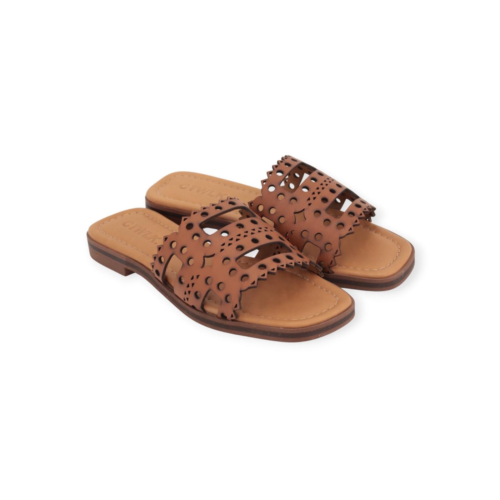 Slipper Genoa van CTWLK voor dames. Dit elegant muiltje is in cognac geperforeerd leer. Is op een leren binnenzool met een antislip buitenzool.