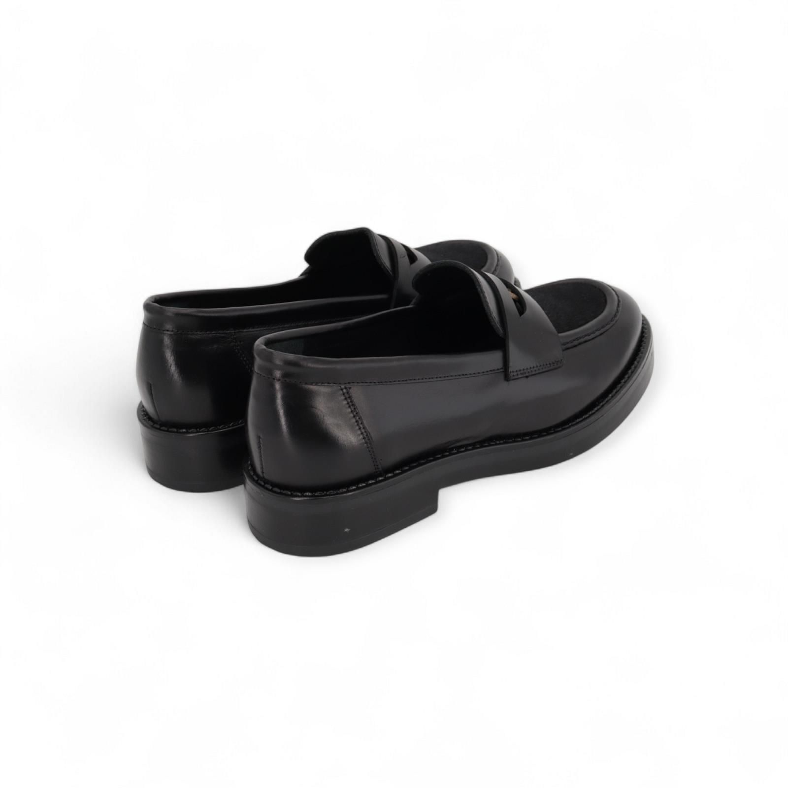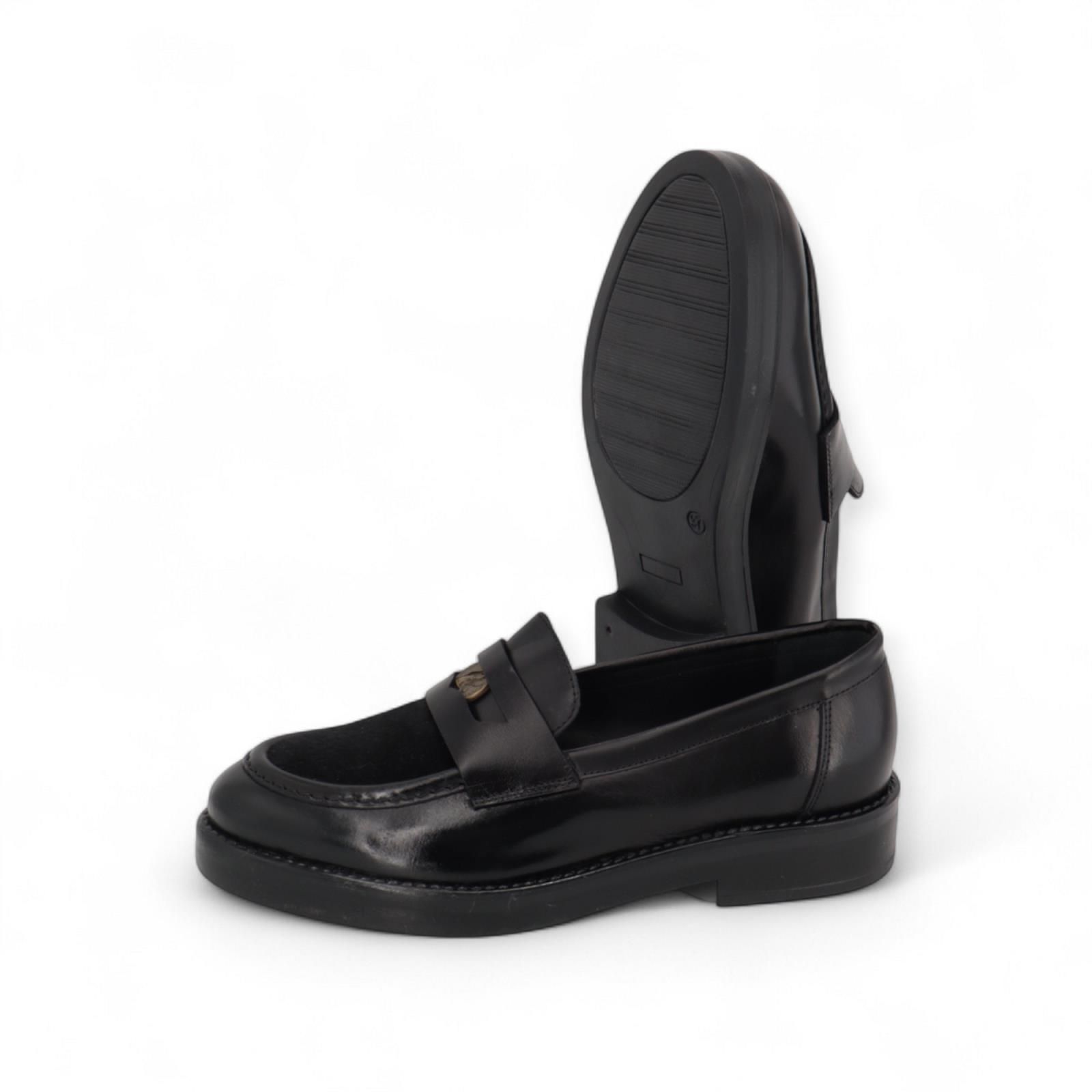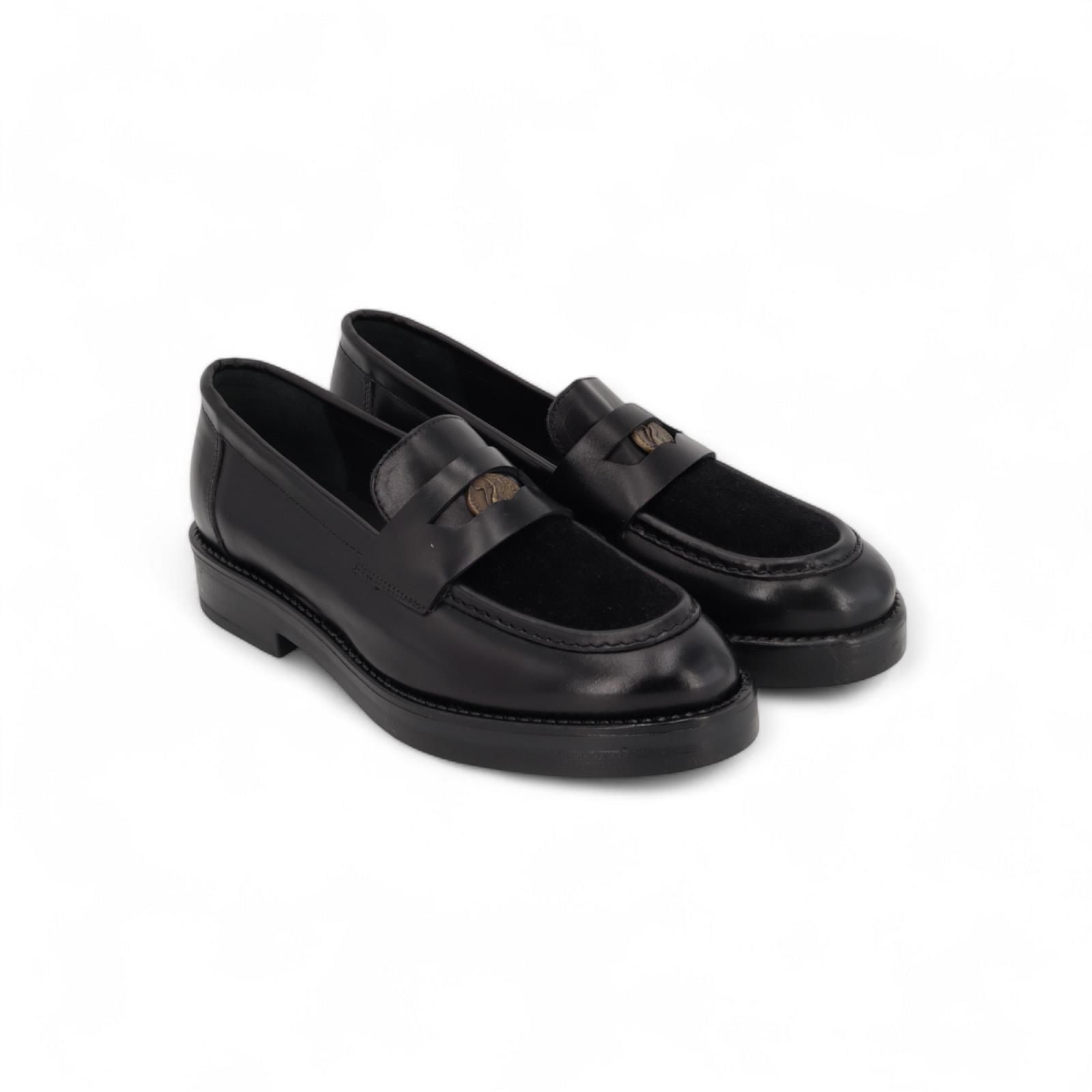 Mocassin Steph van CTWLK voor dames. Deze mocassin is in zwart leer met pels op de voorvoet. Afgewerkt met een band en gouden detail over de wreef. Heeft een geklede antislipzool.
