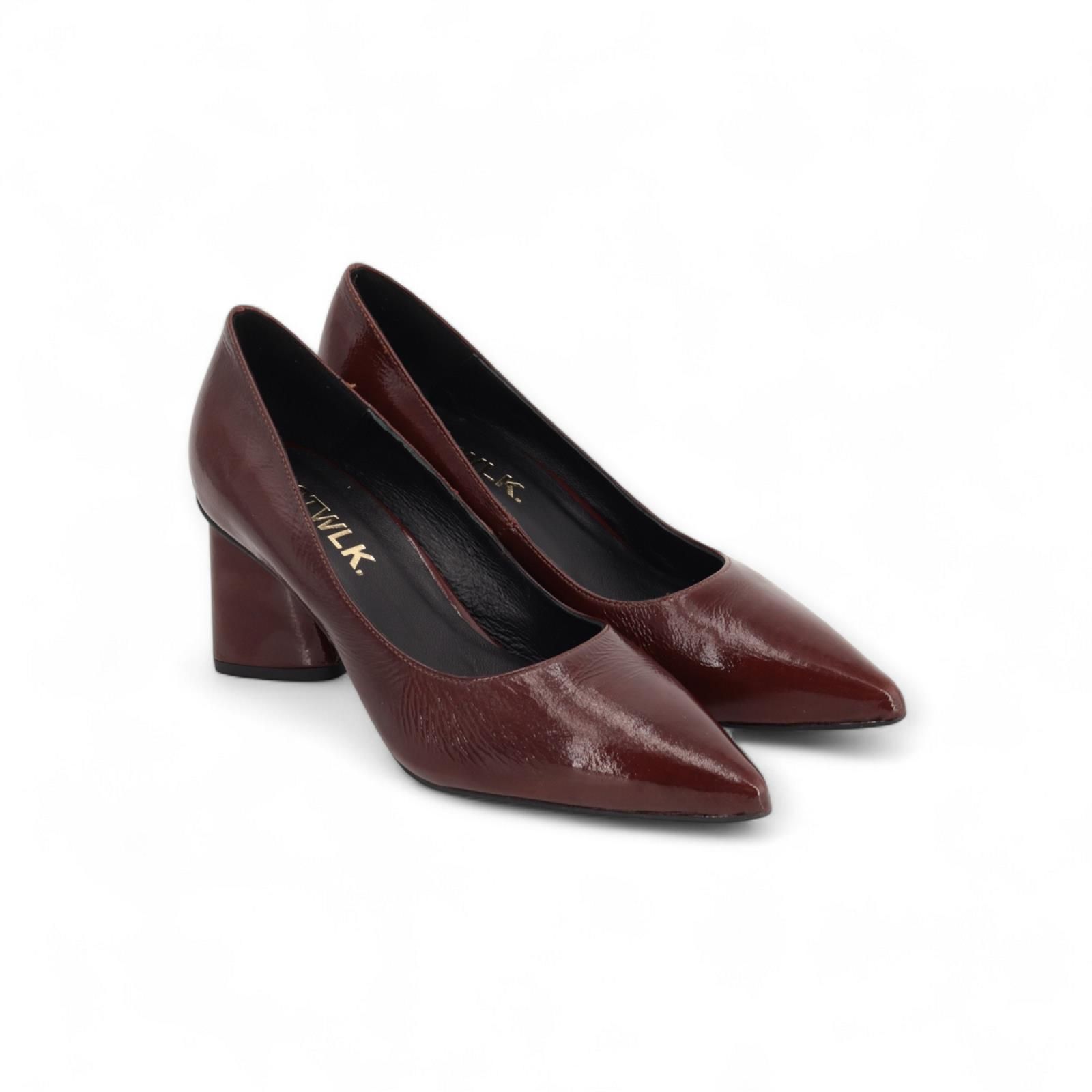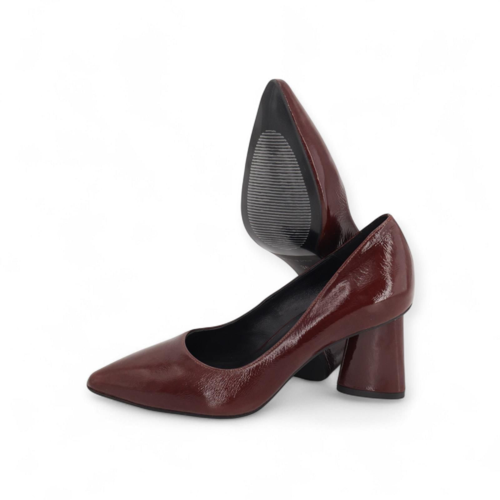 Pump Vancoover van CTWLK voor dames. Deze pump is in bordeaux lakleer. Is afgewerkt met een scherpe top en een cilindervormige hak van 7-7,5cm hoog.