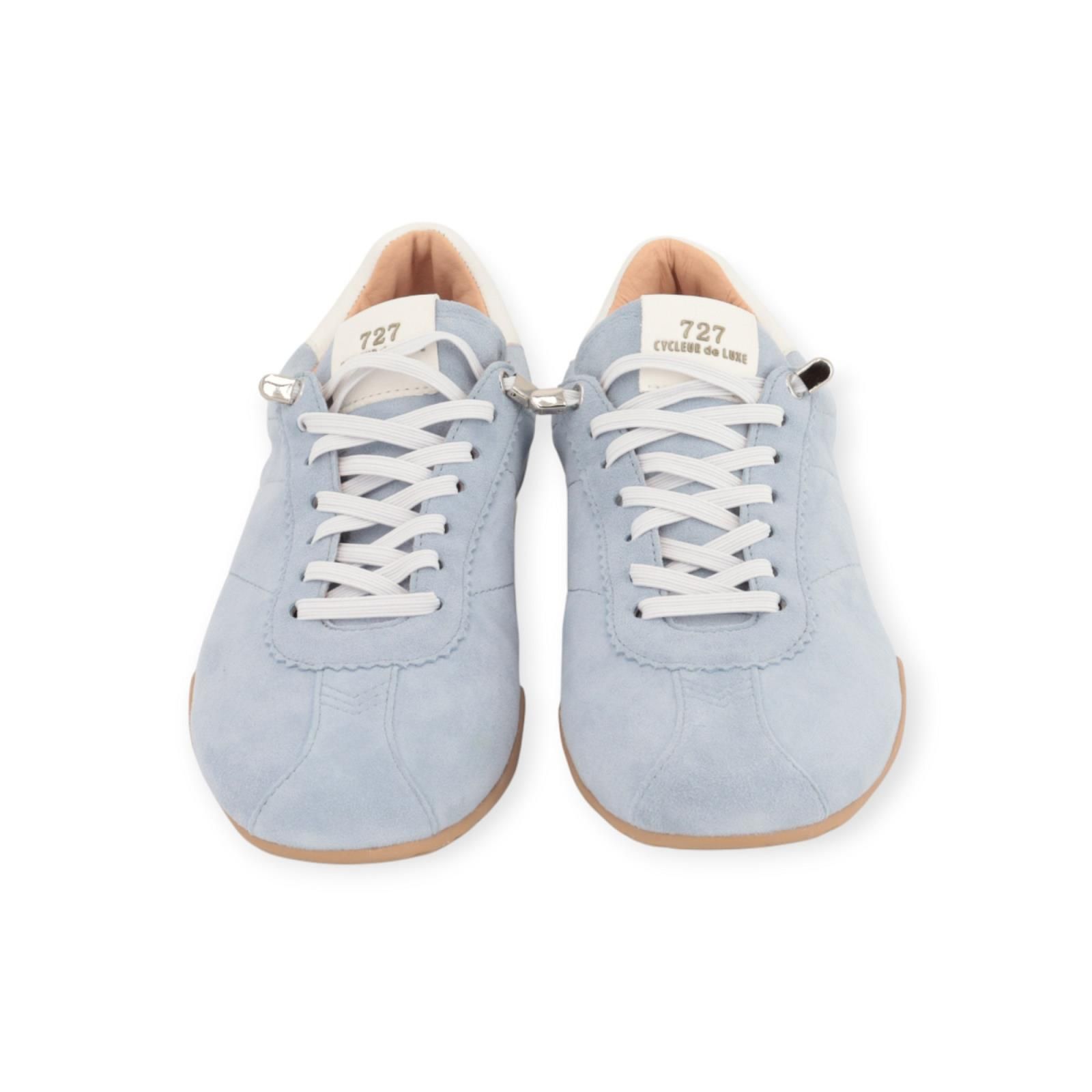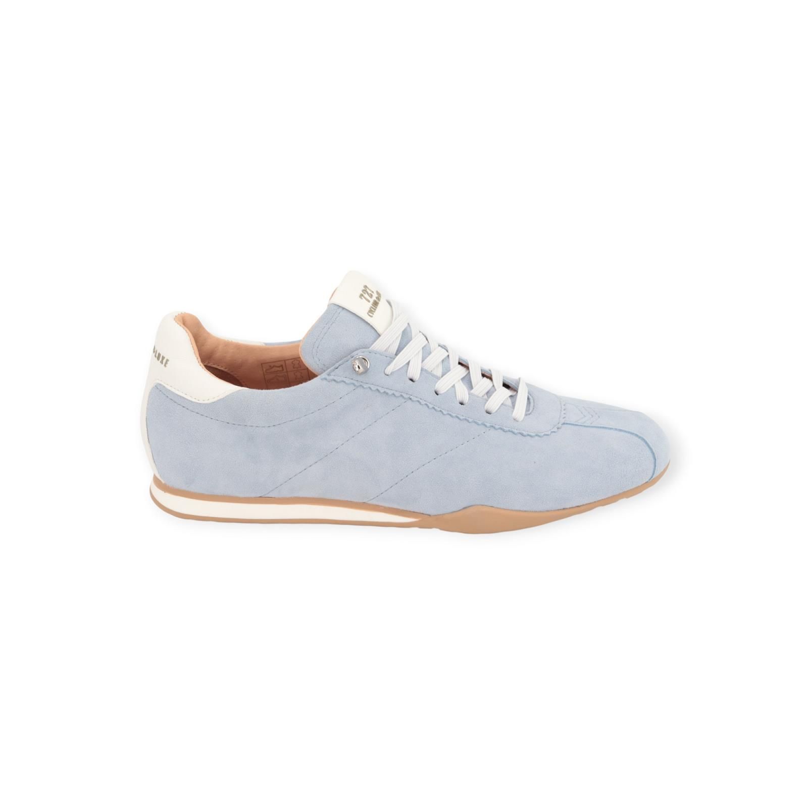 Sneaker DL08 van Cycleur De Luxe voor dames. Deze lage sneaker is in lichtblauw suède met wit leer aan de flap en hielflap met logo. Is mooi afgewerkt met fijne stiksels en rond de elastische veters gekarteld leer. Heeft een zacht dempende uitneembare binnenzool en een fijn rubberen buitenzool. De elastische veters zorgen voor een makkelijk comfort en hoef je niet aan te knopen.