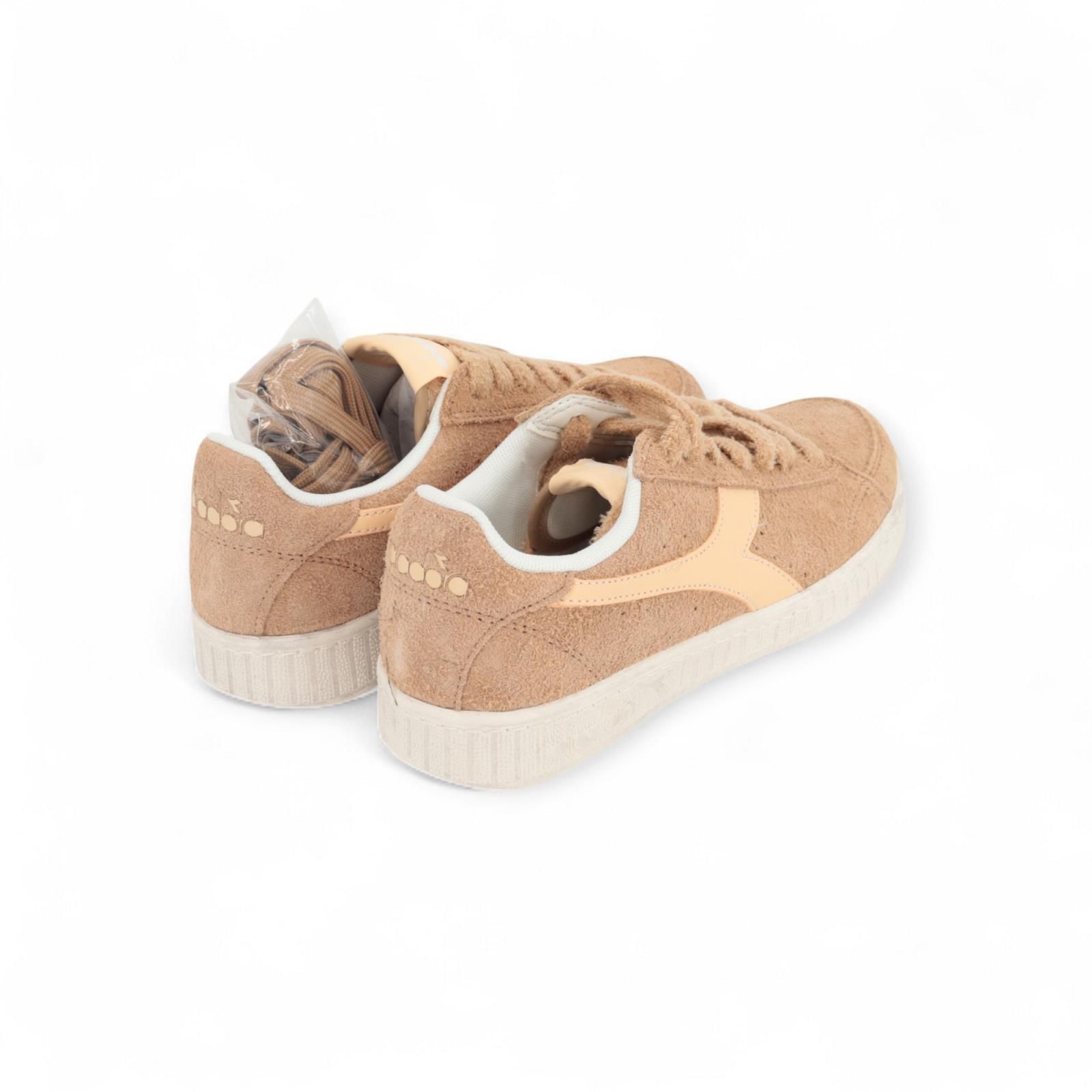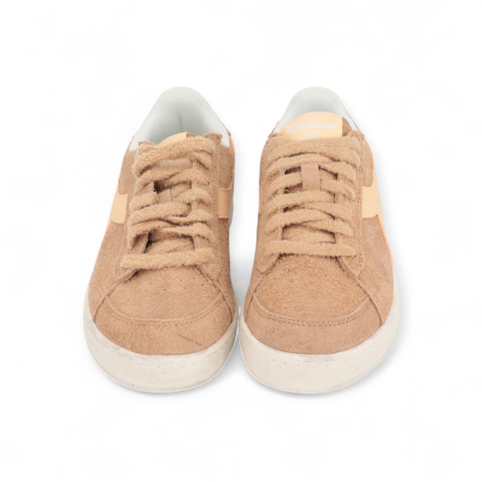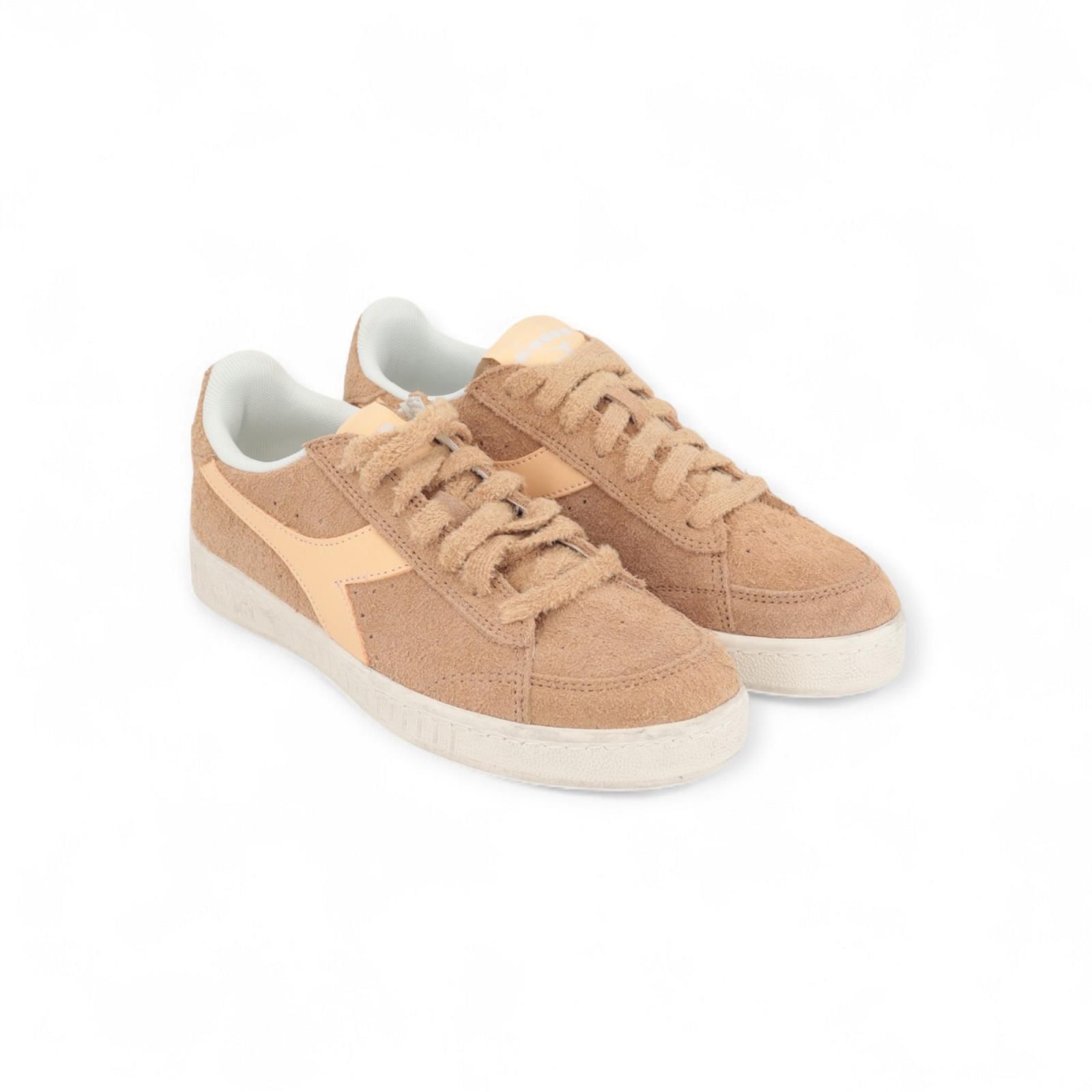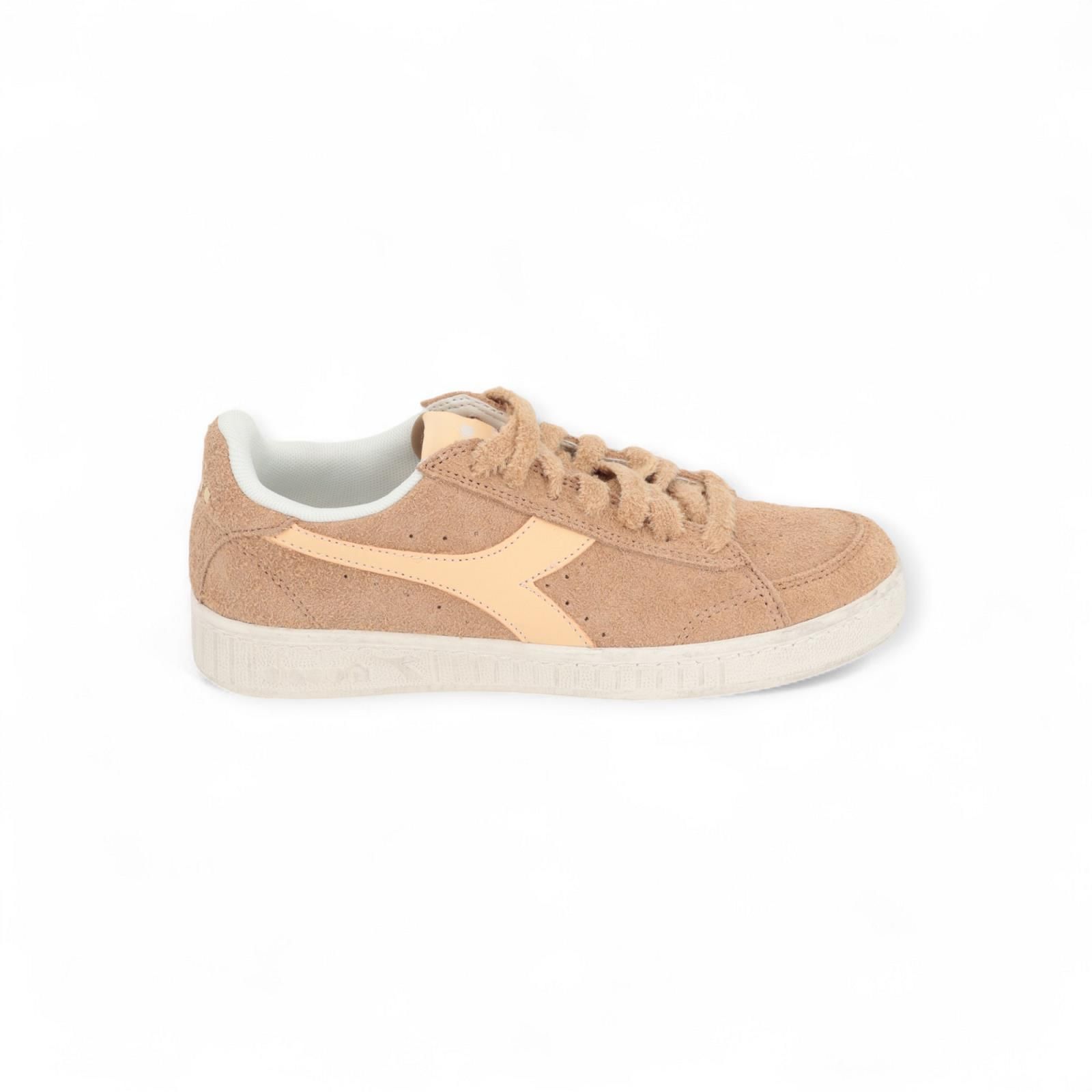 Deze Game Low suède Waxed voor dames is dé populairse stijl aller tijden. Dit is de lage versie en is uitgevoerd met een winterse twist: een bovenwerk van harig beige suède met zacht nude Diadora lijnen. Is op een plooibare waxed buitenzool.