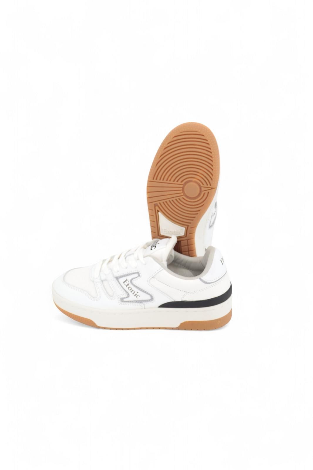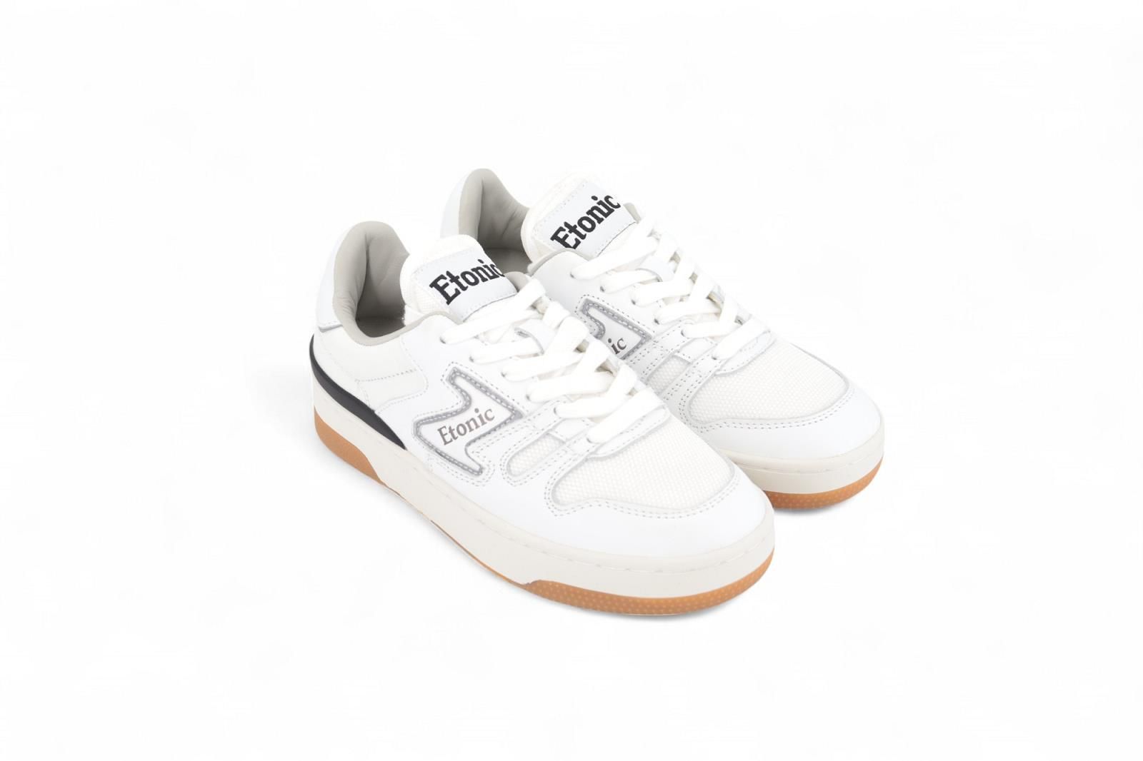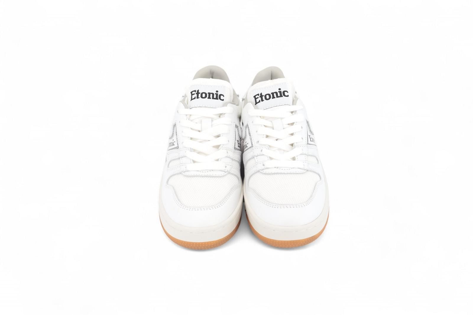 Etonic B481 MSH sneaker voor dames en heren. Deze witte sneaker is met wit mesh en wit leder inzetstukken. Afgewerkt met een grijze touch aan de hielflap en zijkant. Heeft nog een extra zwart 3D detail aan de hiel. Heeft een dikke off wit sneaker tussenzool met een bruine buitenzool. De binnenzool is uitneembaar.