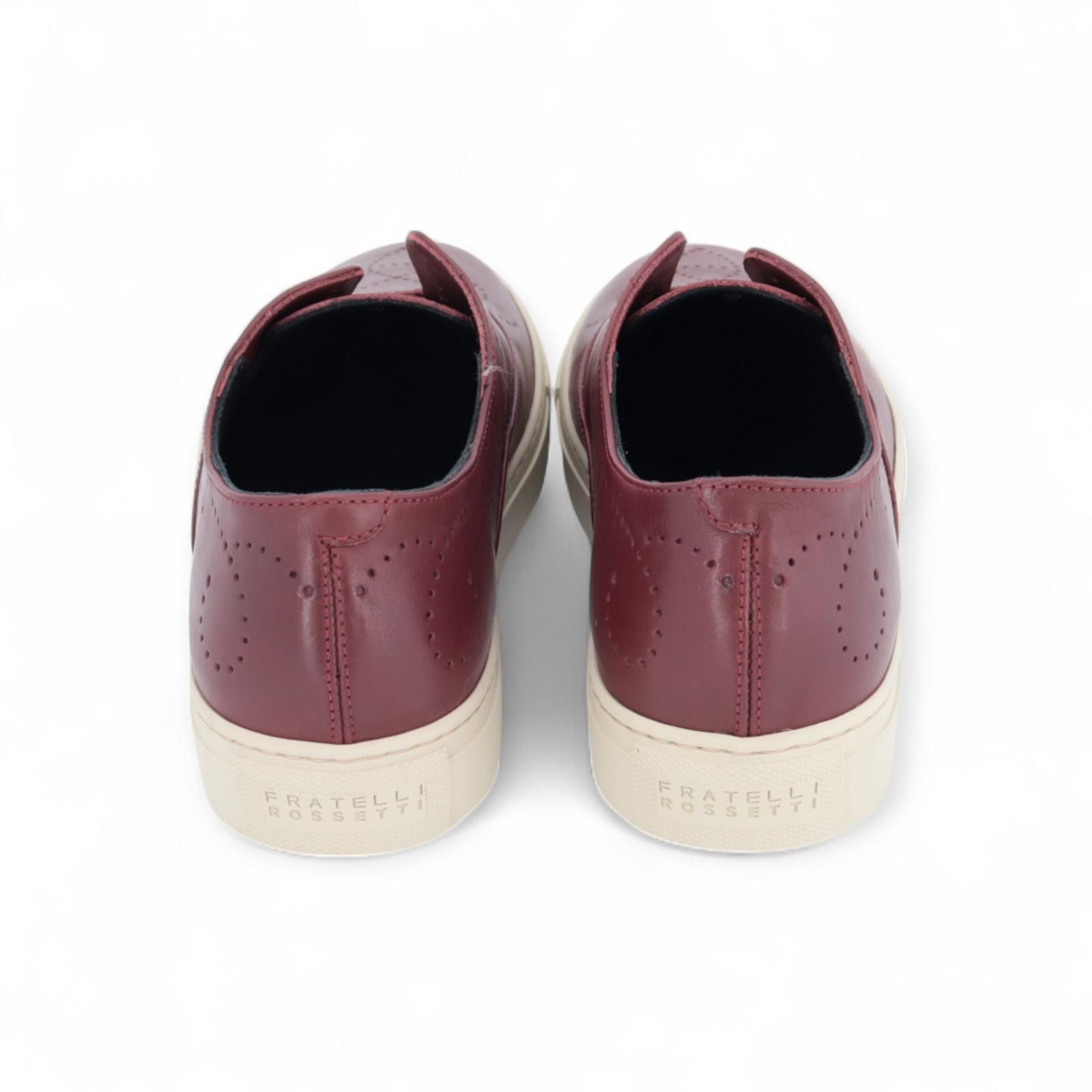 Deze iconische Hobo sneaker van Fratelli Rossetti voor dames is uit de Rossetti one collectie. Gemaakt van zacht bordeaux leder met geperforeerde details. Casual en verfijnd.Kan zonder veters worden gedragen. Heeft een uitneembare en ademende binnenzool en is op een zachte rubberen off wit cupzool.