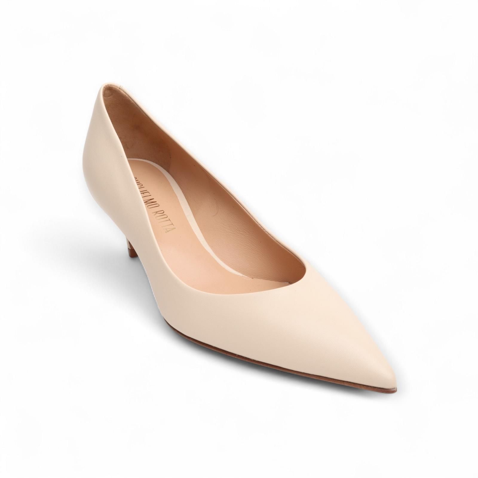 Pump Alexis in beige van Guglielmo Rotta voor dames. Deze elegante en comfortabele pump is volledig in leder. Heeft een scherpe top en is op een klein hakje van 5-5.5cm hoog.
