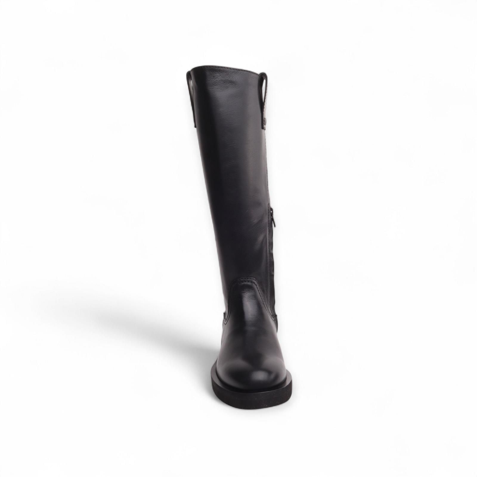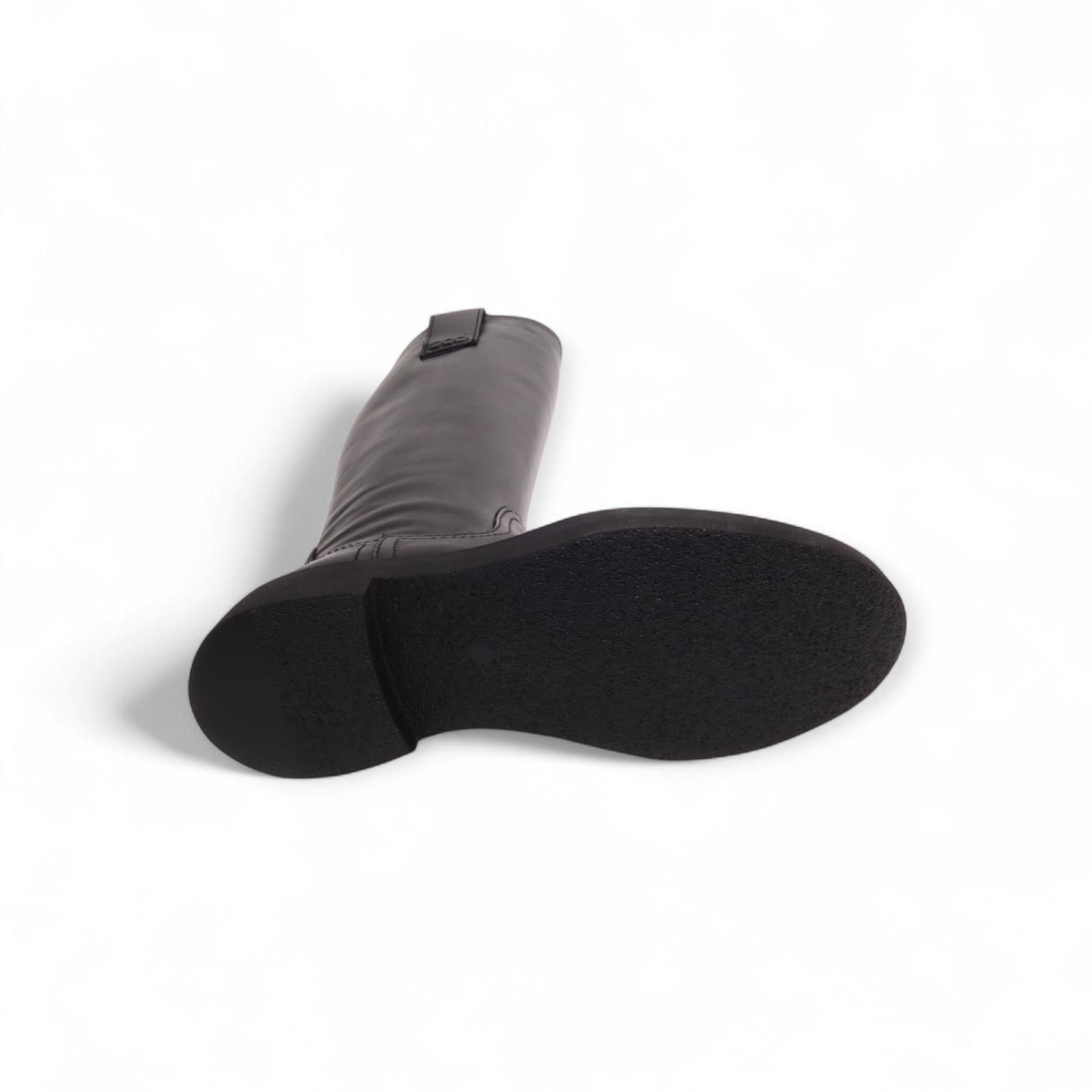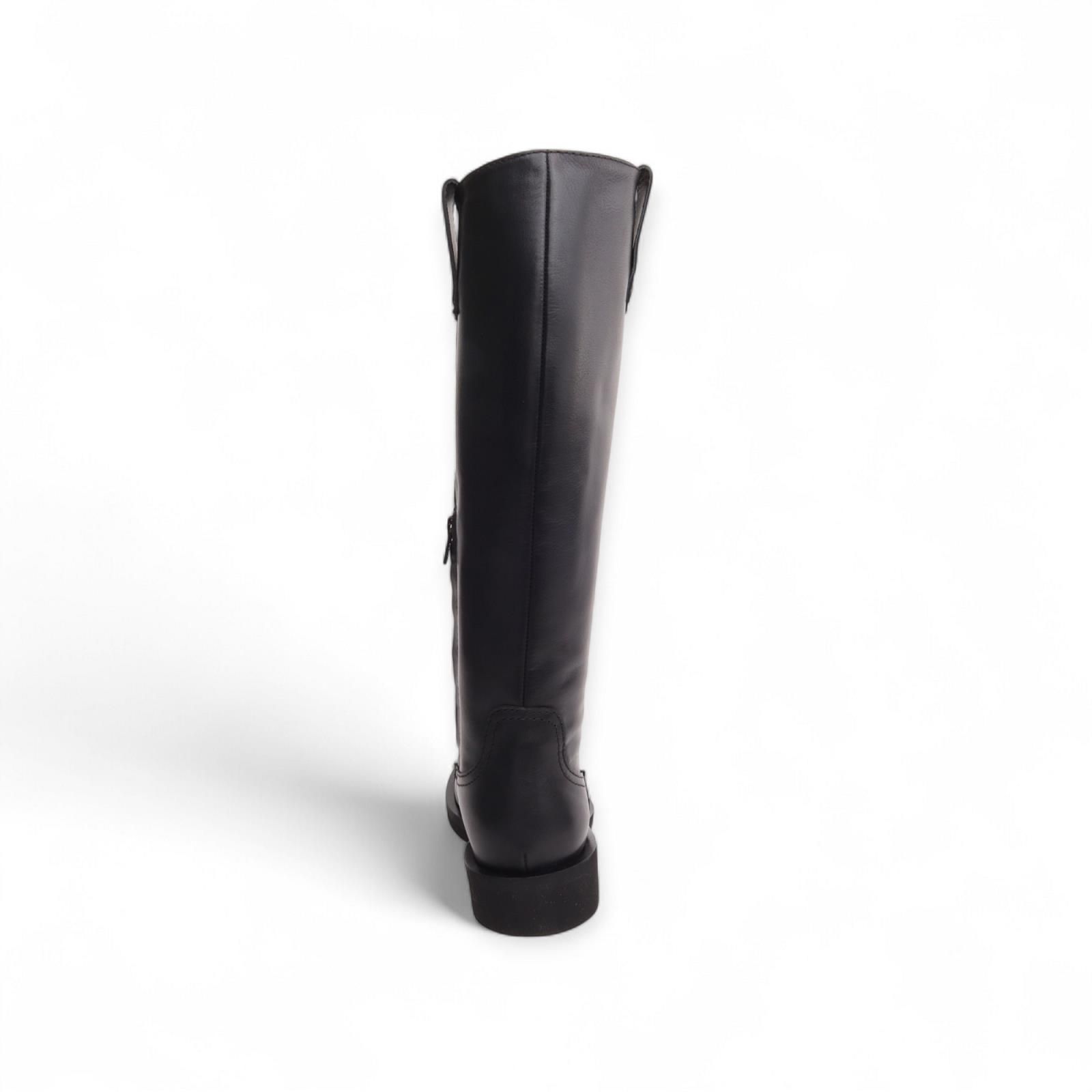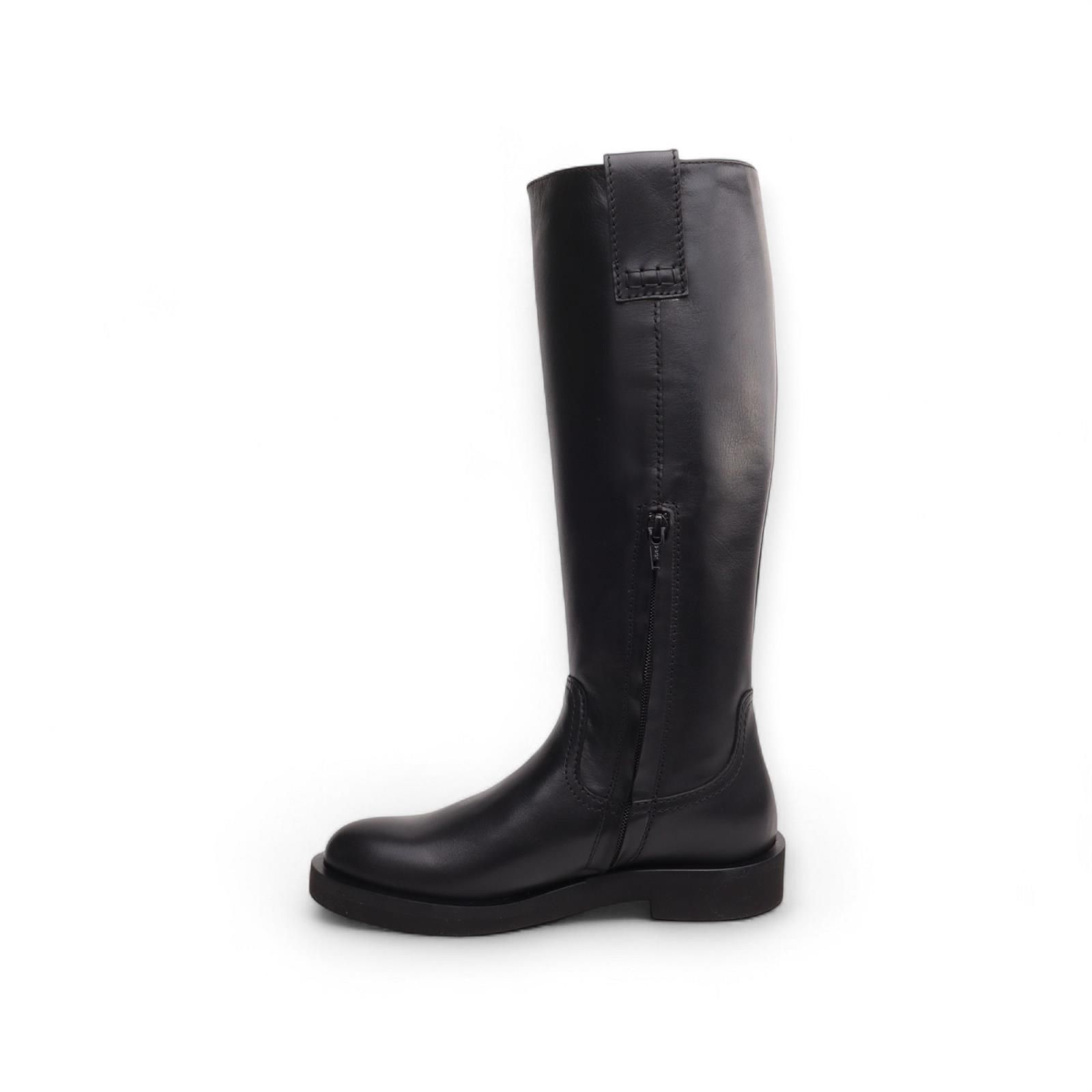 Laars Britney van Guglielmo Rotta voor dames. Deze laars is in zwart leder, heeft 2 extra lusjes aan de zijkant. Is met een ritssluiting vanaf het midden. Is op een dikke antislipzool.