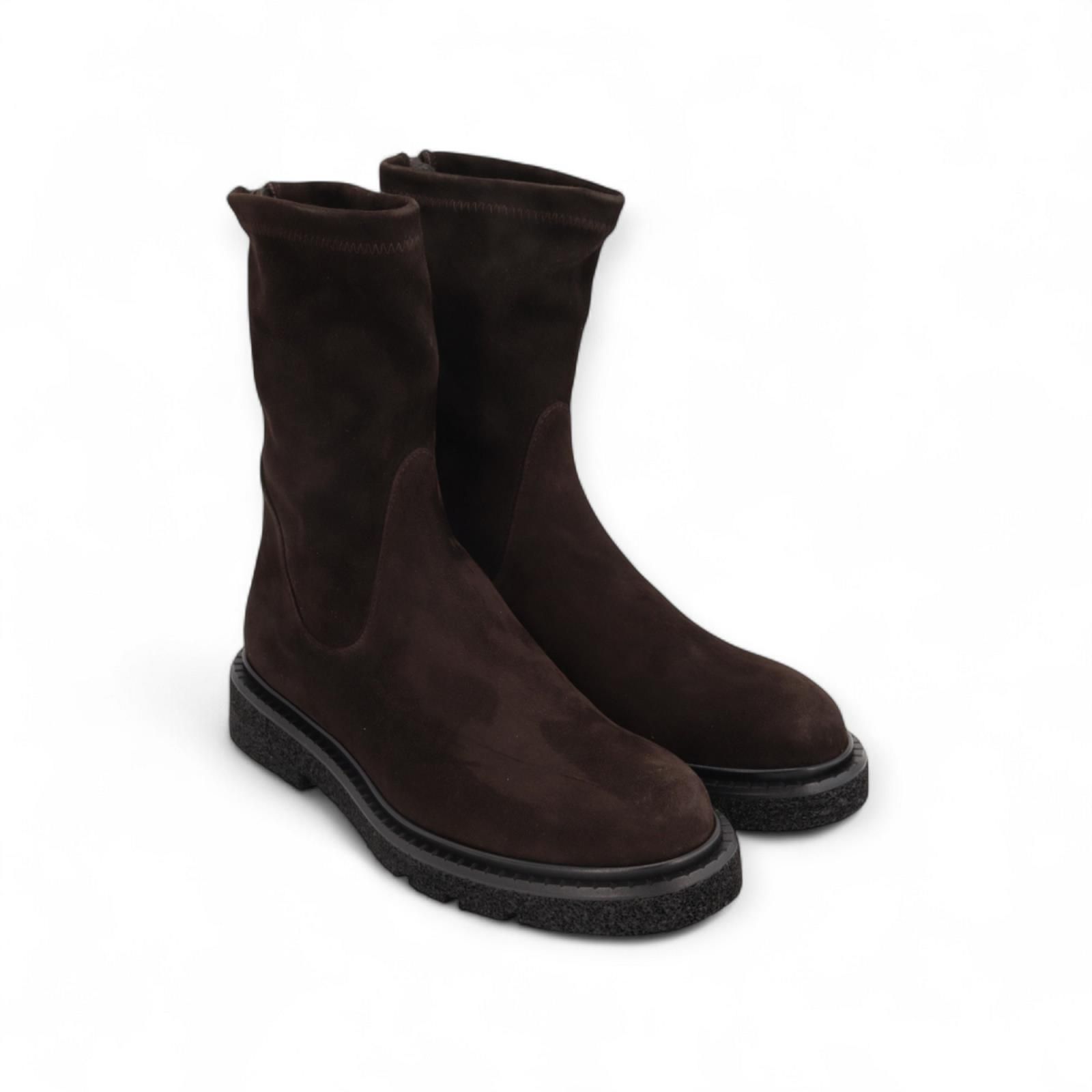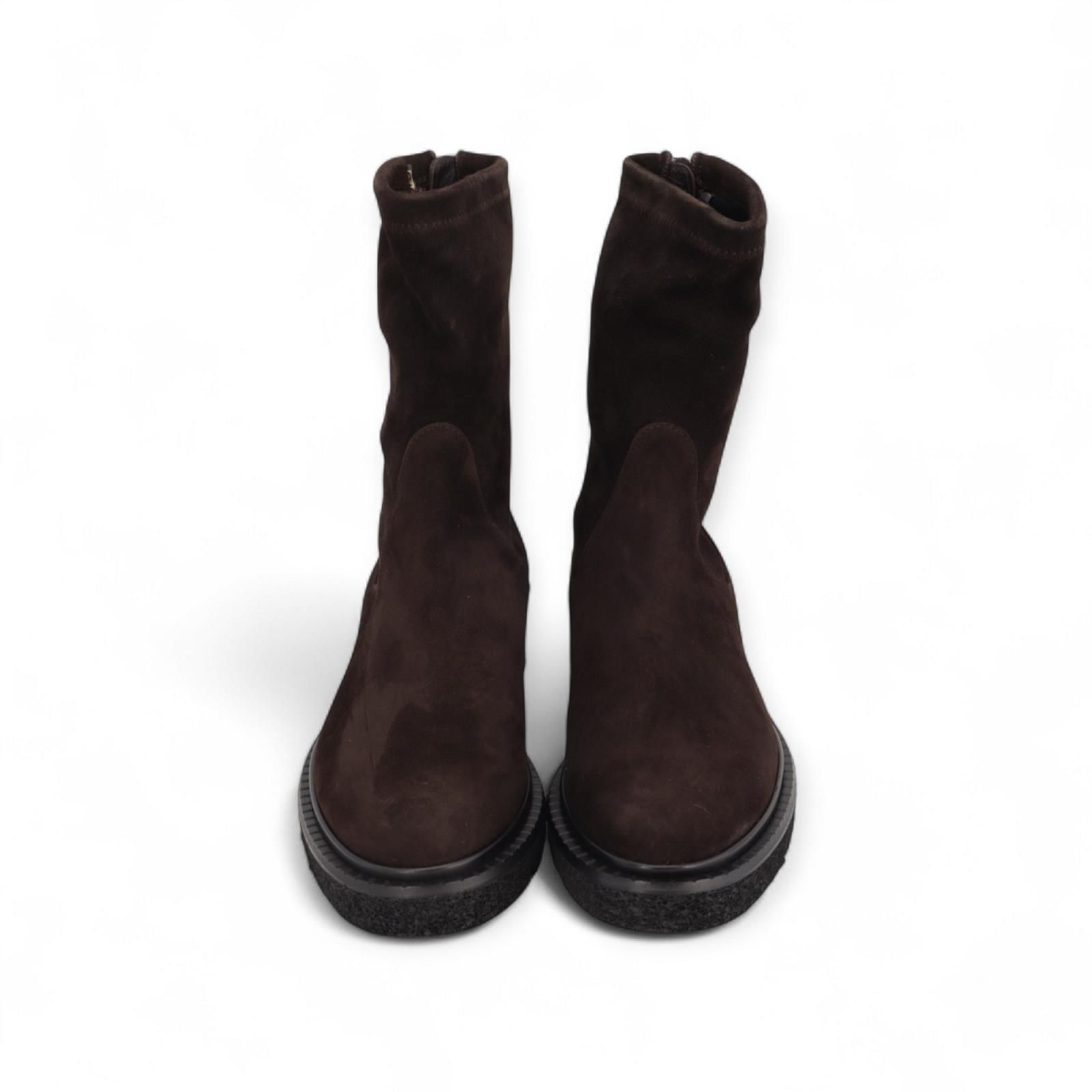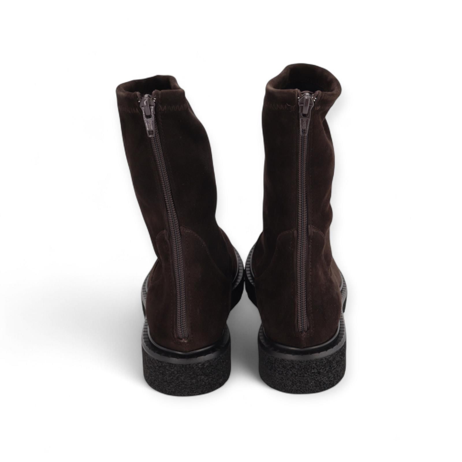 Enkellaars Krisalyn van Guglielmo Rotta voor dames. Deze elegante enkellaars is in bruin suède. Heeft een ritssluiting aan de achterkant en sluit mooi aan rond de enkel. Is op een aangename dikke microzool.