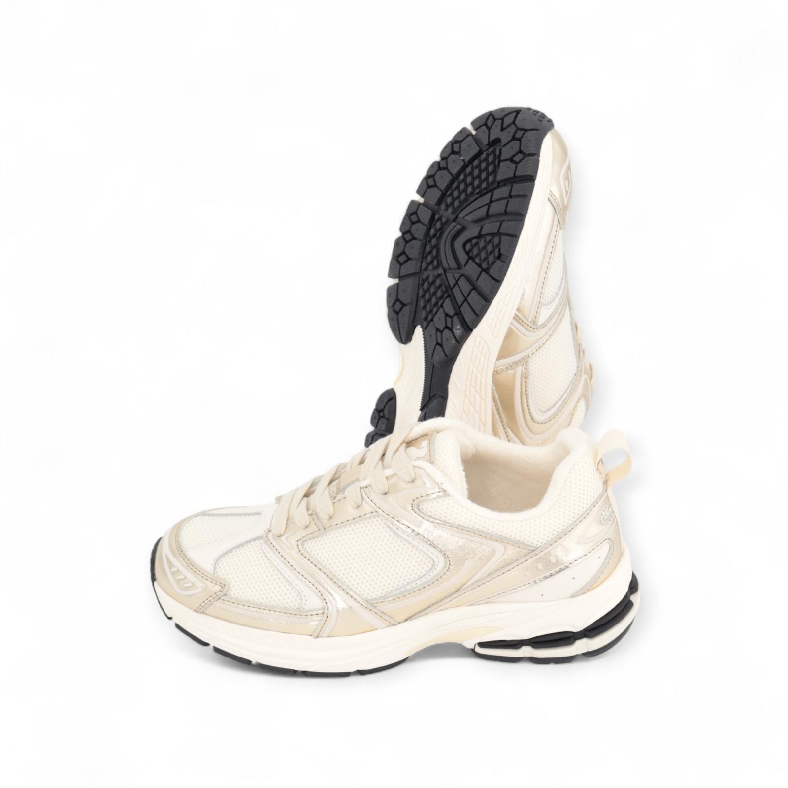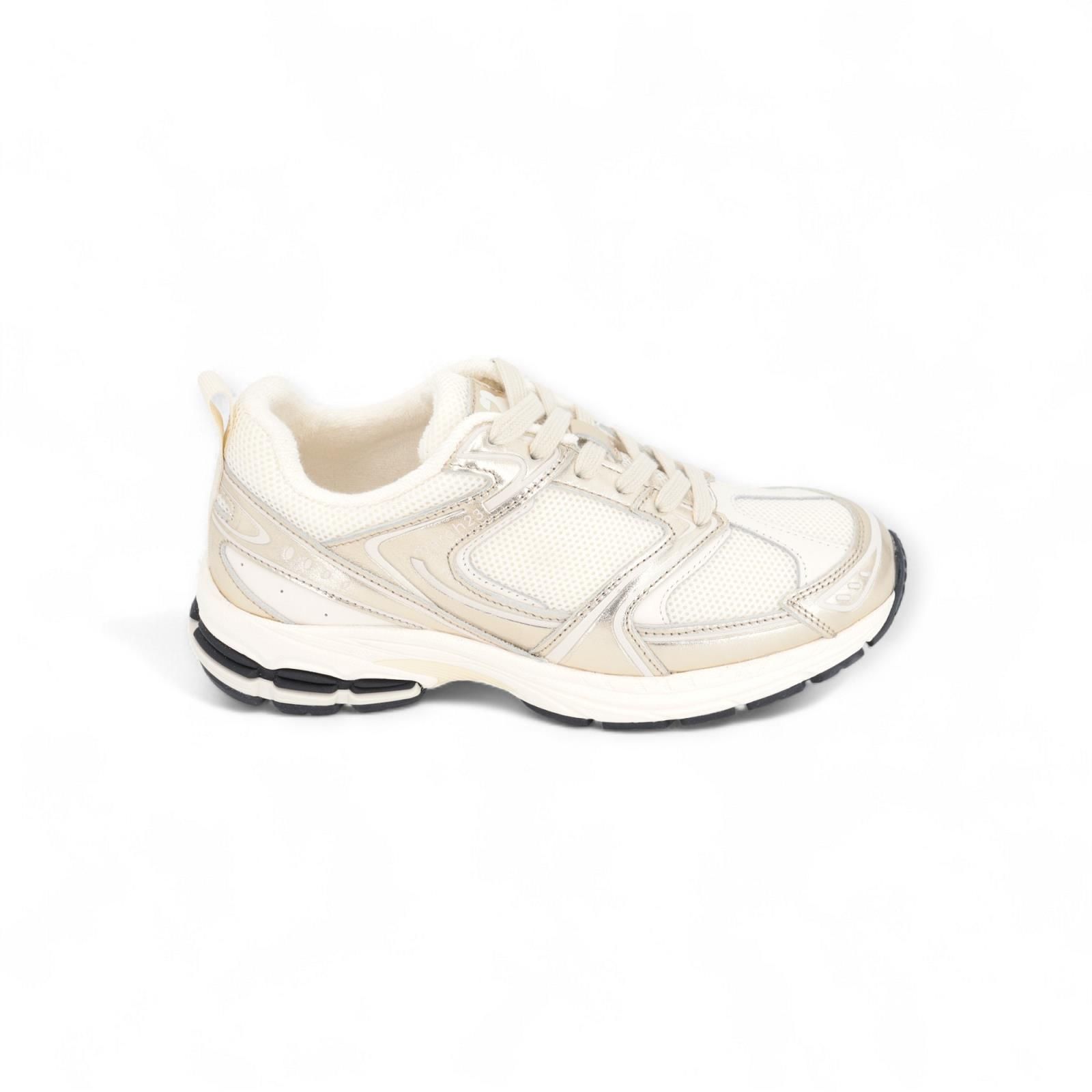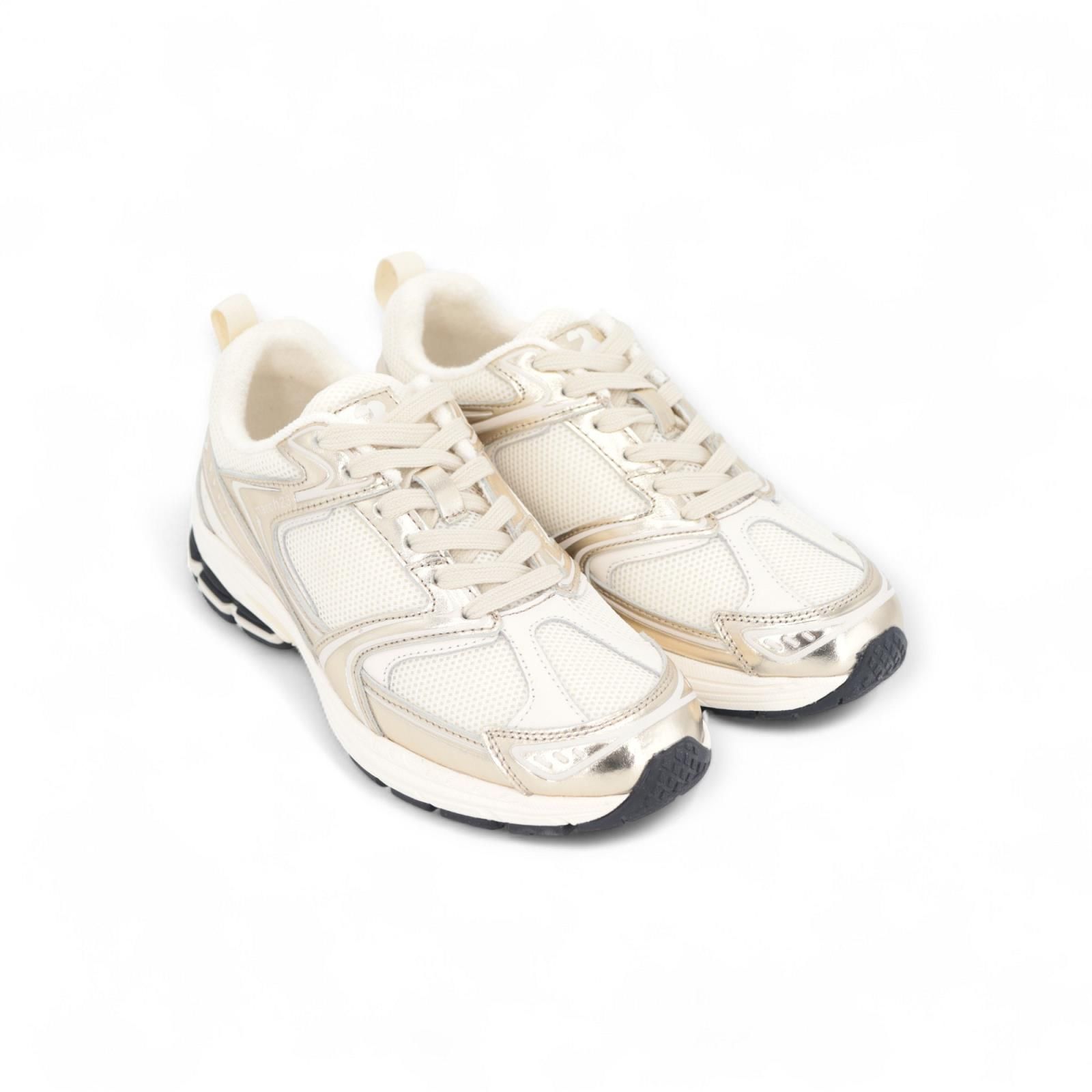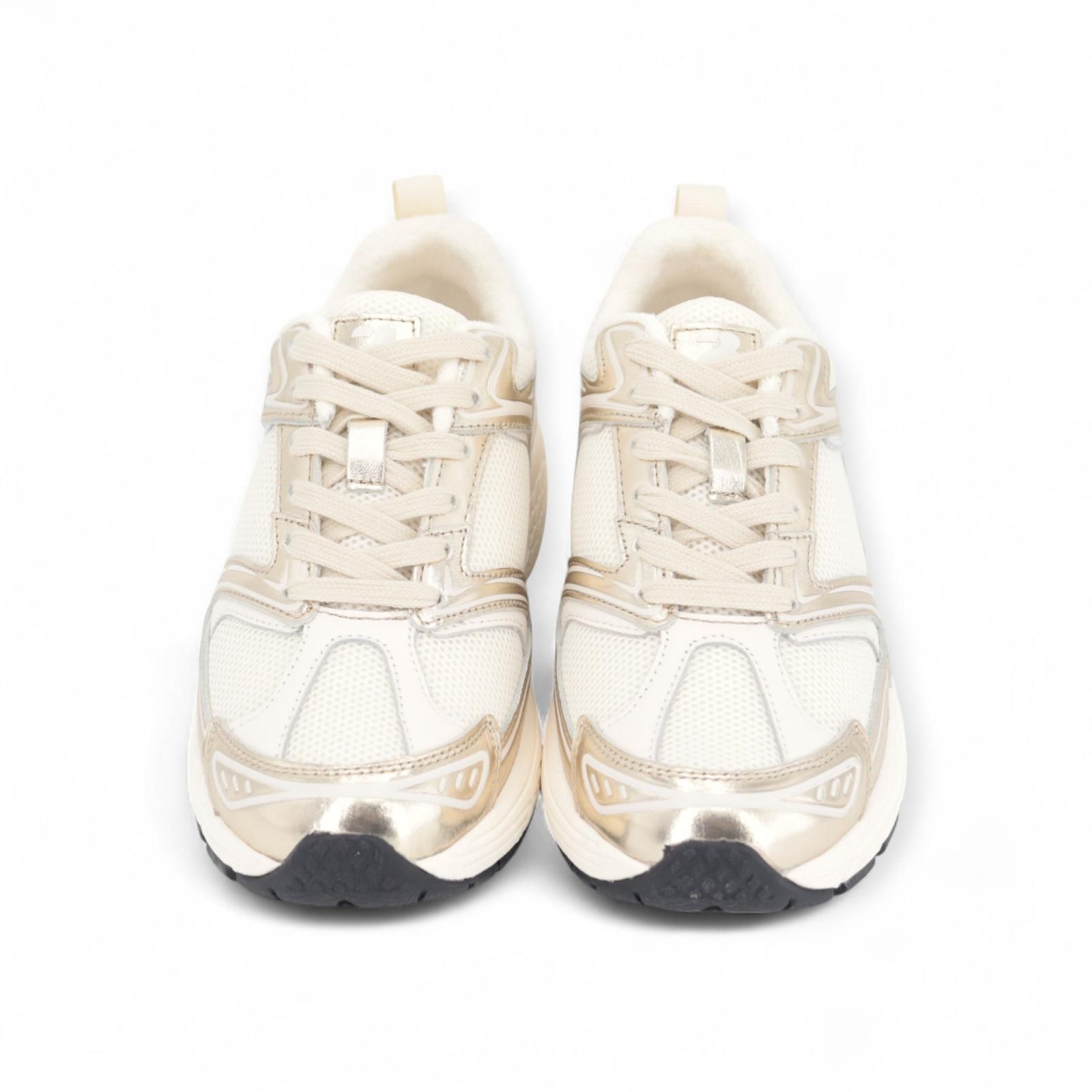 De Faye dames runners / sneakers van March 23 in off wit met gouden afwerking zijn super licht aan de voet door hun microzool en zeer comfortabel.