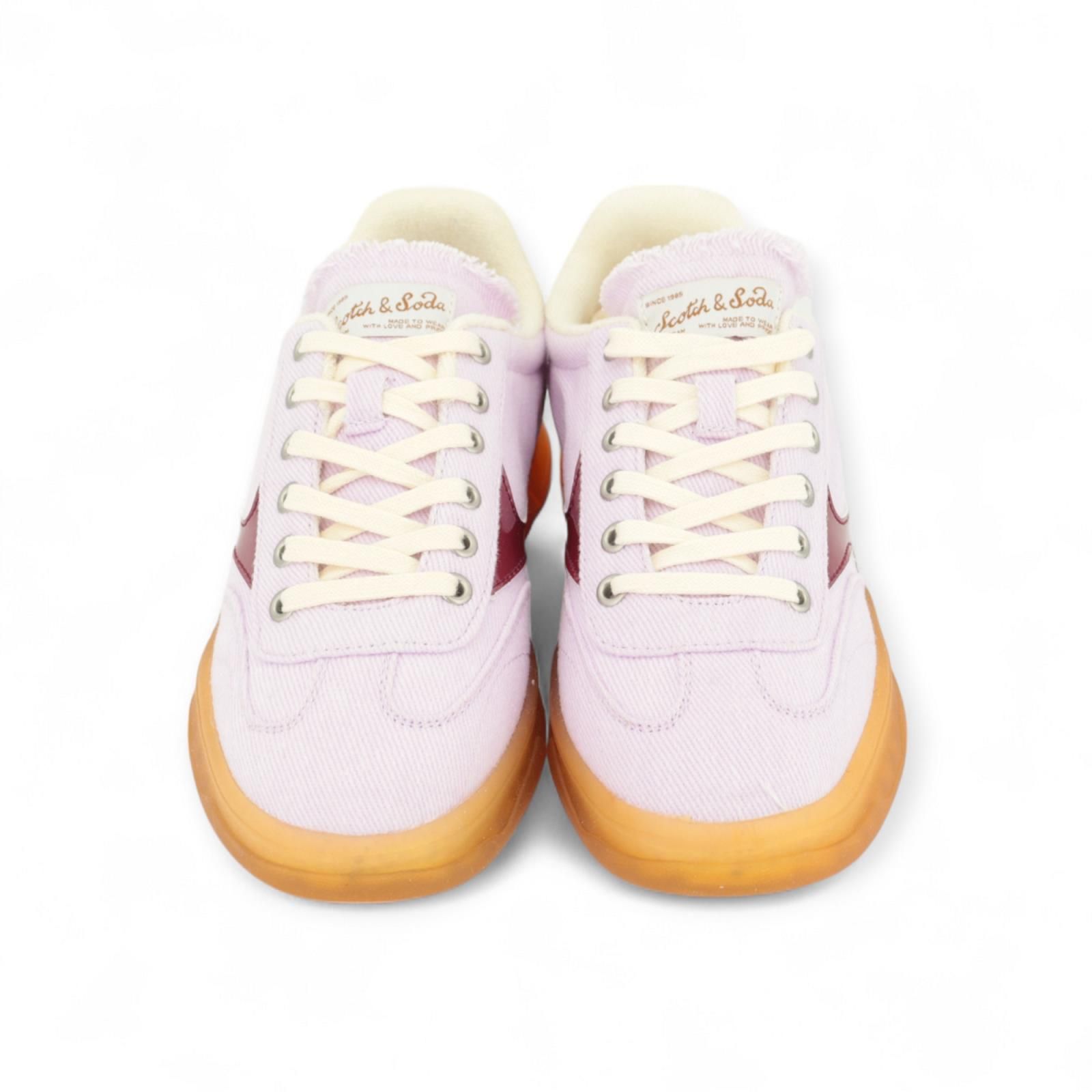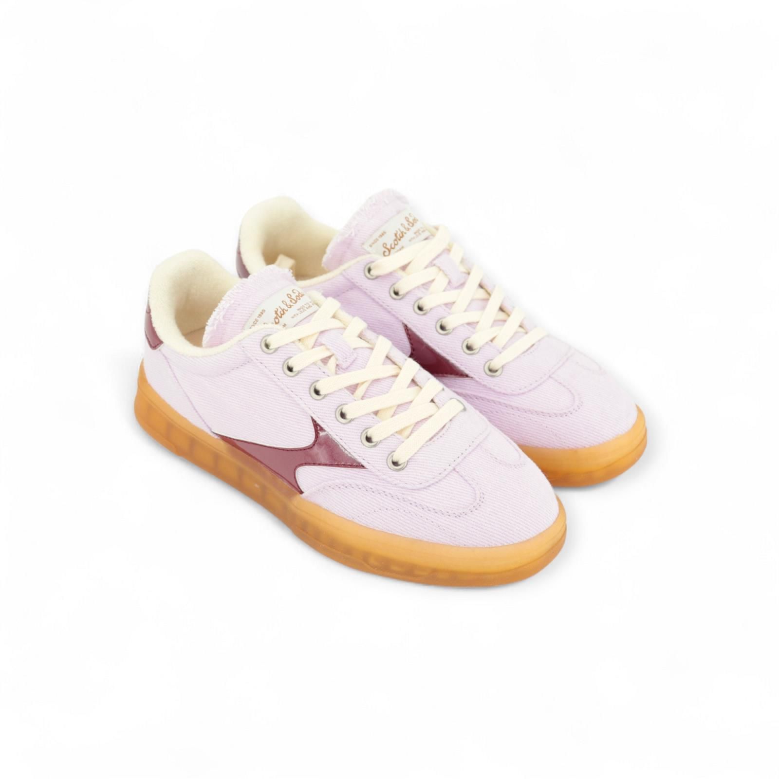 Sneaker Nixie van Scotch&Soda voor dames. Deze sneaker is in lila textiel met bordeaux lakleder. Is op een gummy bruine zool en heeft een uitneembare binnenzool.