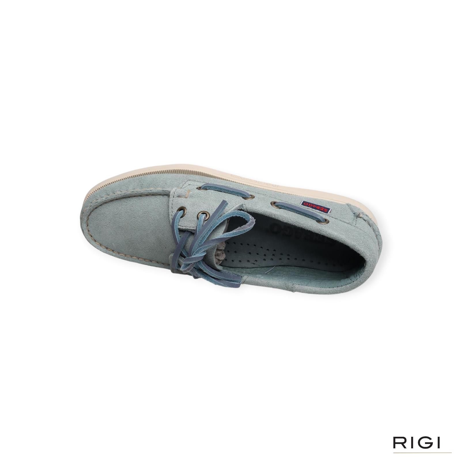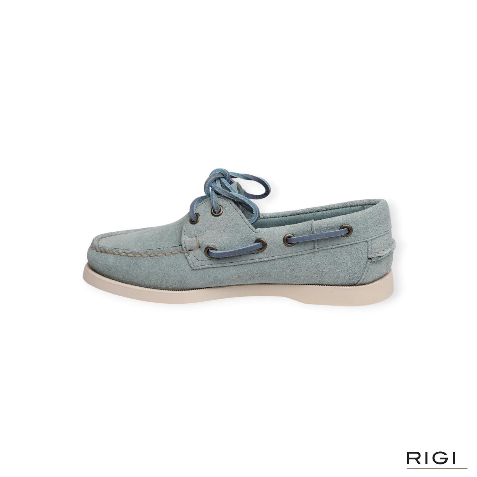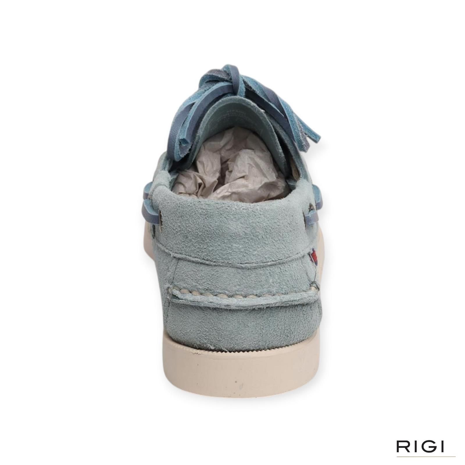 De aqua Sebago docksides Portland Flesh Out is een elegante en veelzijdige schoen. Gemaakt van 100% zacht leer voor ultiem comfort. Het ontwerp heeft een rubberen zool voor extra grip, veters en een subtiel logo. De ronde neus en het suede-effect geven de schoen een moderne uitstraling. Binnenin biedt de leren voering een comfortabele pasvorm.