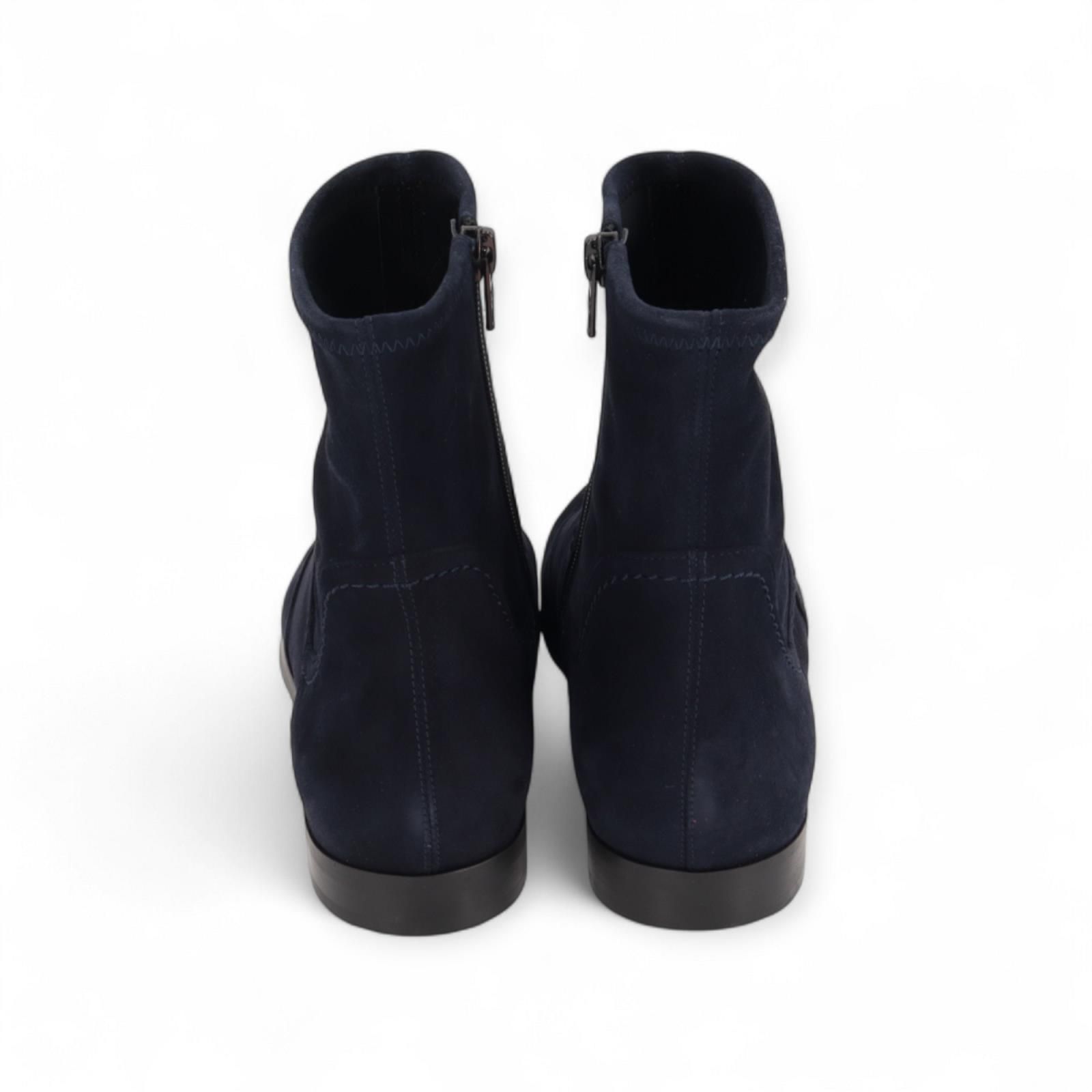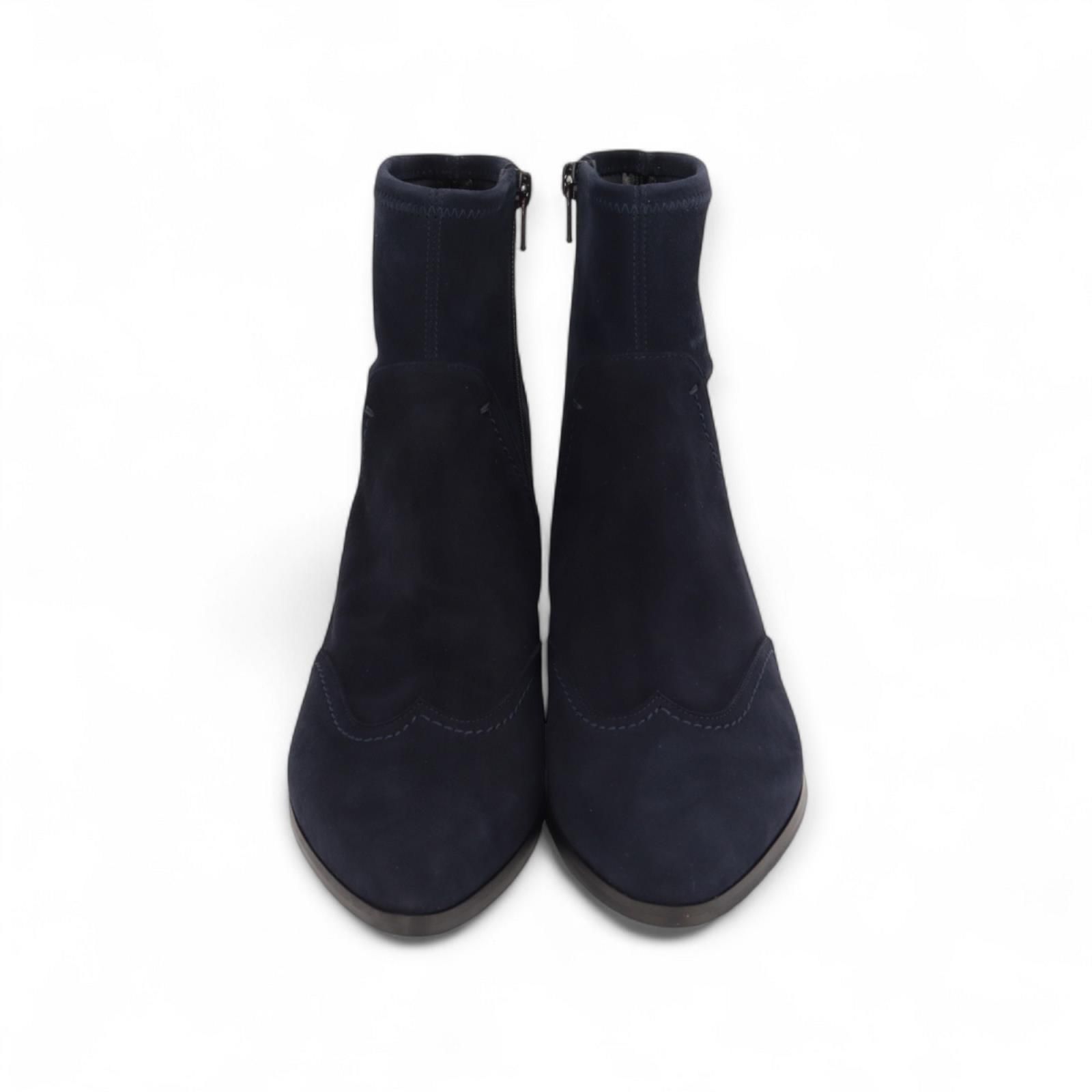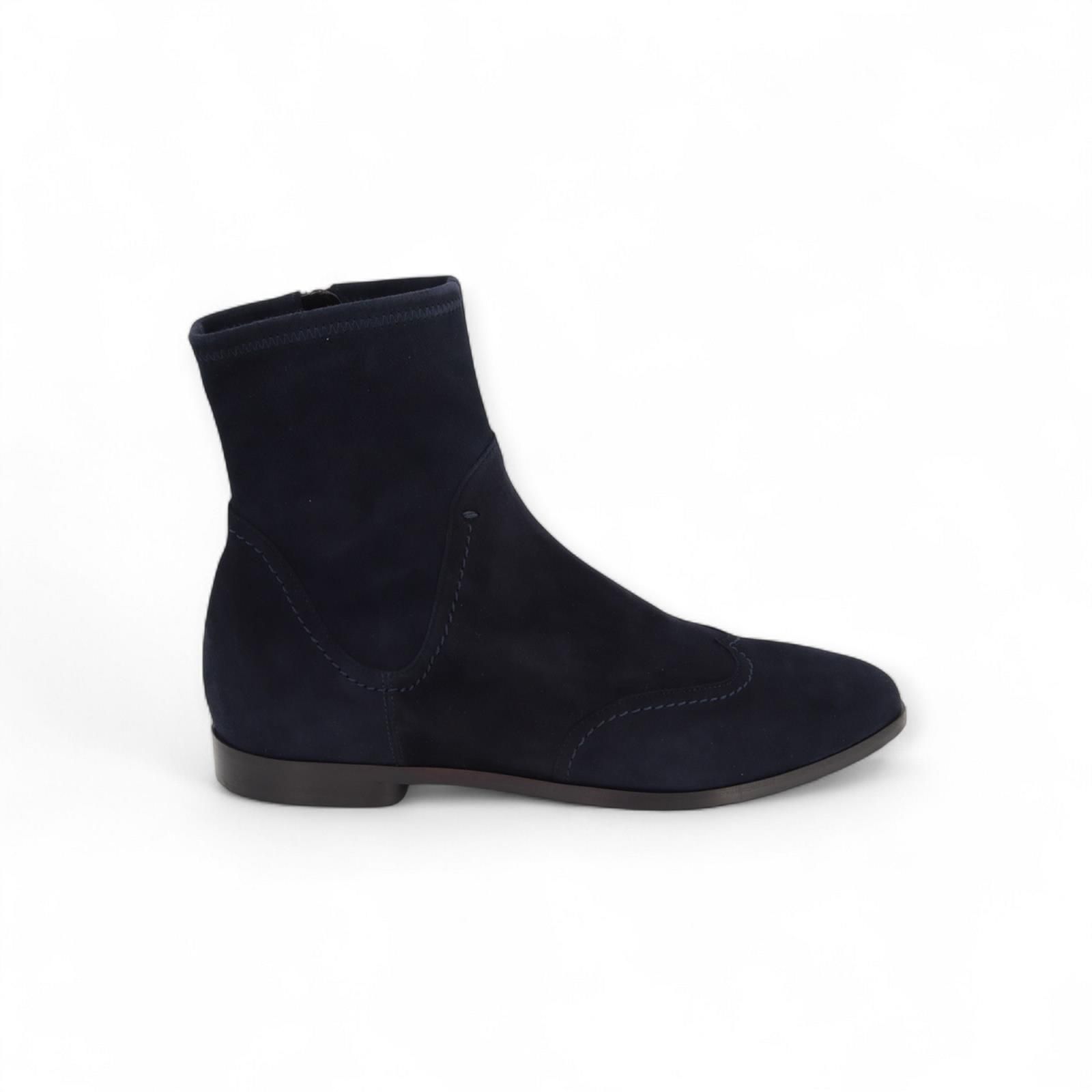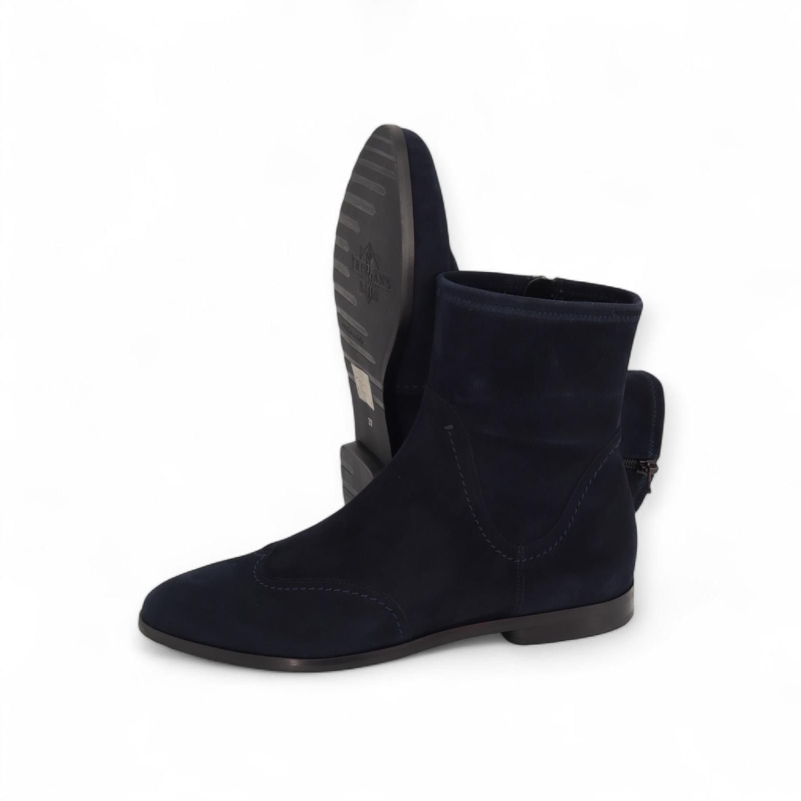 Enkellaars 4208 van Truman’s voor dames. Deze prachtig enkellaars is in blauw zacht suède met fijne stiksels als detail. Is met een licht scherpe punt en een fijn hakje voor het model nog eleganter te maken. Heeft een ritssluiting aan de zijkant en is op een antislipzool.