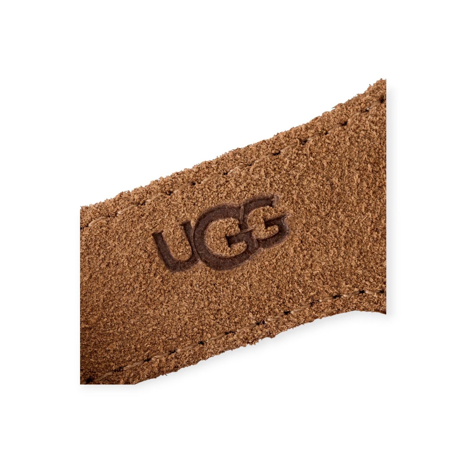 Sandaal Goldengaze Toe Post van Ugg voor dames. Deze sandaal is in cognac ‘chestnut’ suède en biedt alle comfort. Zit mooi vast aan de voet door een samenspel van bandjes met een teenstukje in zacht suède. Het verstelbare enkelbandje staat garant voor de perfecte pasvorm. Heeft een zacht voetbed met een lichtgewicht zool.