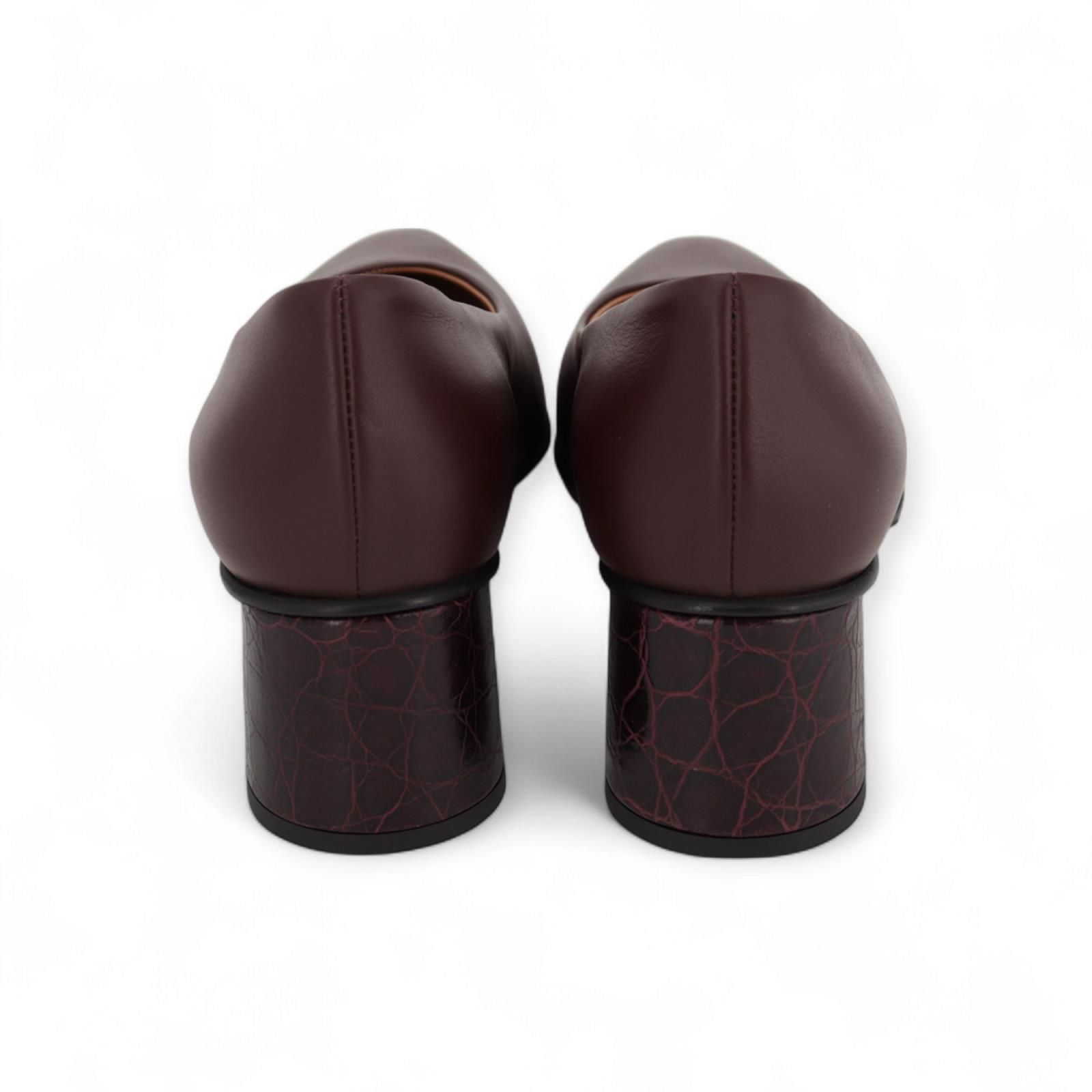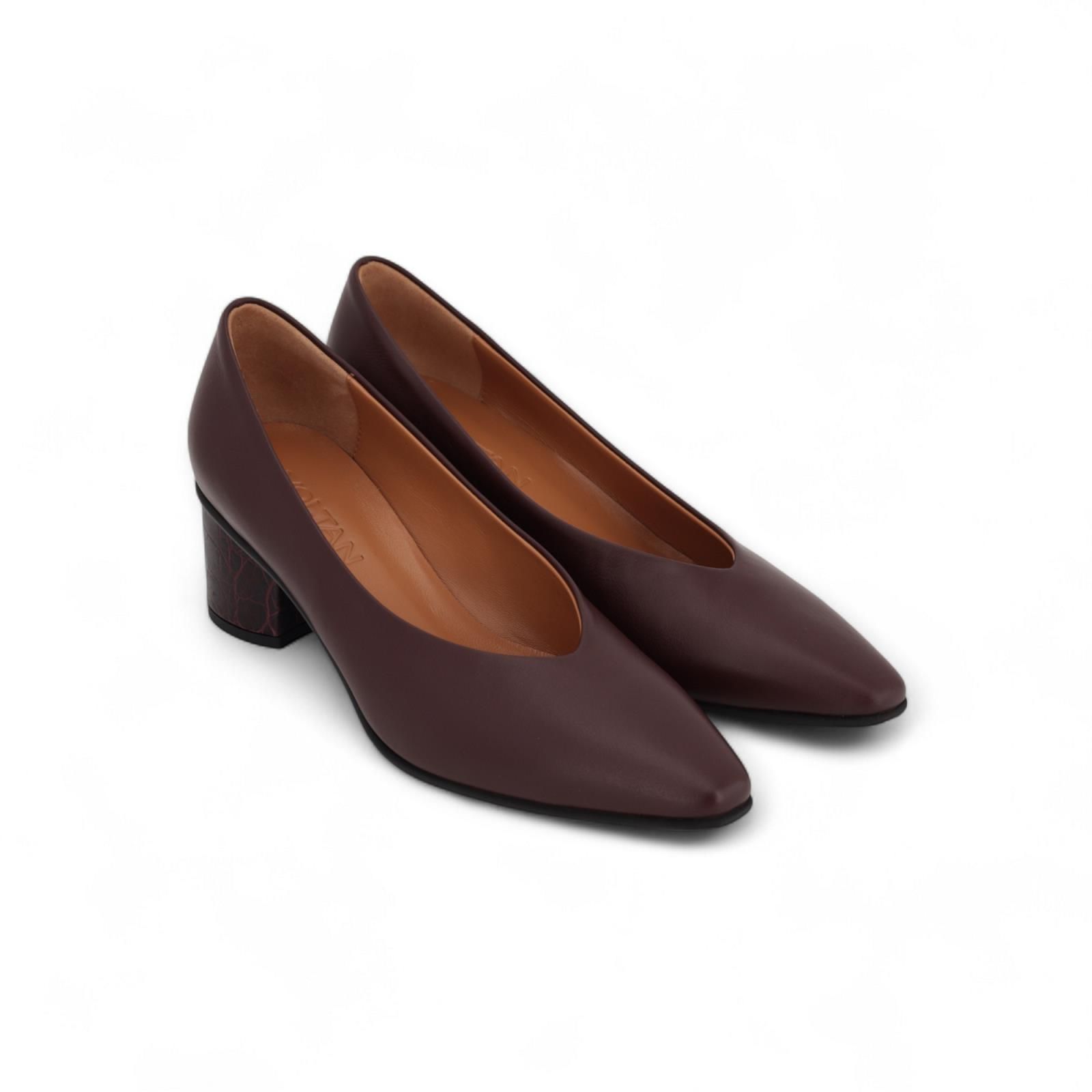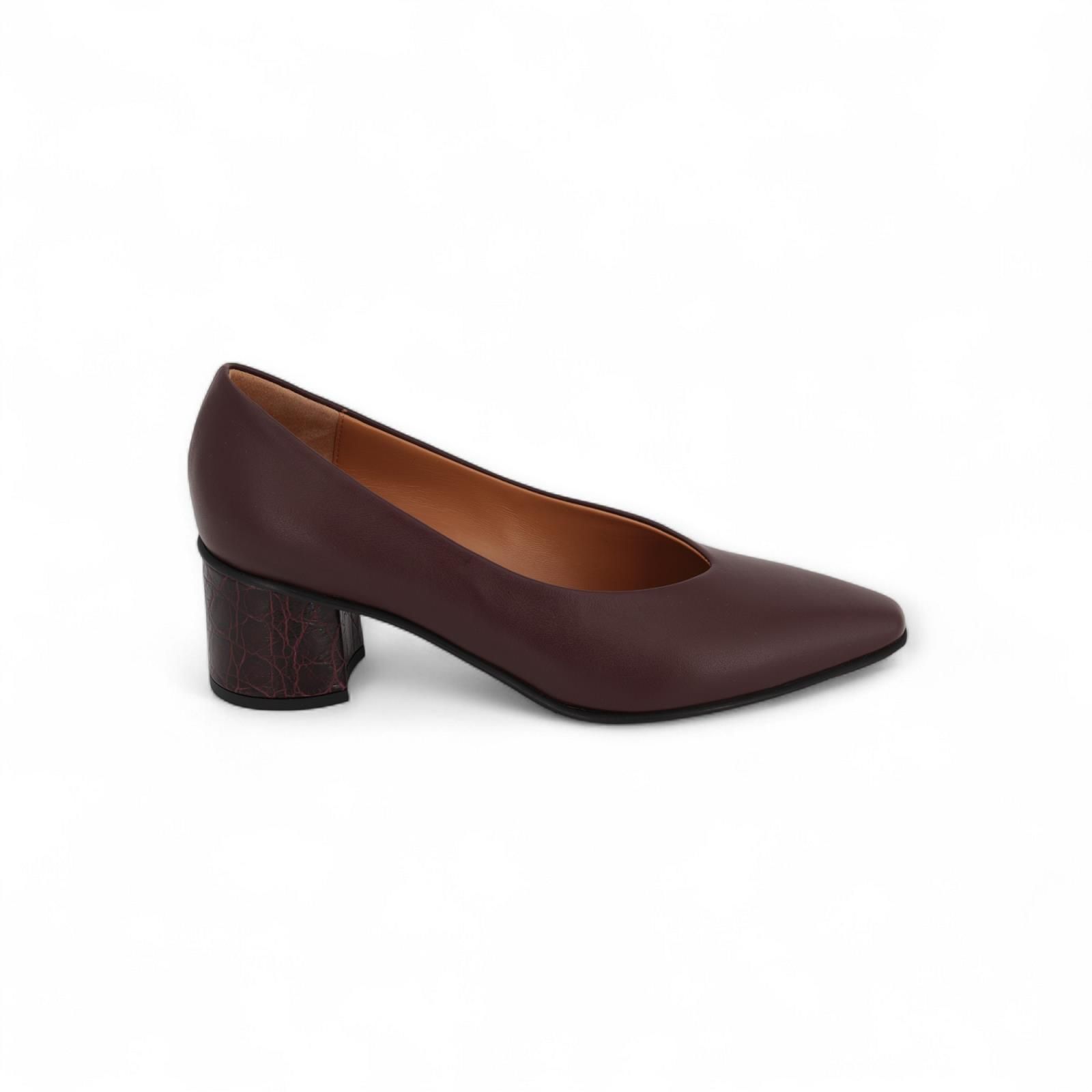 Pump 7389 van Voltan voor dames. Deze elegante pump is in bordeaux zacht leer met een licht scherpe top. Heeft een hak van 6cm hoog die mooi afgewerkt is in crocco leer. Is op een antislip buitenzool. Straal klasse uit met deze prachtige Voltan pump.