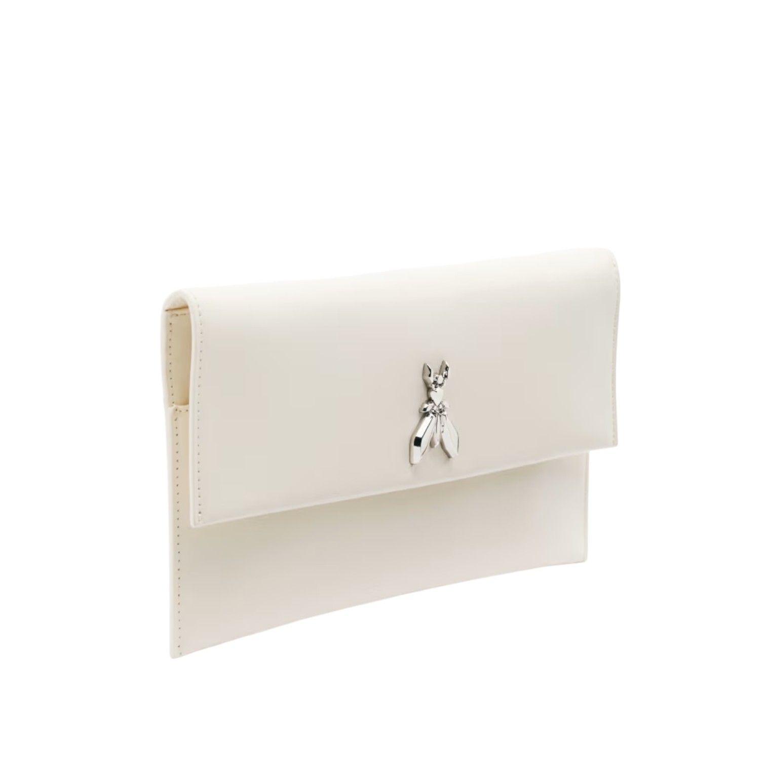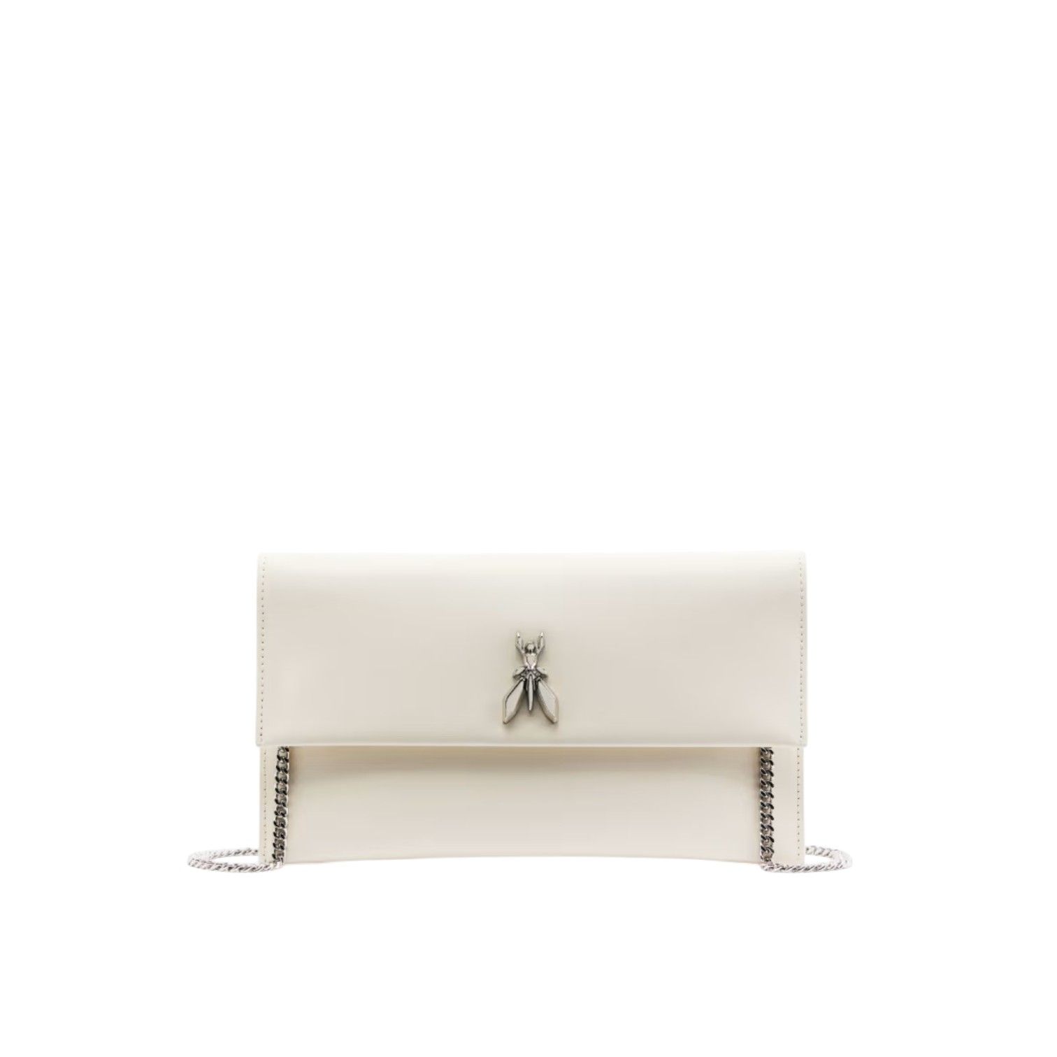Clutch Fly Pochette van Patrizia Pepe voor dames. Deze elegante clutch is in off wit glad kalfsleer. Heeft een magneetsluiting met een afneembare ketting. Is mooi afgewerkt met het iconische Fly-logo (45mm) op de klep. Heeft binnenin 1 openvak met steekvak.