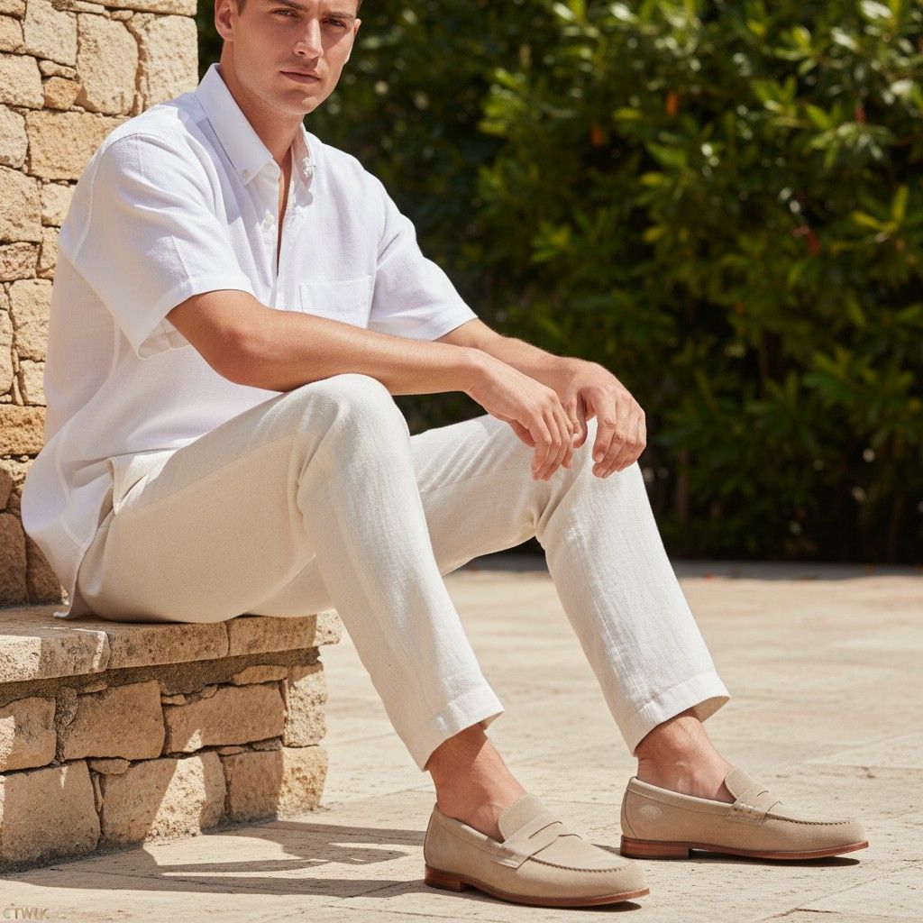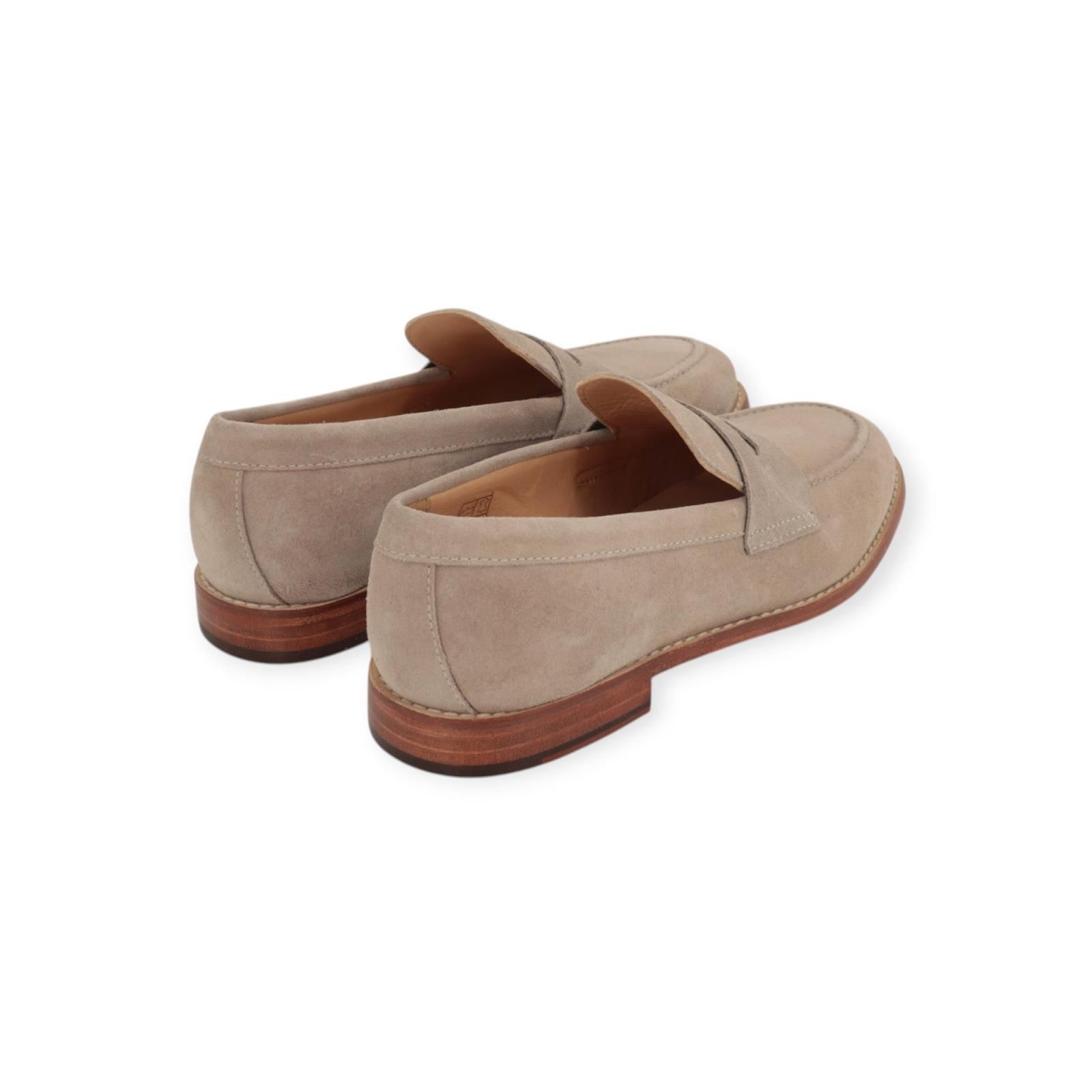 Mocassin Stephan Q5 van CTWLK – Catwalk voor heren. Deze elegante mocassin is in beige suède. Heeft een brede band over de wreef en is mooi afgewerkt met wit stiksels rond de zool. Is op een leren buitenzool. Kan je zowel elegant als casual combineren.