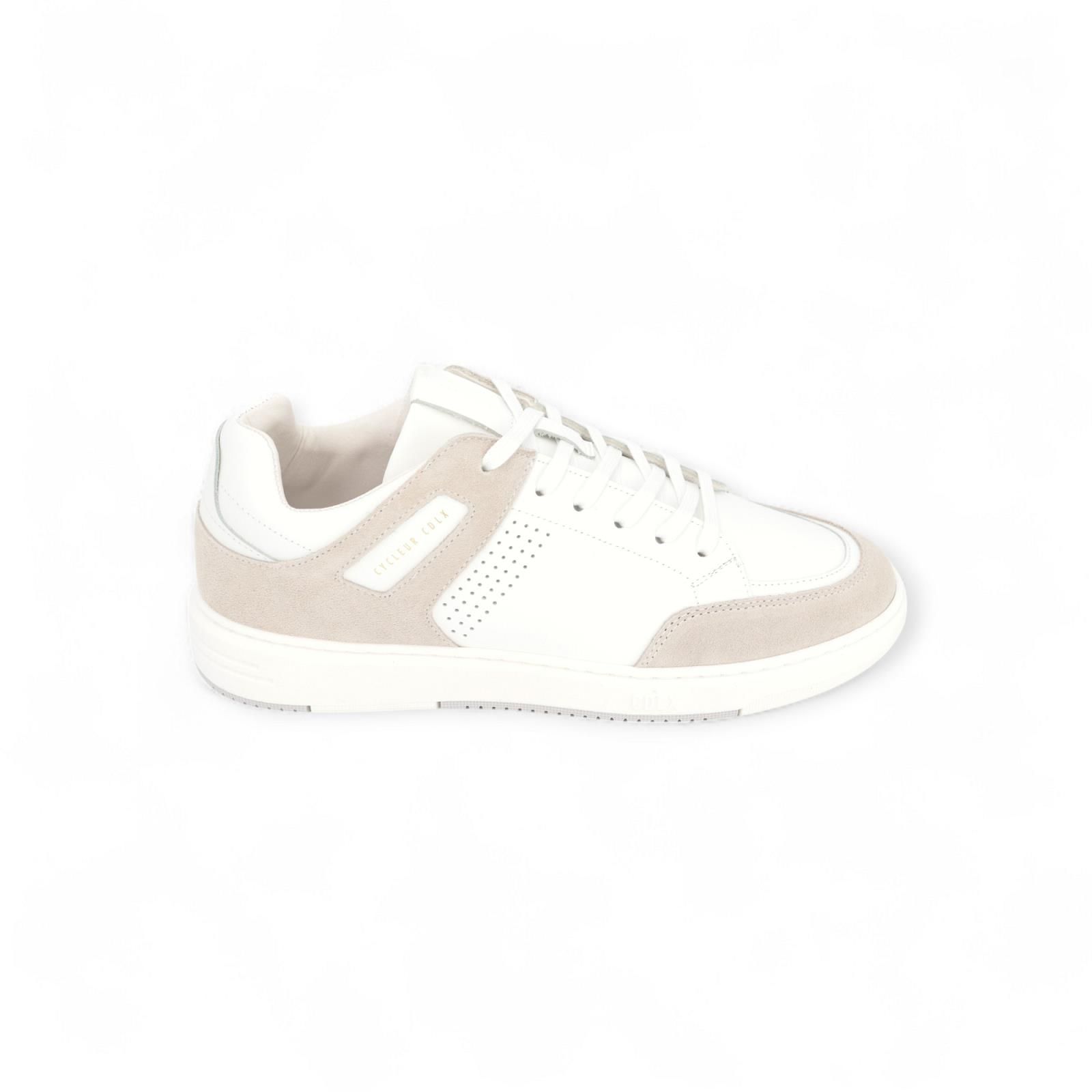 Cycleur de Luxe sneaker Lookback voor mannen. Deze witte sneaker is volledig in leder met geperforeerd leder aan de zijkanten en stiksels aan de voorkant afgewerkt met suède beige. Heeft een rubberen zool en een uitneembare binnenzool.