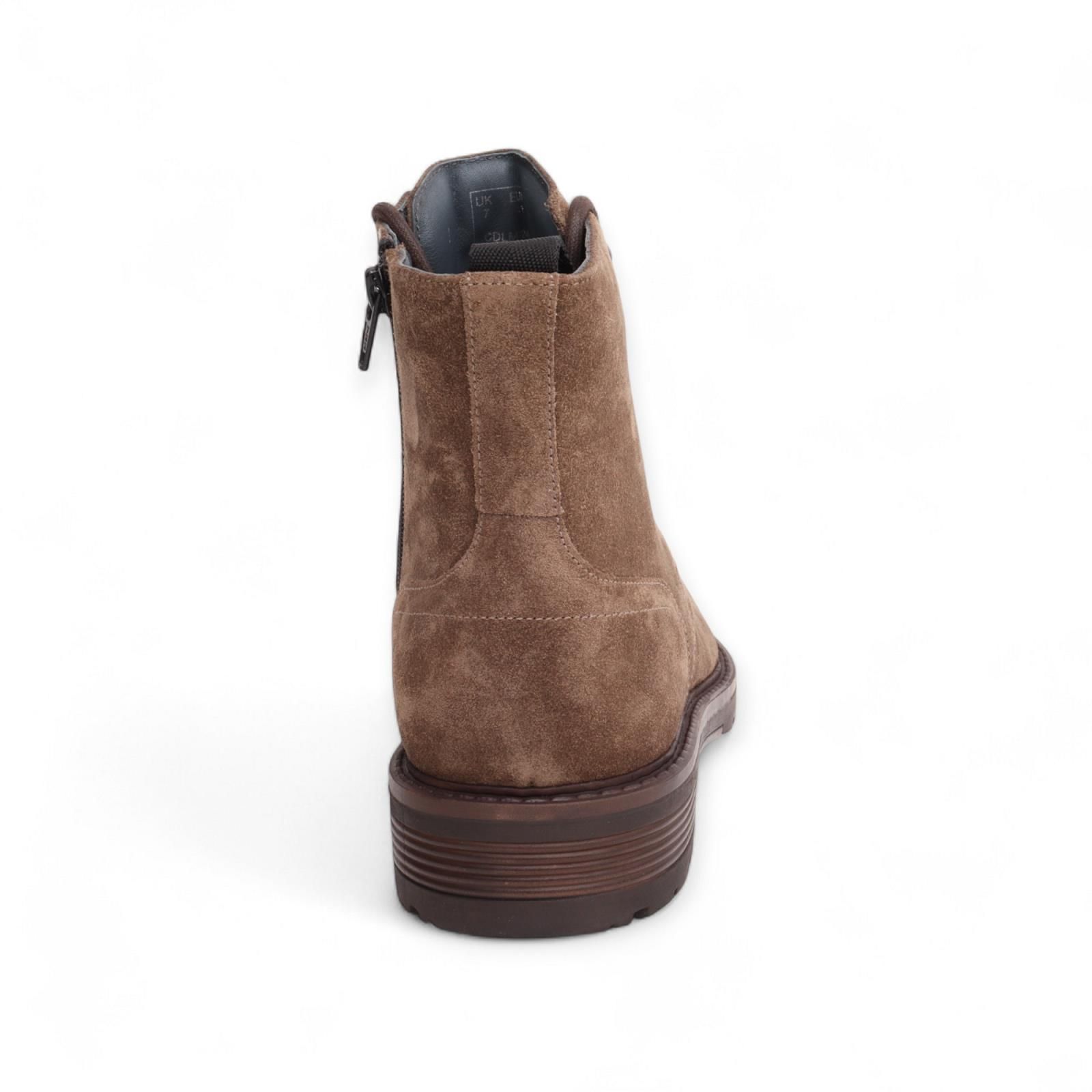Enkellaars Sprocket van Cycleur de Luxe voor heren. Deze enkellaars is in bruin suède. Afgewerkt met ritssluiting aan de zijkant en veters vooraan. Heeft een dikke antislipzool en een uitneembare binnenzool.