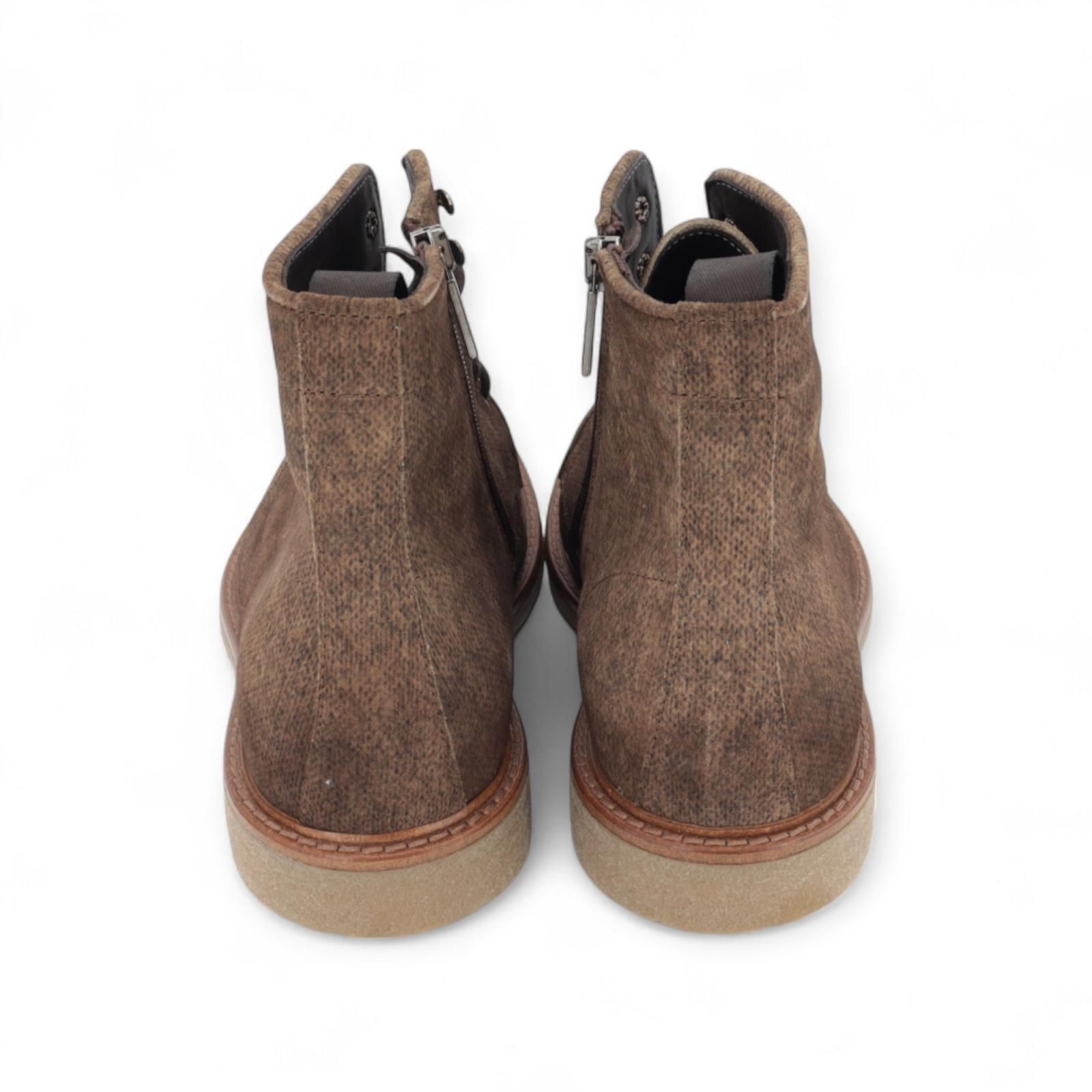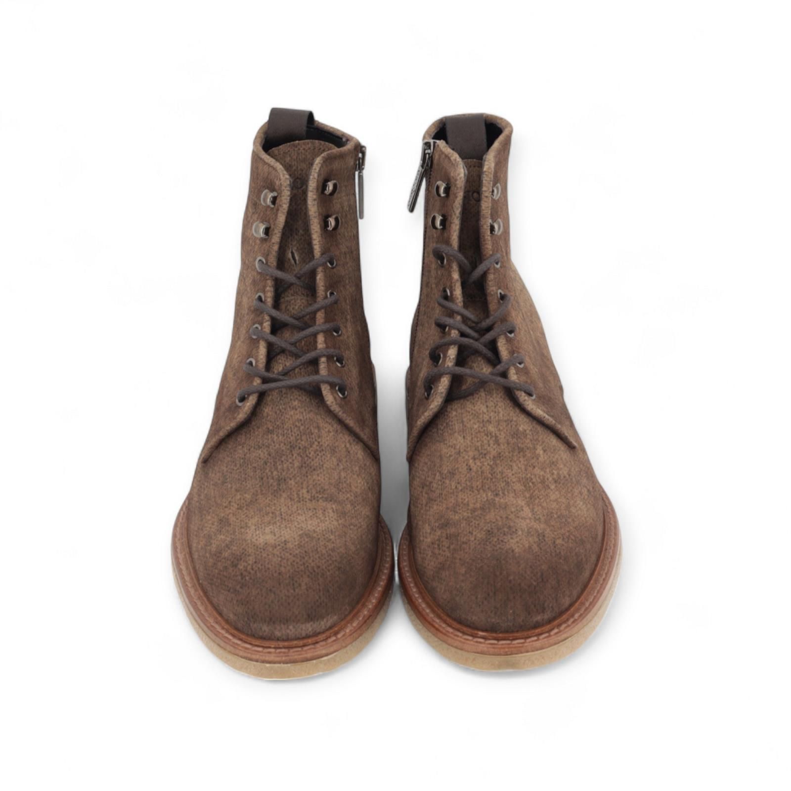 Enkellaars van Giorgio voor heren. Deze bottine is in licht bruin geprint suède. Is met een vetersluiting en rits aan de zijkant. Heeft een aangename crepe zool die voor warmte en comfort zorgt. Maak je aankoop compleet met bijpassende riem.