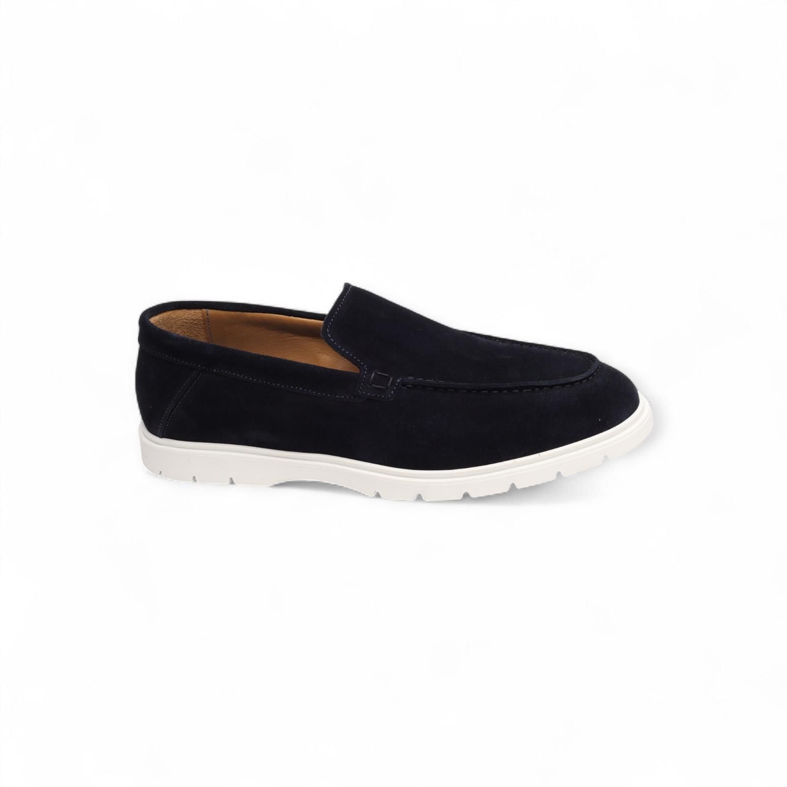 Mocassin Giorgio in blauw voor heren. Deze prachtige mocassins zijn een musthave voor in de zomer. Volledig in suède leder met een stekking aan de voorkant. Is op een lichte witte microzool.