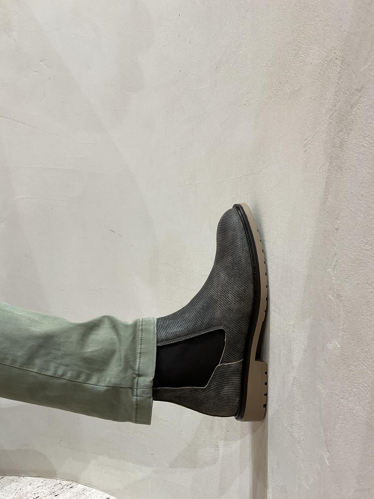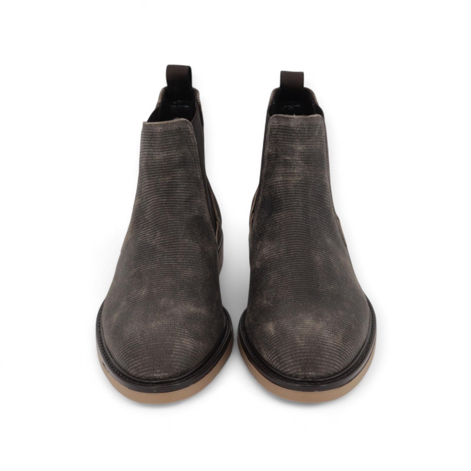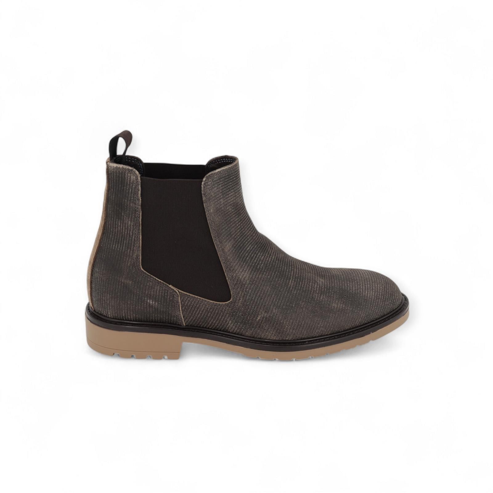 Enkellaars van Giorgio voor heren. Deze chelsea boot is in bruin/taupe geribd suède. Heeft 2 rekkers aan de zijkanten en een hiellus om het model makkelijk aan te krijgen. Is afgewerkt met een lederen rand rond de beige antislipzool. De binnenzool is uitneembaar.