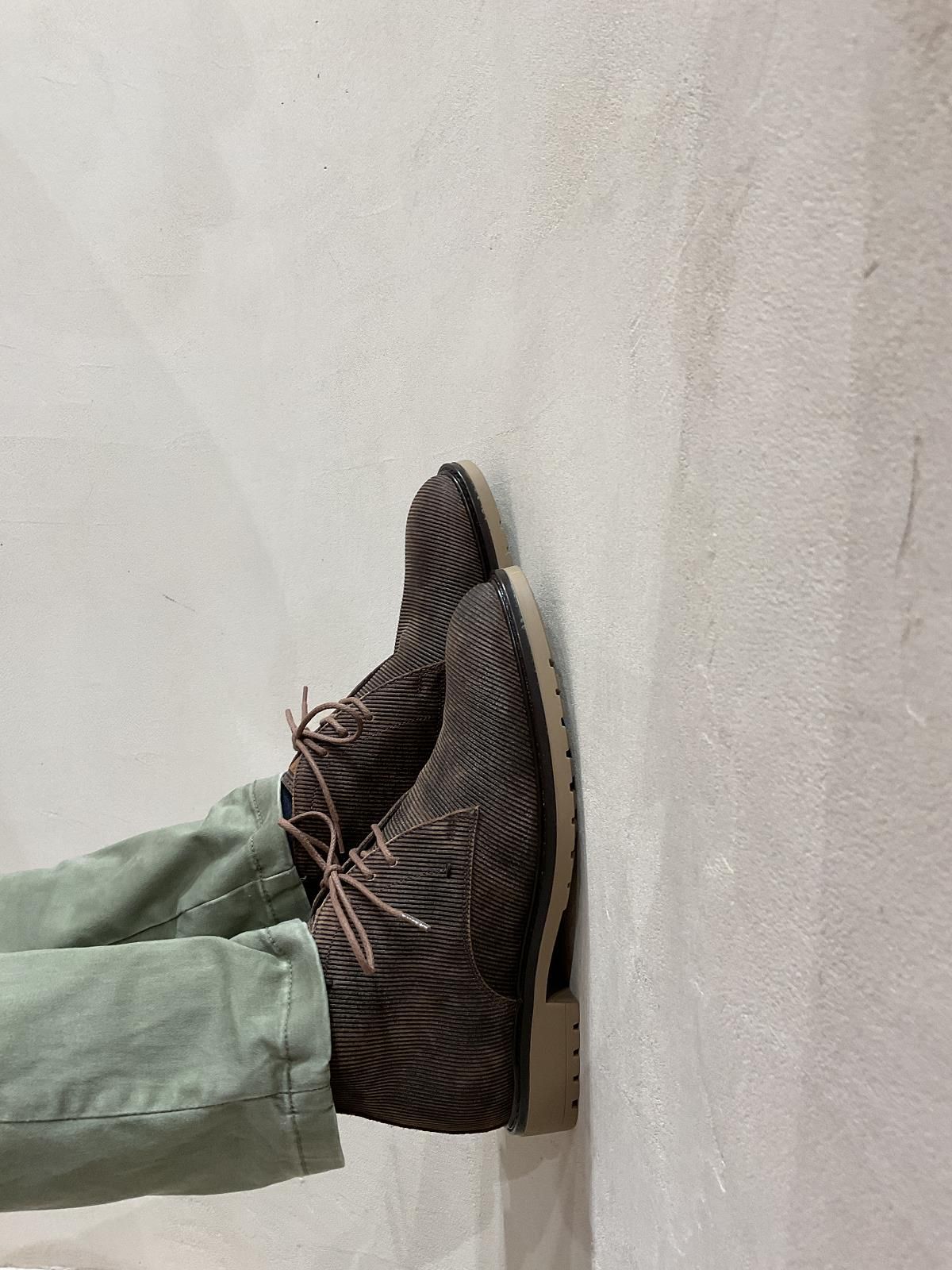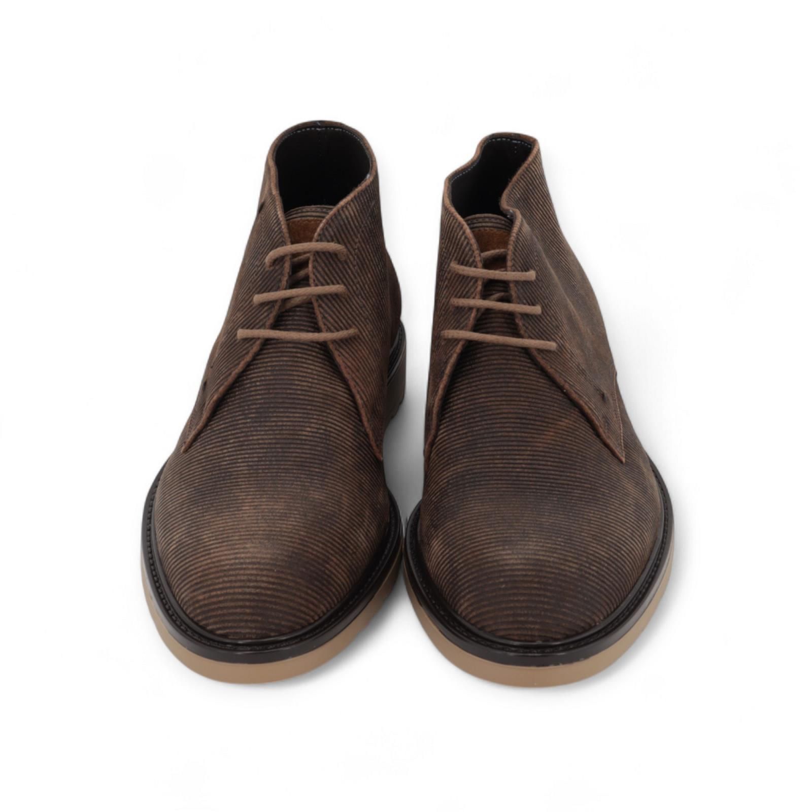 Enkellaars van Giorgio voor heren. Deze enkellaars is in bruin geribd suède. Is met een vetersluiting en afgewerkt met een lederen rand rond de beige antislipzool. De binnenzool is uitneembaar.