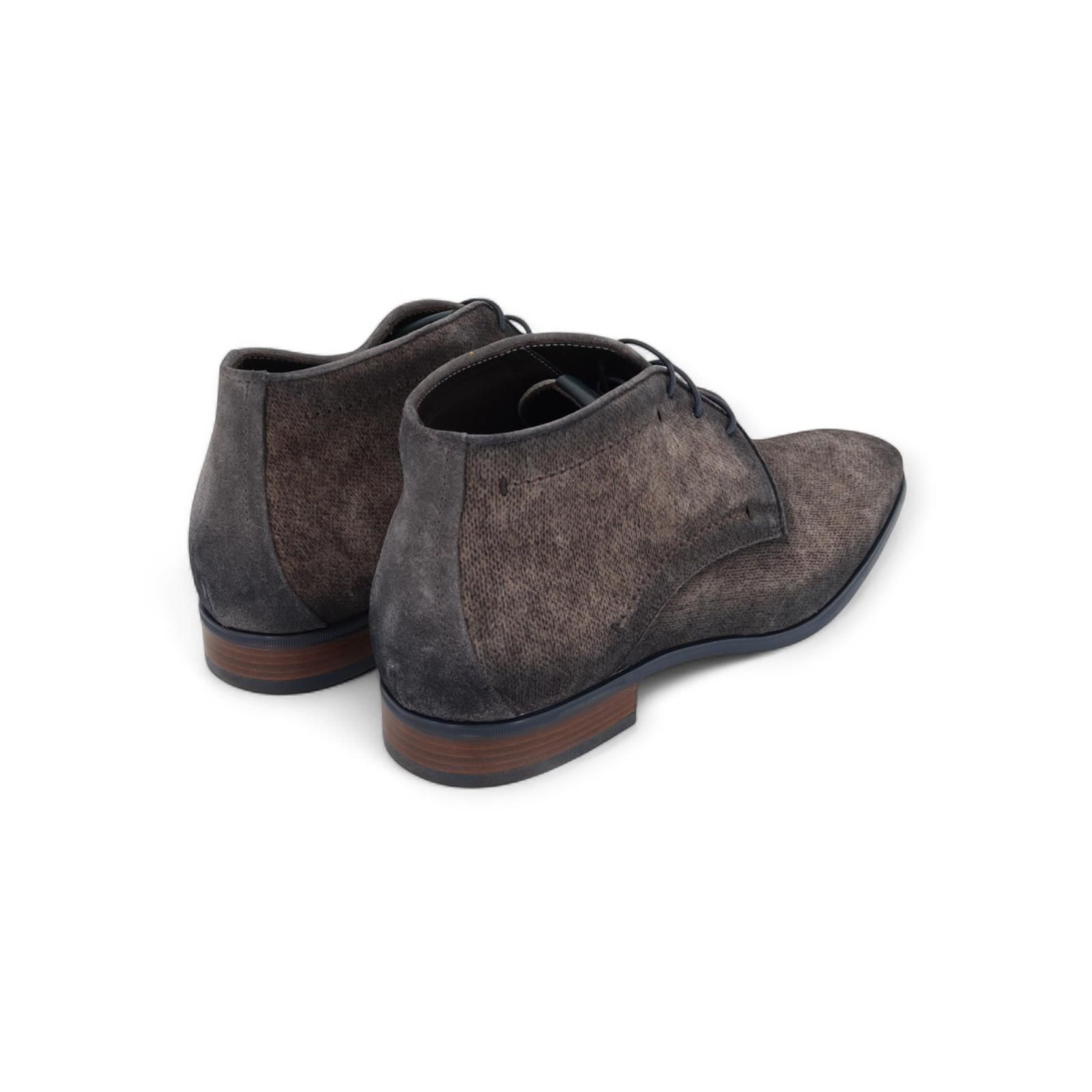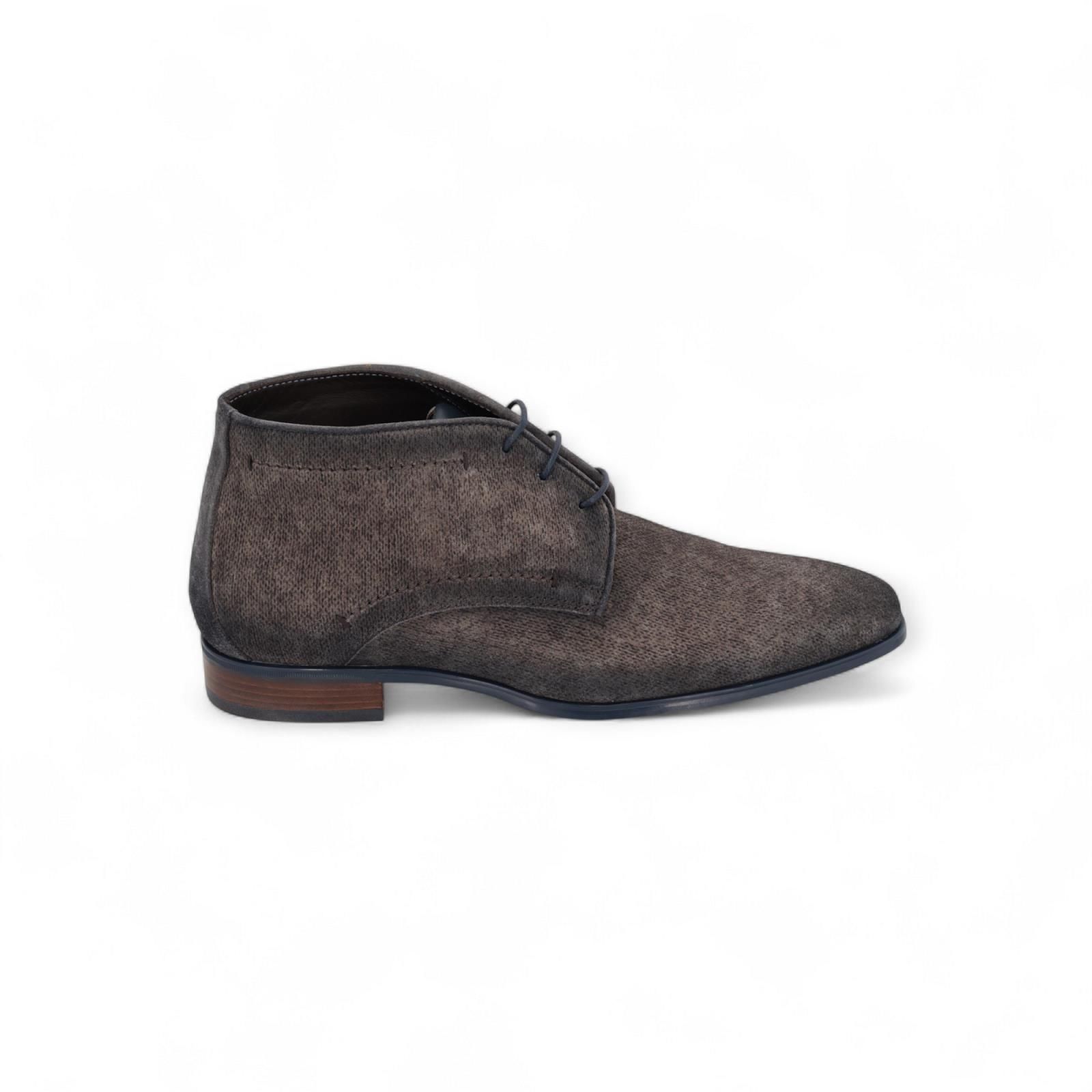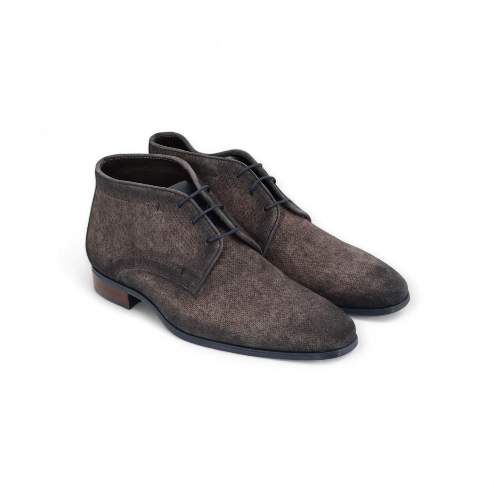 Enkellaars van Giorgio voor heren. Deze enkellaars is in taupe geprint suède. Heeft een lichte stekking aan de zijkant en is op een antislipzool. Maak je aankoop compleet met bijpassende riem.