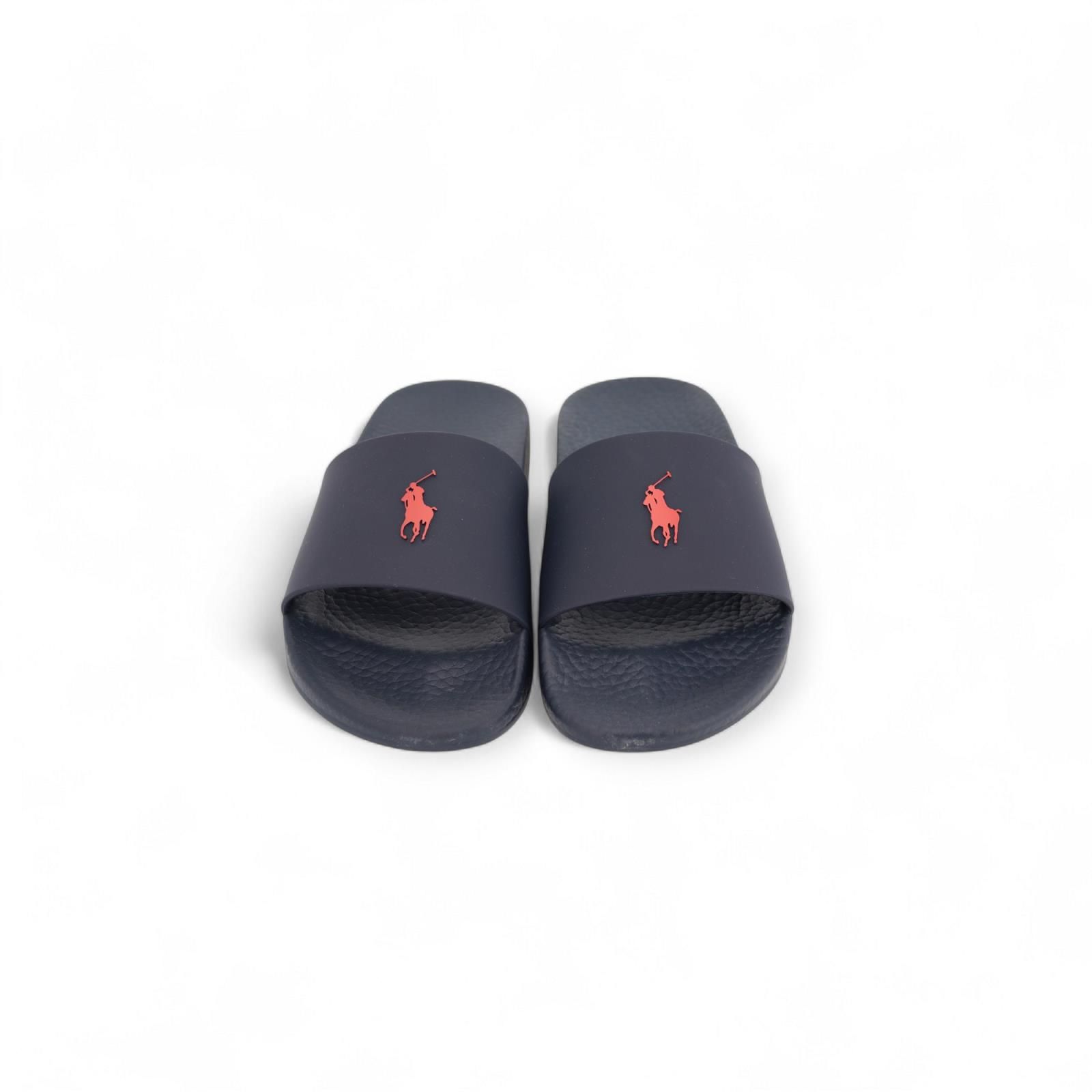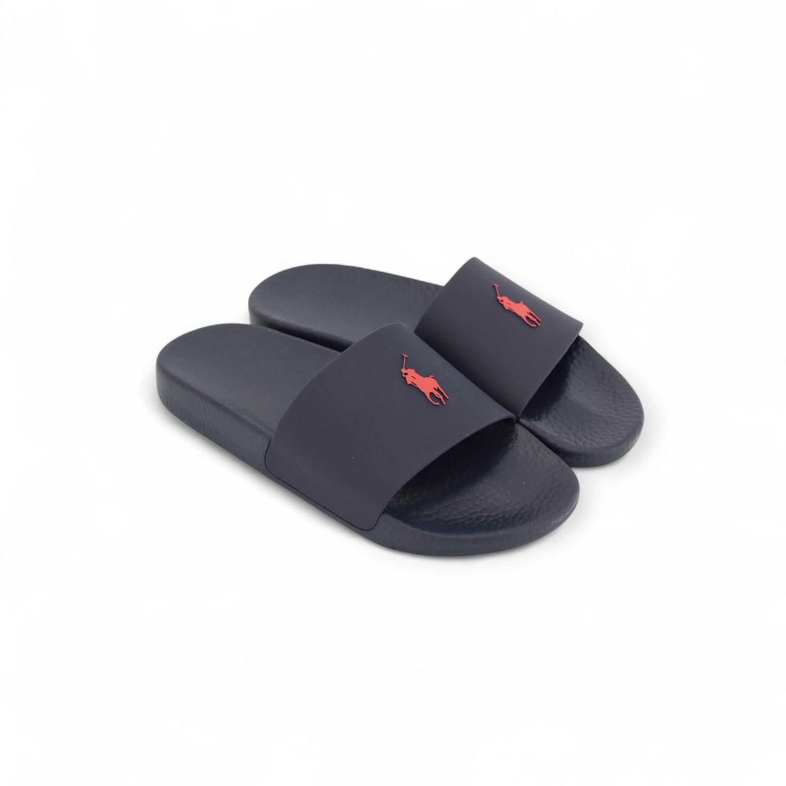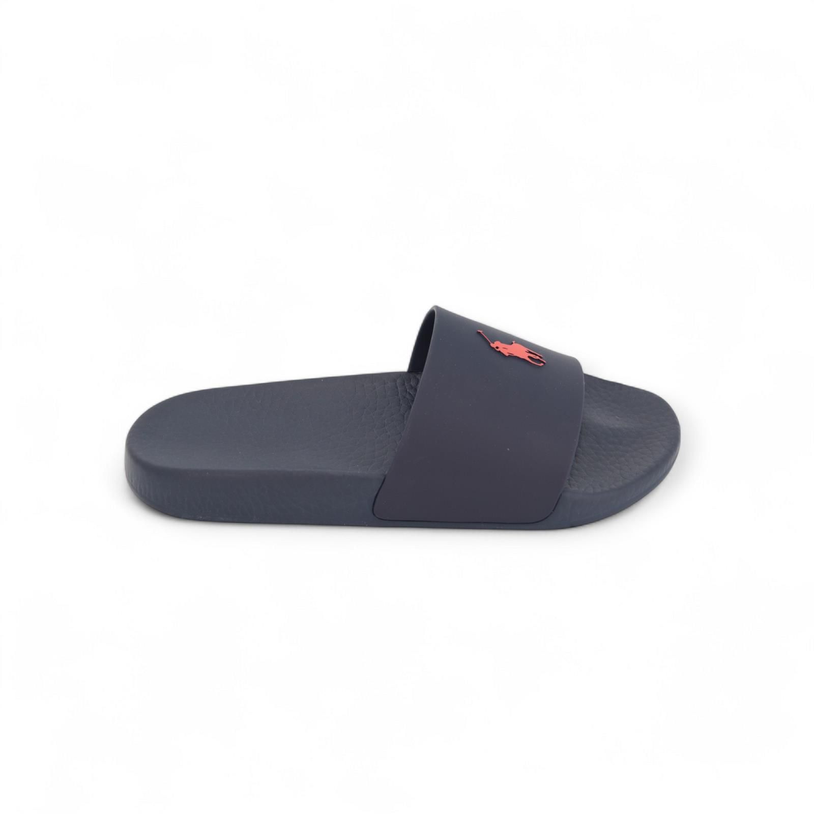 Deze blauwe zwembad slipper / slide sandals van Polo Ralph Lauren is geüpdatet met een voetbed en heeft een Polo-afwerking met de kenmerkende Pony van Ralph Lauren.