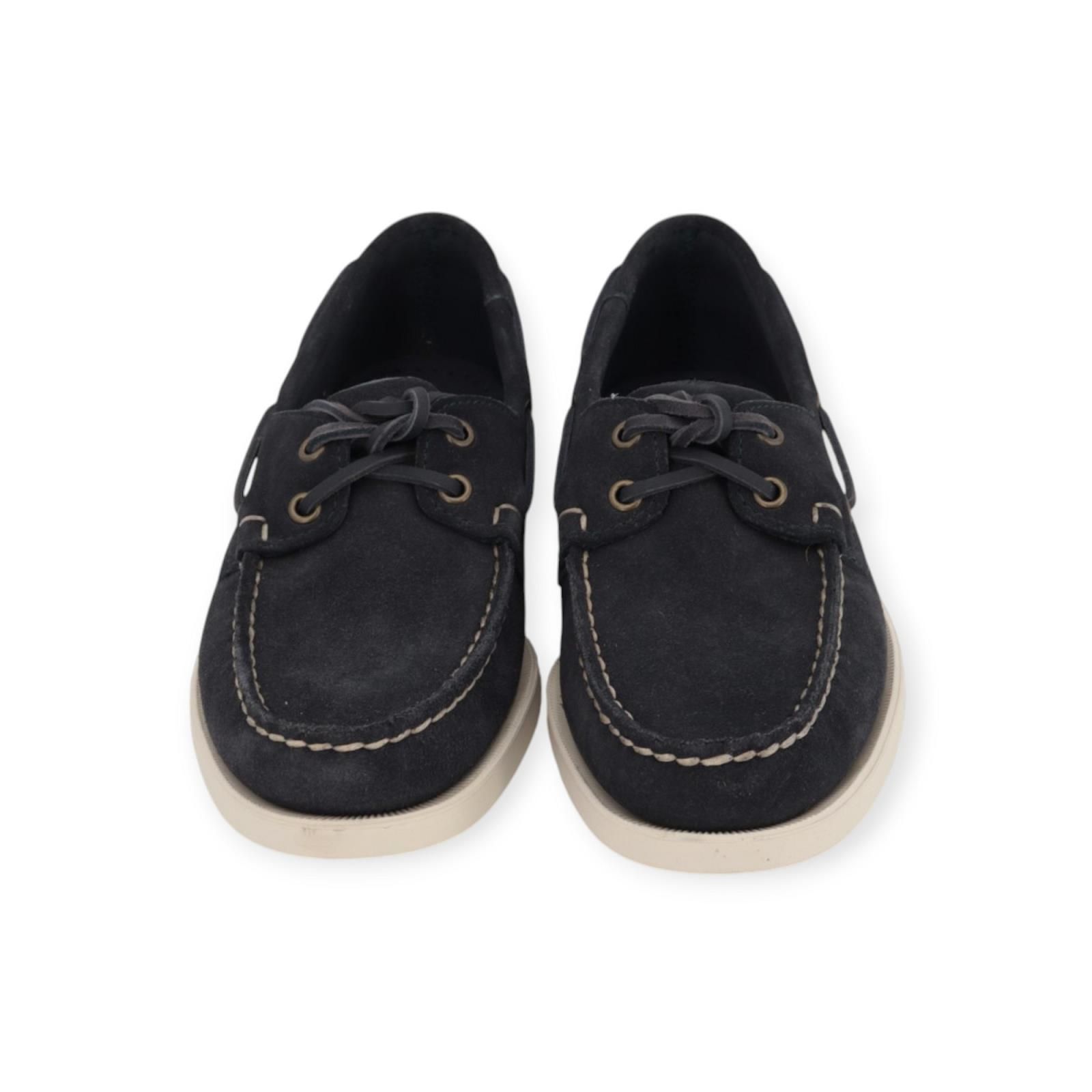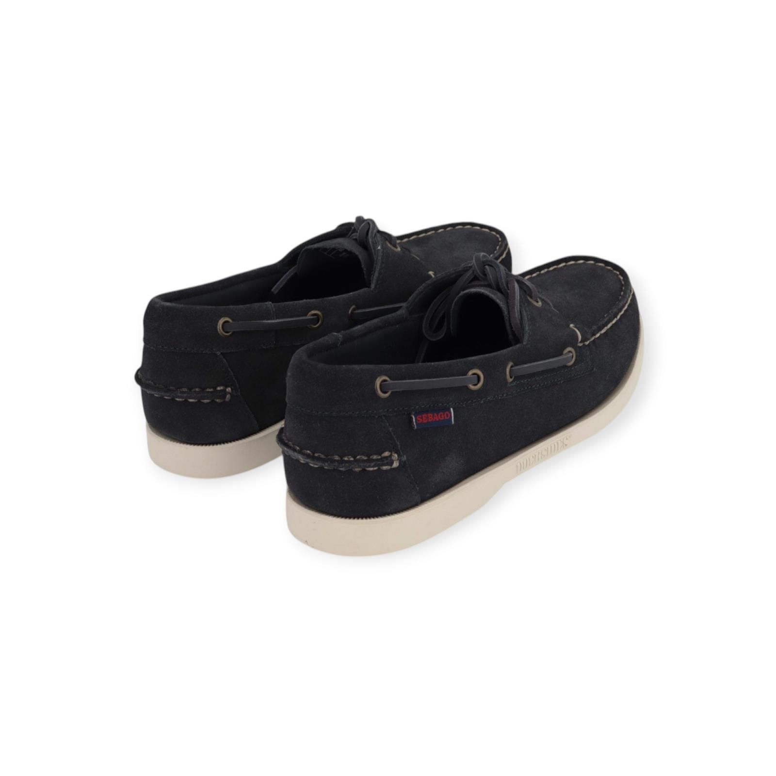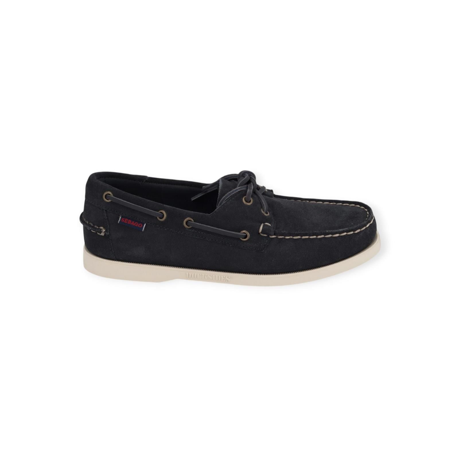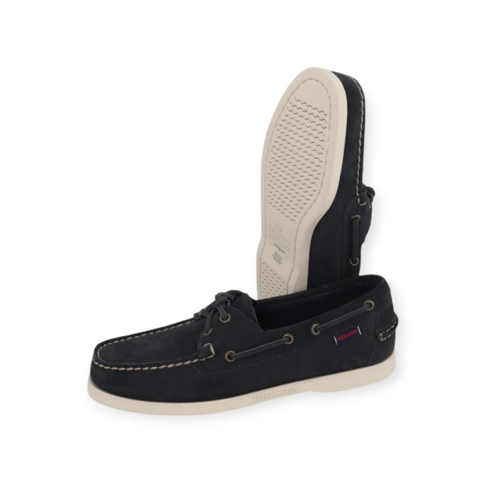 Sebago - Docksides Portland Flesh Out bootschoenen voor heren. Deze uitvoering is in 1 kleur: Blauw. De docksides modellen worden gekenmerkt door de waterafstotende constructie en de antislipzool. Afgewerkt met handgemaakte stiksels en het gestikte detail dat de hiel siert. Wij maken er voor u graag de bolletjes in de veters.