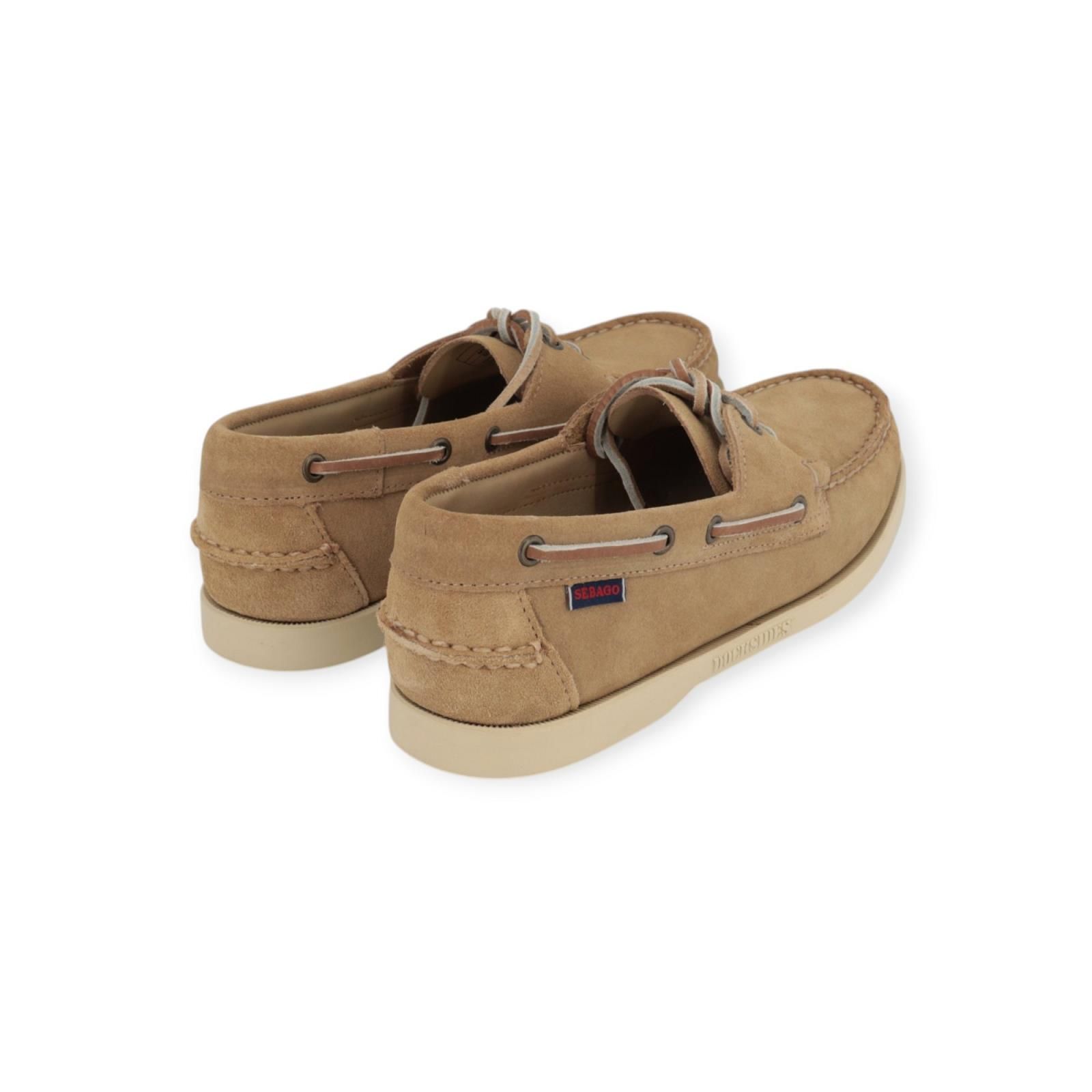 Sebago - Docksides Portland Flesh Out bootschoenen voor heren. Deze uitvoering is in 1 kleur: beige. De docksides modellen worden gekenmerkt door de waterafstotende constructie en de antislipzool. Afgewerkt met handgemaakte stiksels en het gestikte detail dat de hiel siert. Wij maken er voor u graag de bolletjes in de veters.