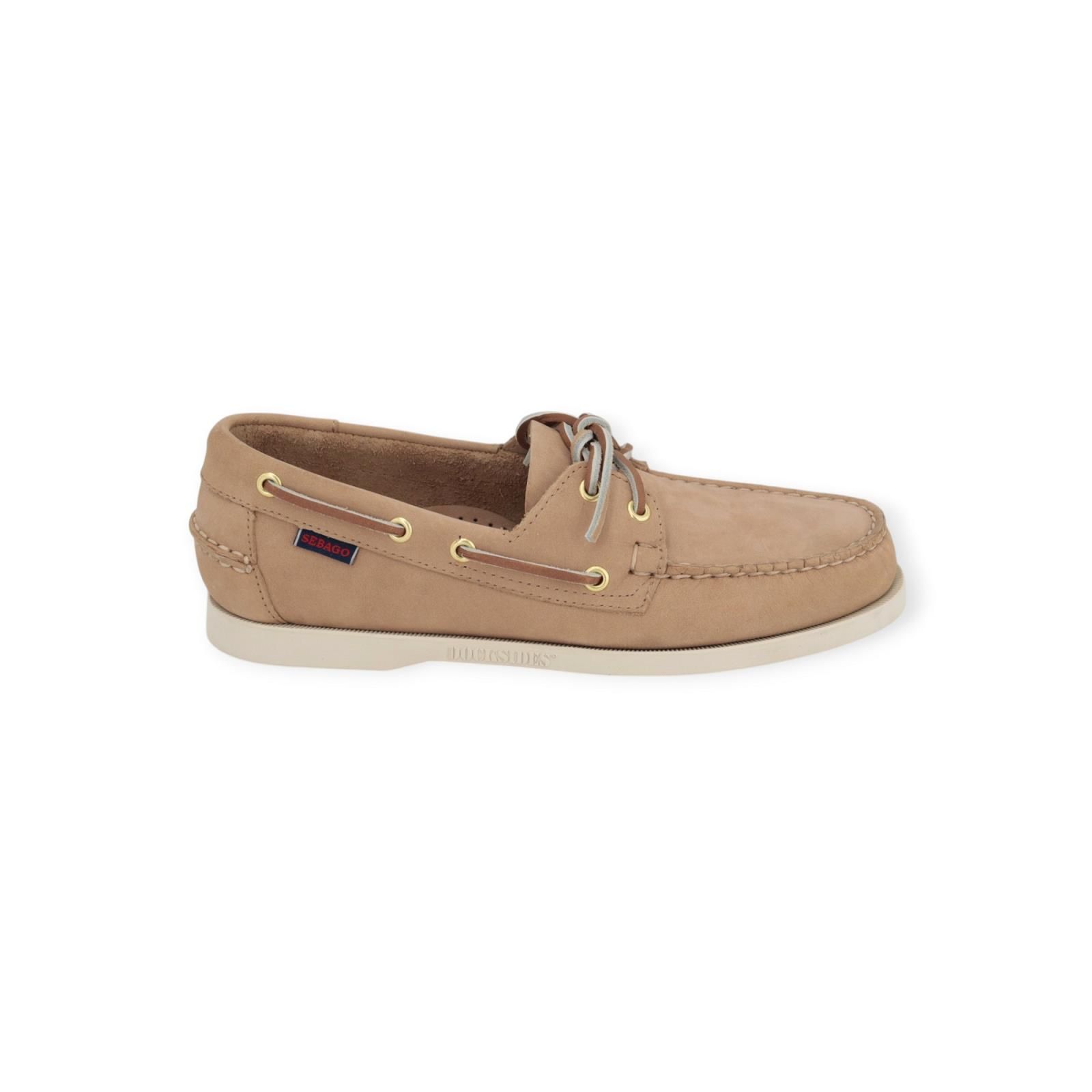 Sebago - Docksides Portland Nubuck bootschoenen voor heren. Deze uitvoering is in 1 kleur: beige. De docksides modellen worden gekenmerkt door de waterafstotende constructie en de antislipzool. Afgewerkt met handgemaakte stiksels en het gestikte detail dat de hiel siert. Wij maken er voor u graag de bolletjes in de veters.