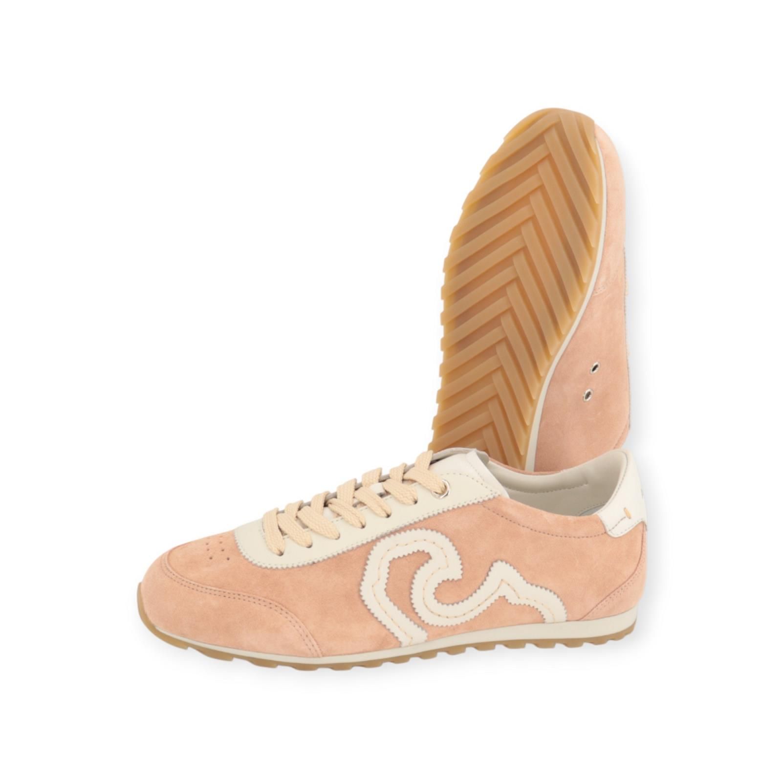 Acanto Court sneaker in offwit leer met roze suède voor dames.