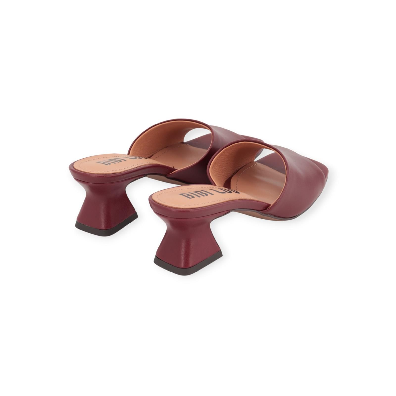 Slipper Zia van Bibi Lou voor dames. Dit elegant muiltje is in bordeaux leer. Heeft 1 brede band over de wreef met een carré neus. Heeft een geometrisch blokhakje van 5cm hoog. Is op een leren buitenzool met antislip zool.