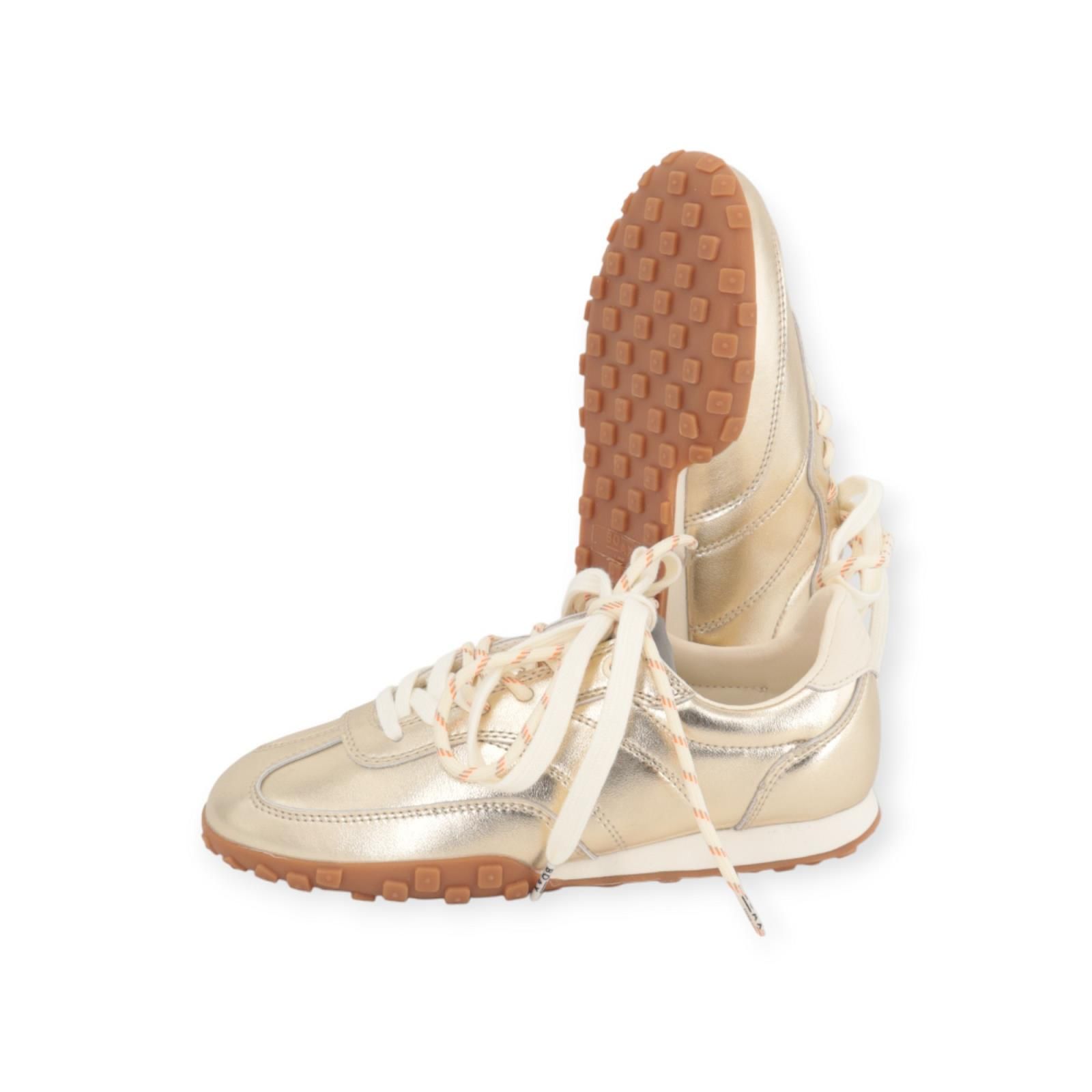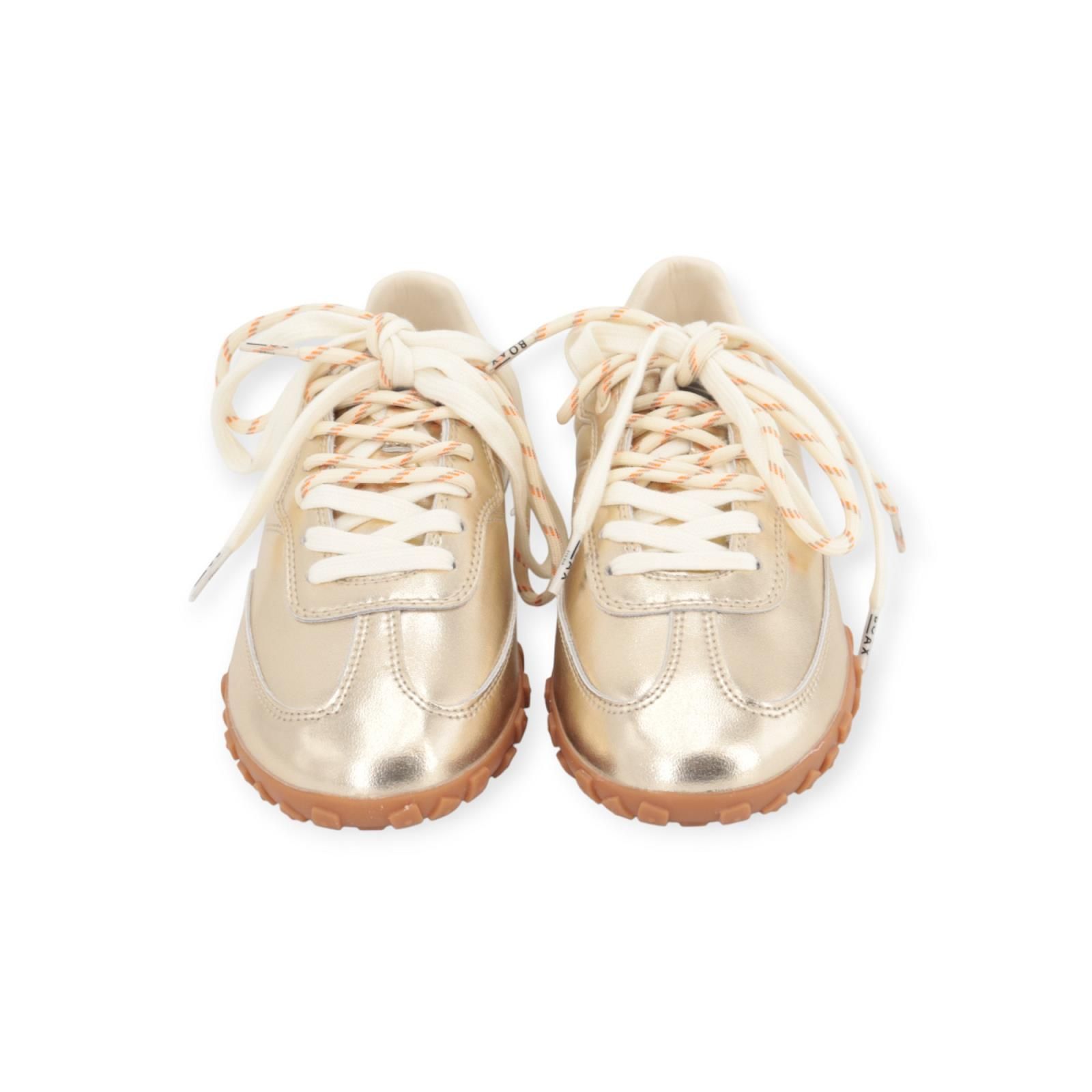 Sneaker Strike van Boax voor dames. Deze toffe sneaker is in goud shining leer. Heeft een bruine gummyzool die zeer licht aan de voet voelt. De binnenzool is uitneembaar.
