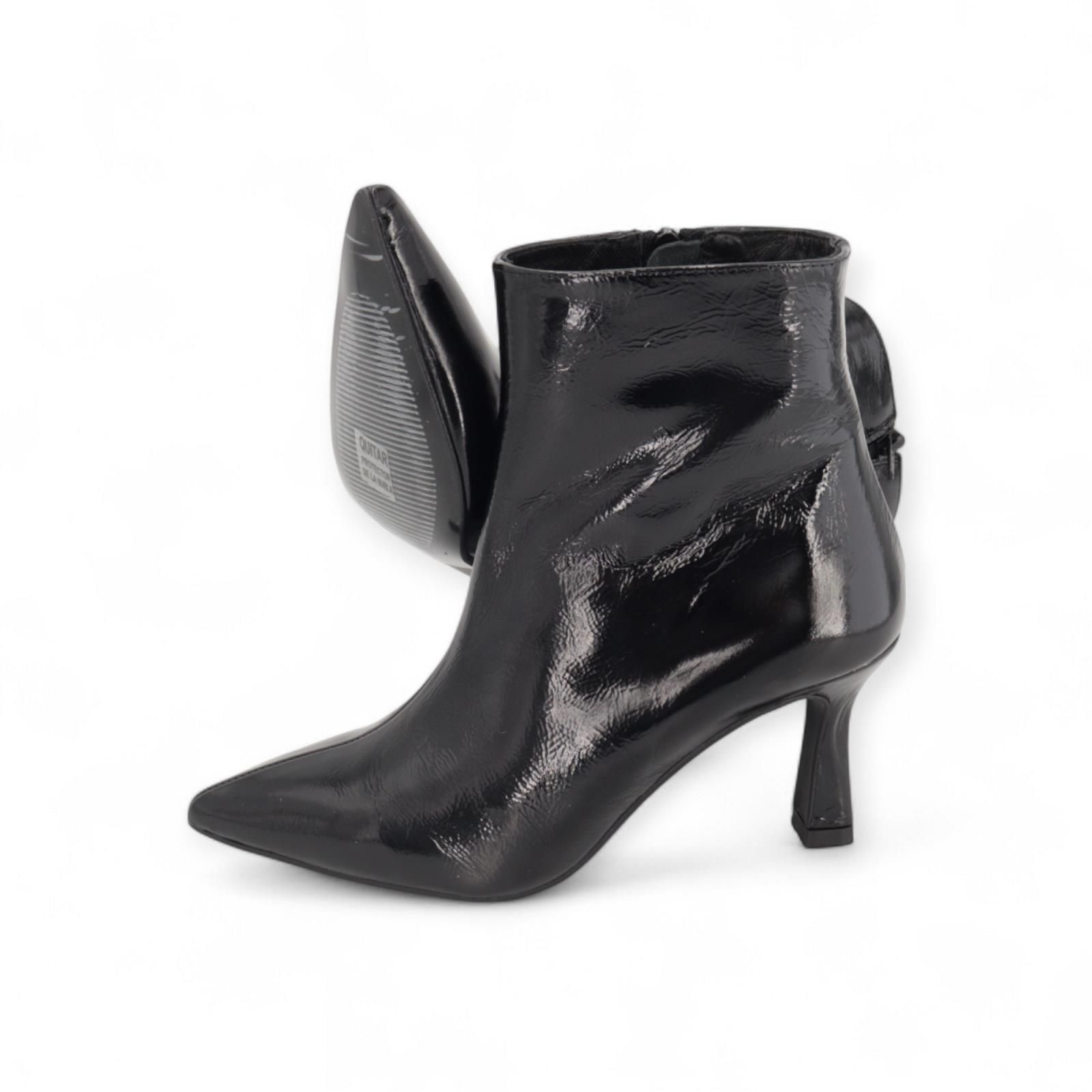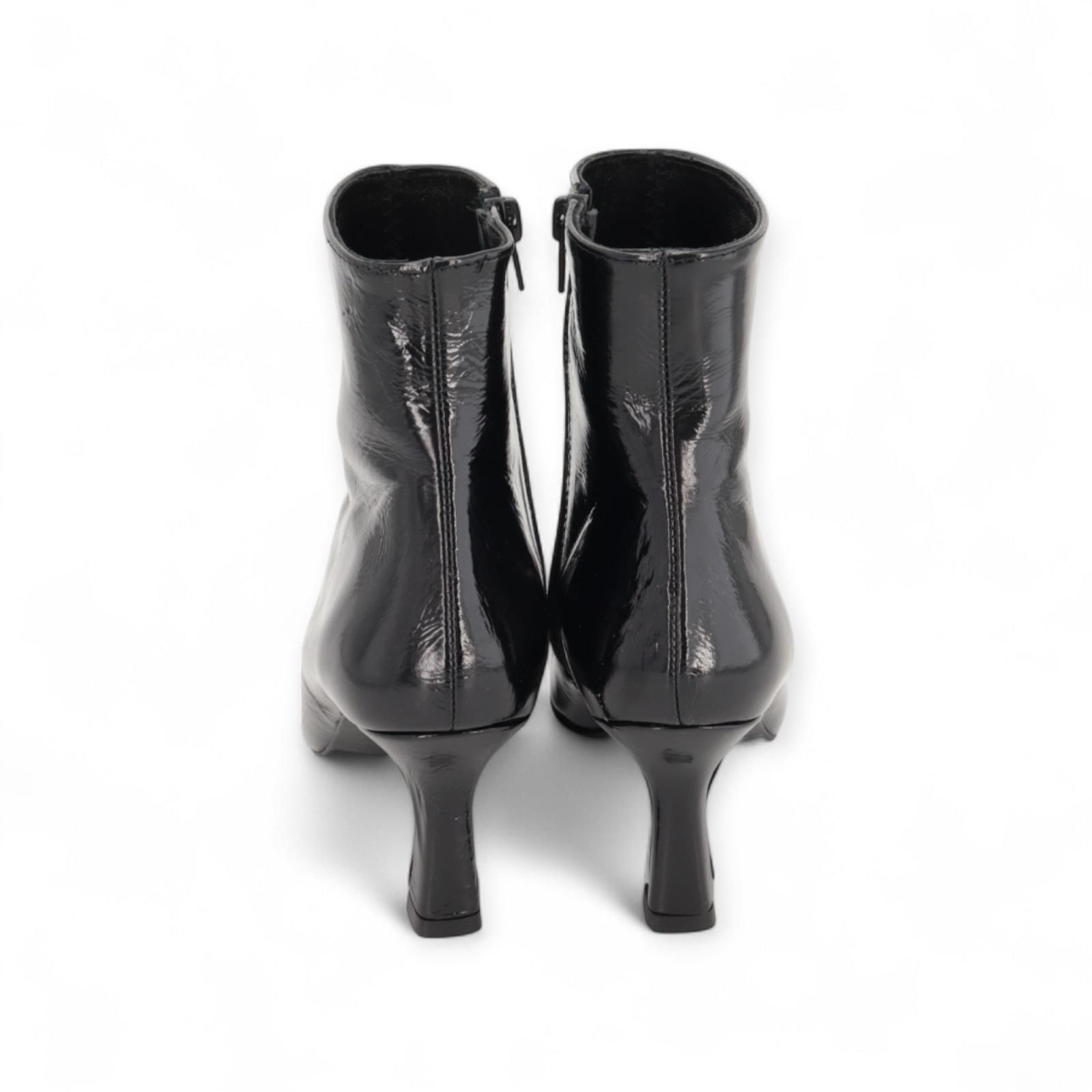 Enkellaars Victoria van CTWLK voor dames. Dit elegant enkellaarsje is in zwart lakleer. Is met een ritssluiting aan de zijkant en afgewerkt met een scherpe top en een fijn naaldhakje van 7-7,5 cm hoog.