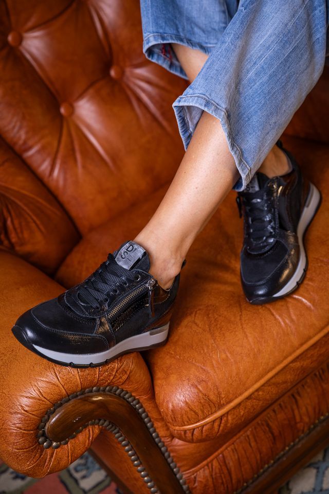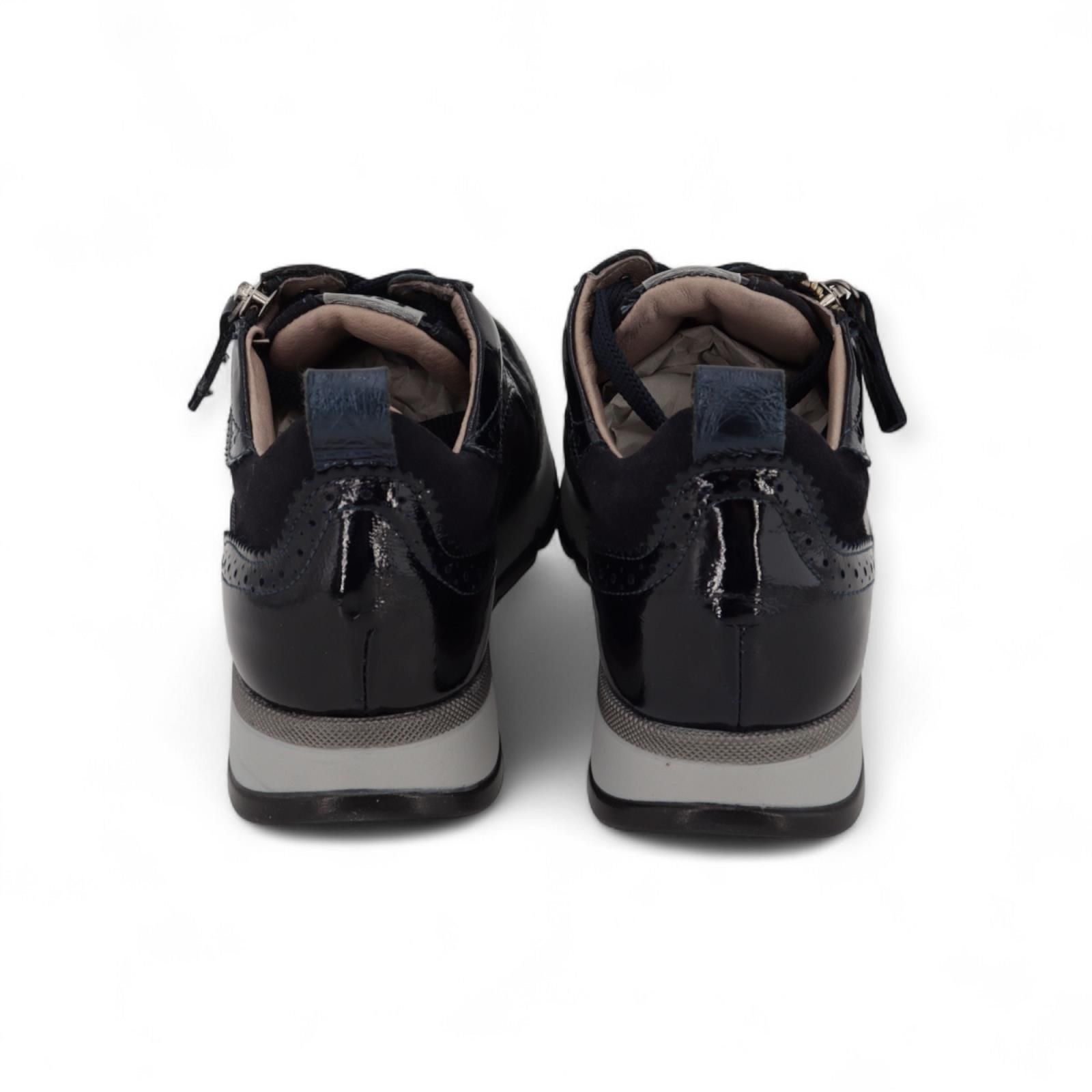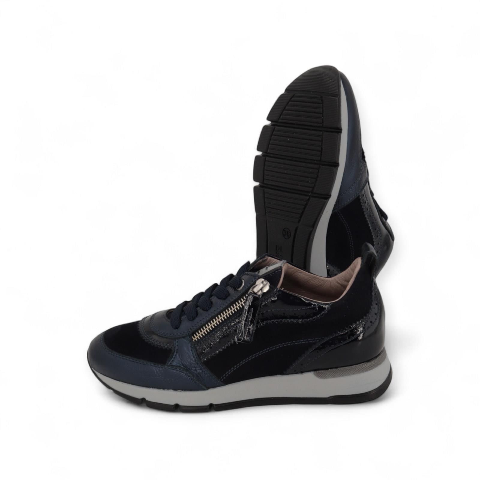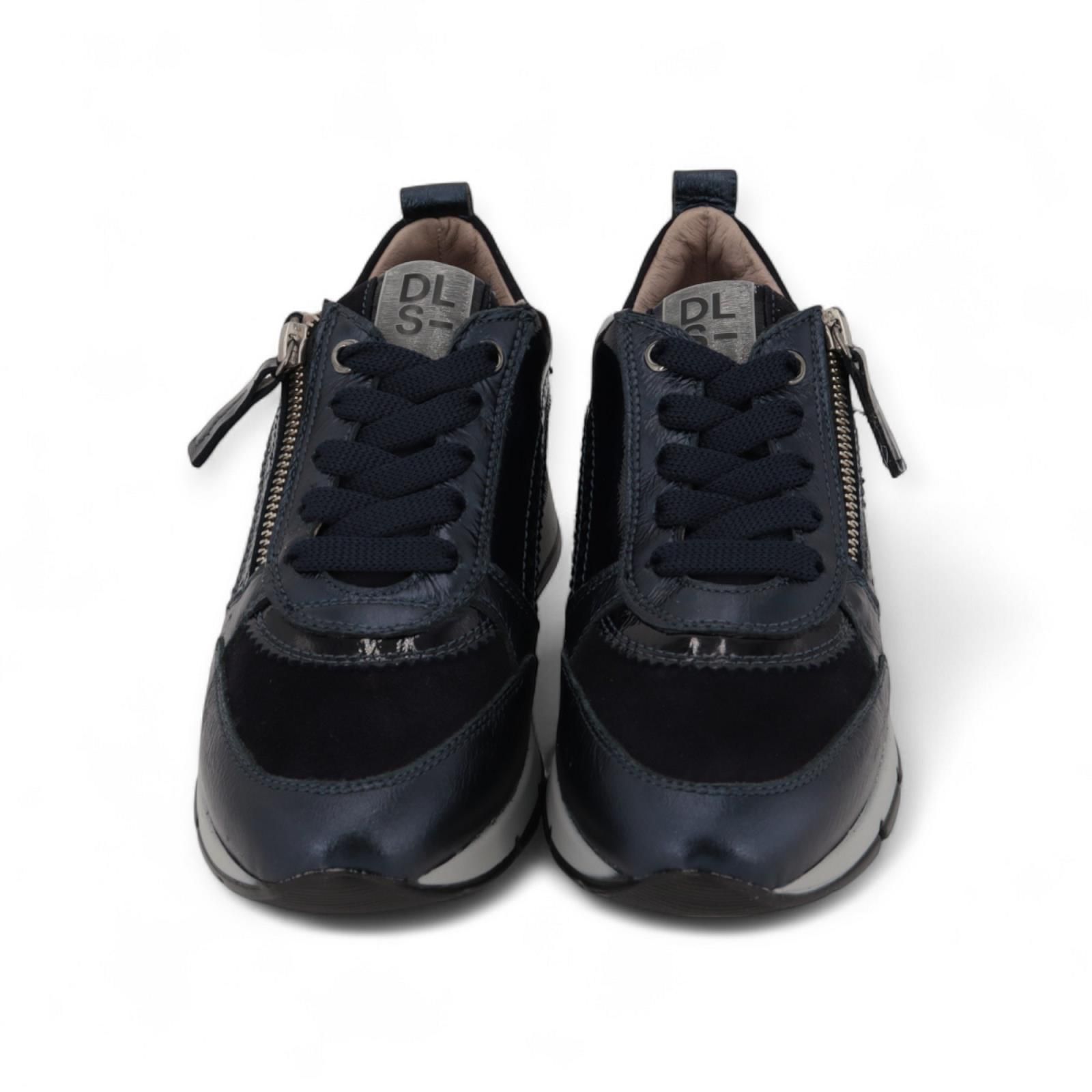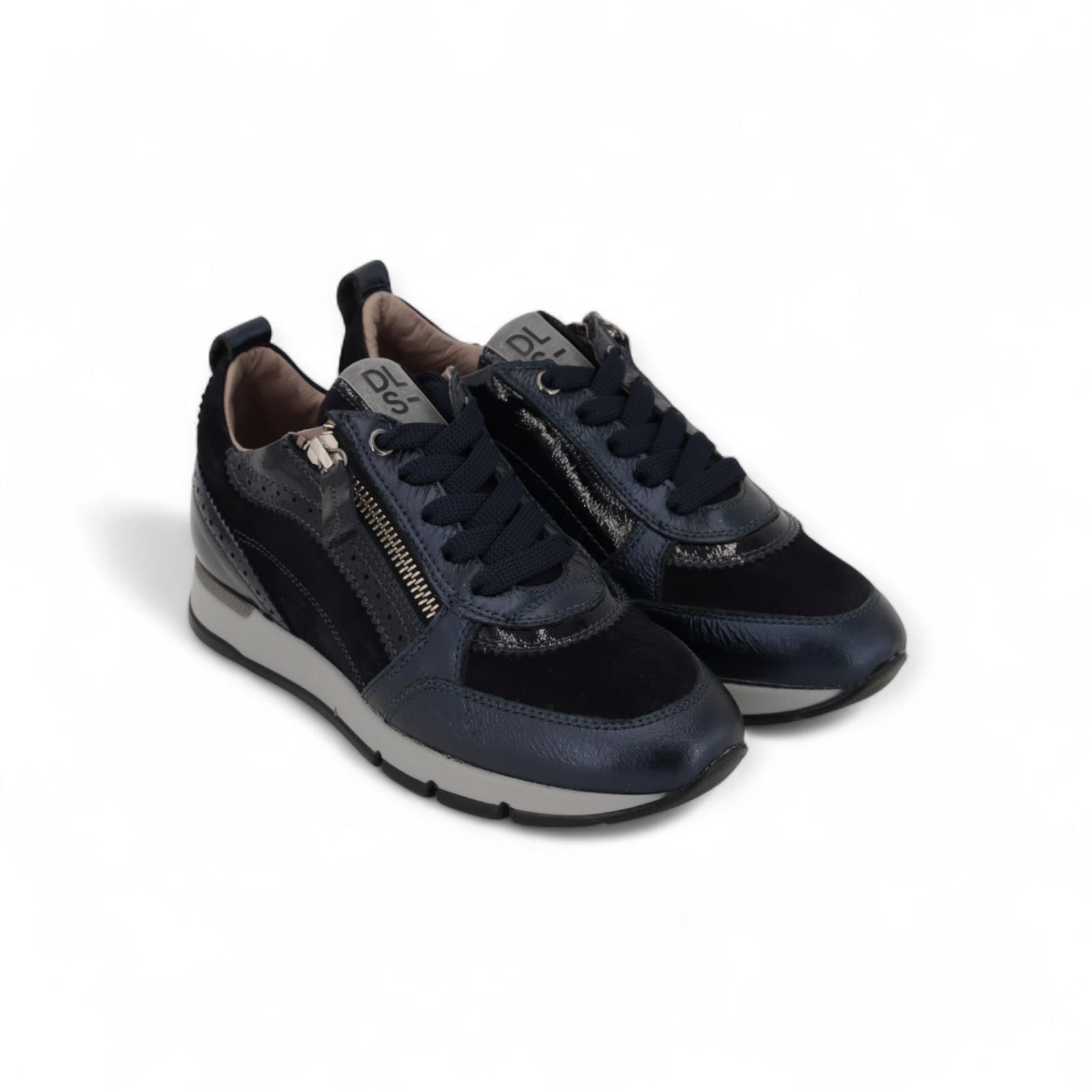 Sneaker van DL Sport 6719 voor dames. Deze runner is in blauw leer met suède. Is afgewerkt met een ritssluiting en veters. Heeft een dikke grijze zool die voor aangenaam comfort zorgt. De binnenzool is uitneembaar. Ontdek ons Italiaans comfortmerk.