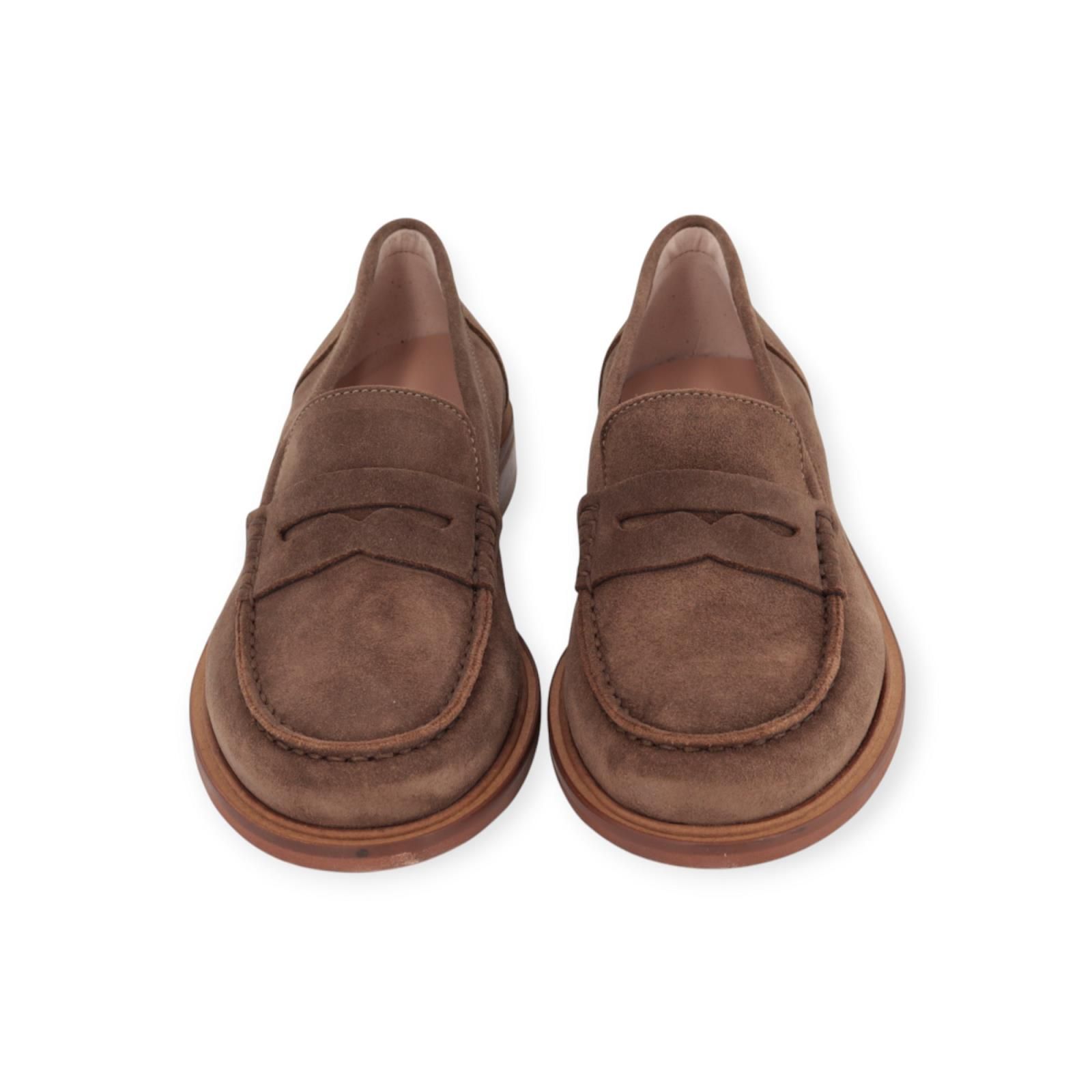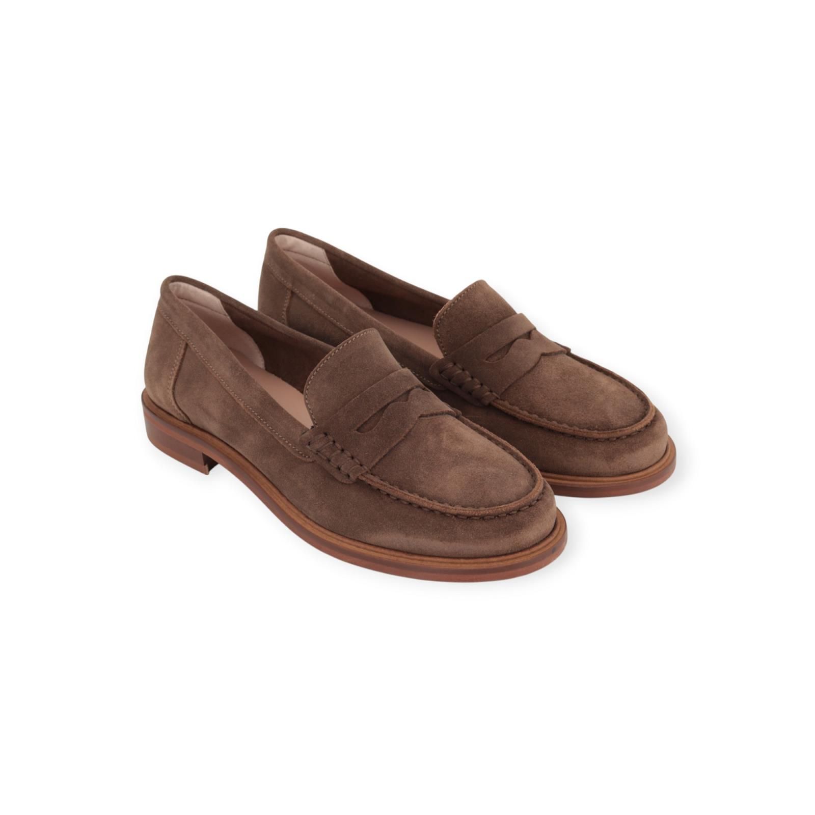 Mocassin Elsa van Elisa Lanci voor dames. Deze mocassin is in donkerbruin suède. Heeft een band over de wreef met een dikke stekking. Heeft een leren buitenzool met een klein antisliphieltje.