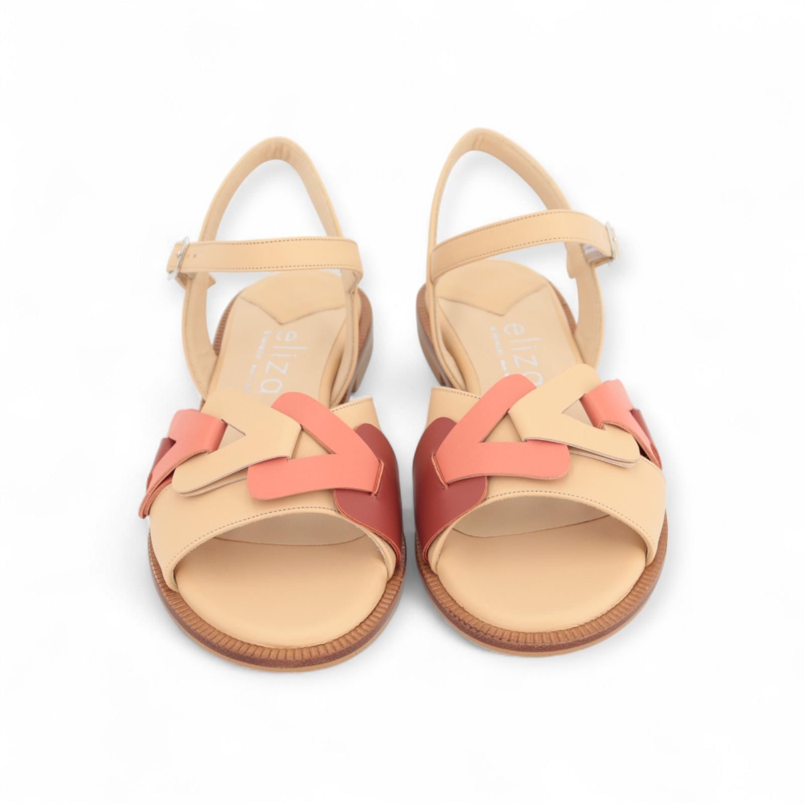 Eliza di venezia dames sandaal in multi nude kleur (beige, nude, rose en rood). Het bandje vooraan en het bandje rond de enkel zorgen dat deze sandaal mooi en elegant aan de voet staat. Deze sandaal is volledig in leer afgewerkt. Deze 100% handgemaakte Italiaanse leren schoenen zijn typerend voor haar vormen, materialen en unieke combinaties. Stuk voor stuk schoenen voor de elegante dame.