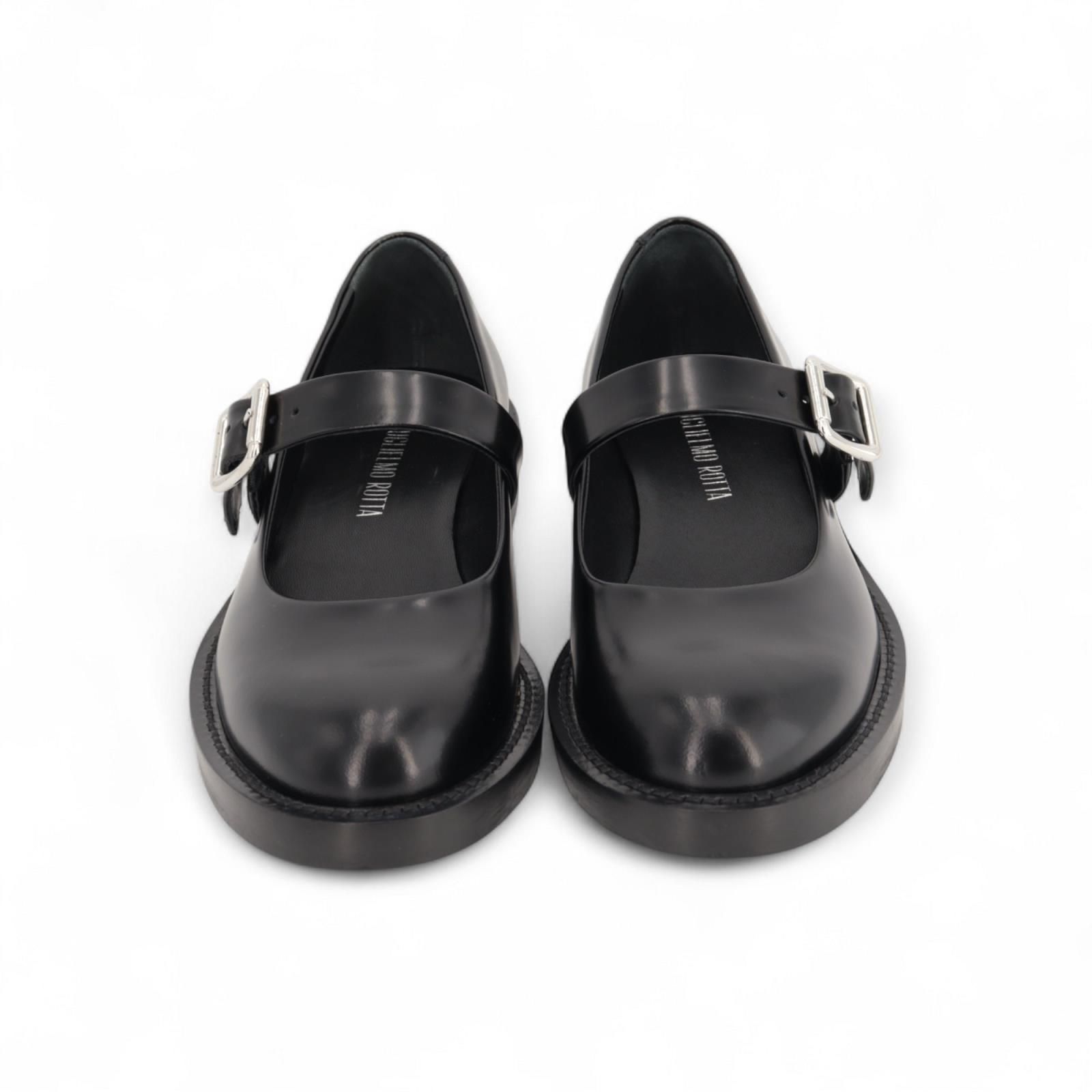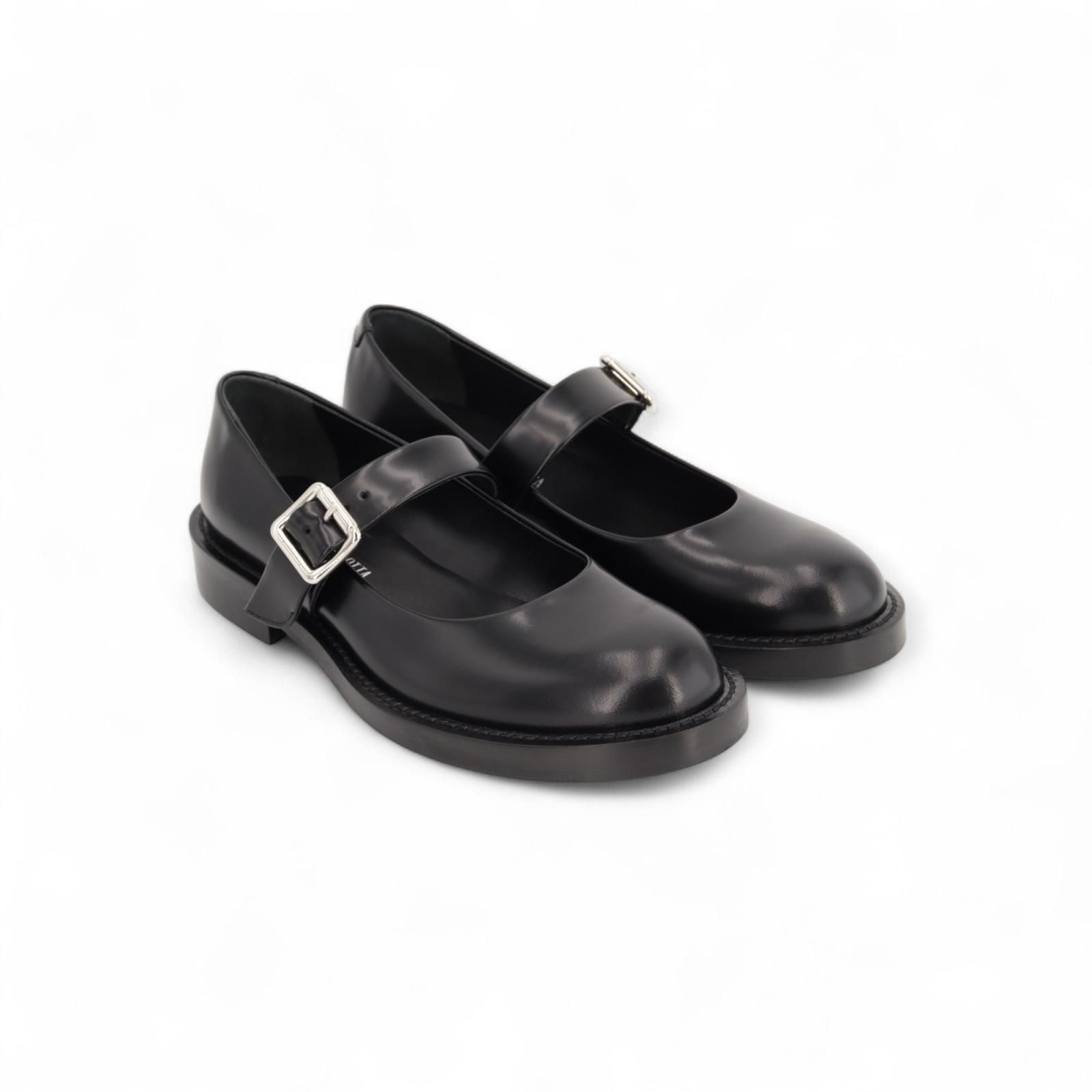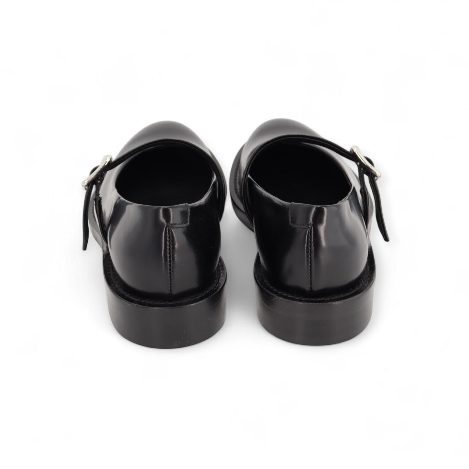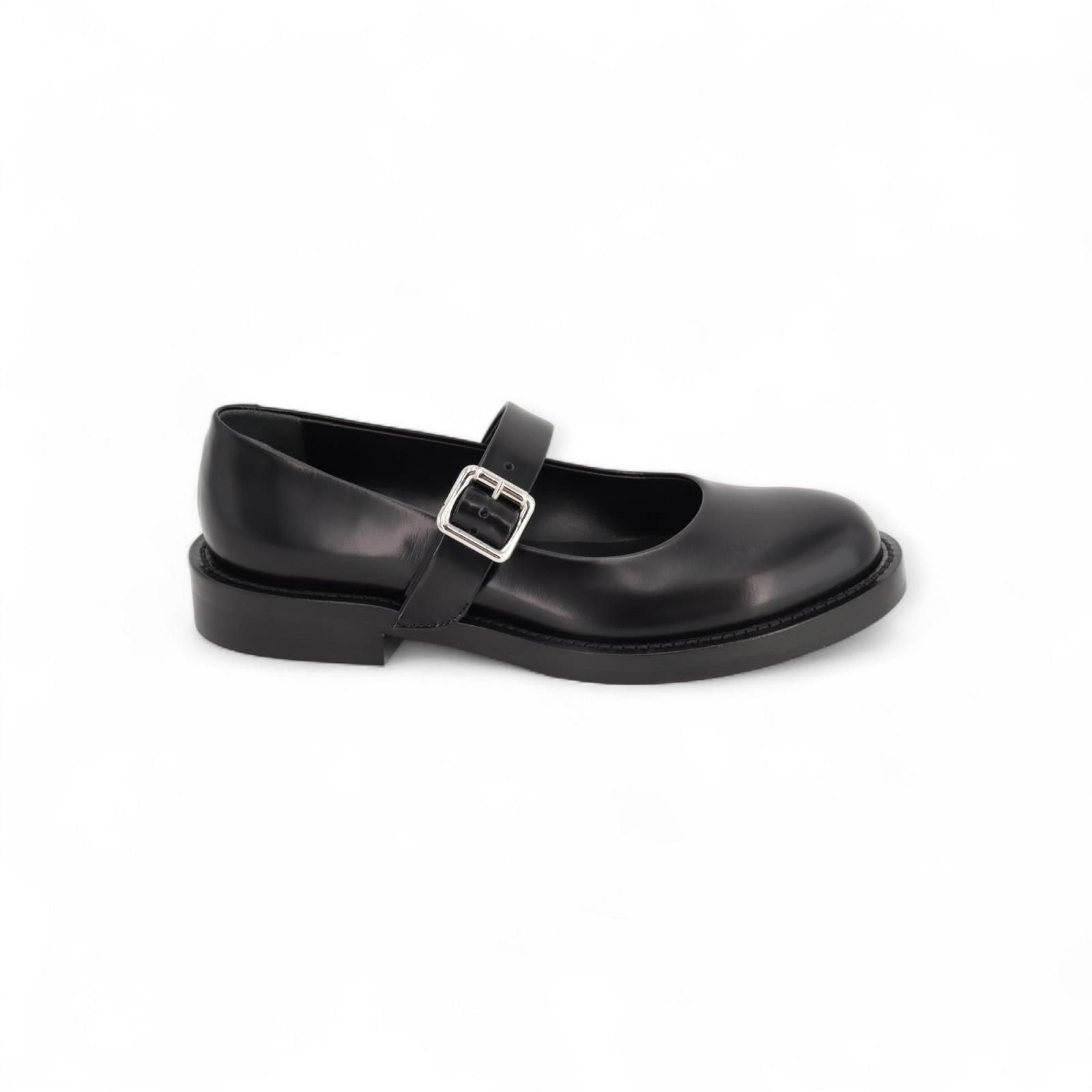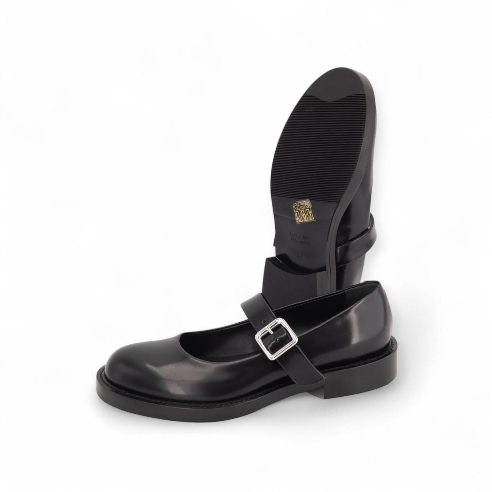Ballerina Pax van Guglielmo Rotta voor dames. Deze ballerina is in zwart leer afgewerkt met een bandje over de wreef en een zilveren gespsluiting. Is op een zwarte antislipzool. Door zijn minimalistische afwerking is deze ballerina zeer stijlvol.