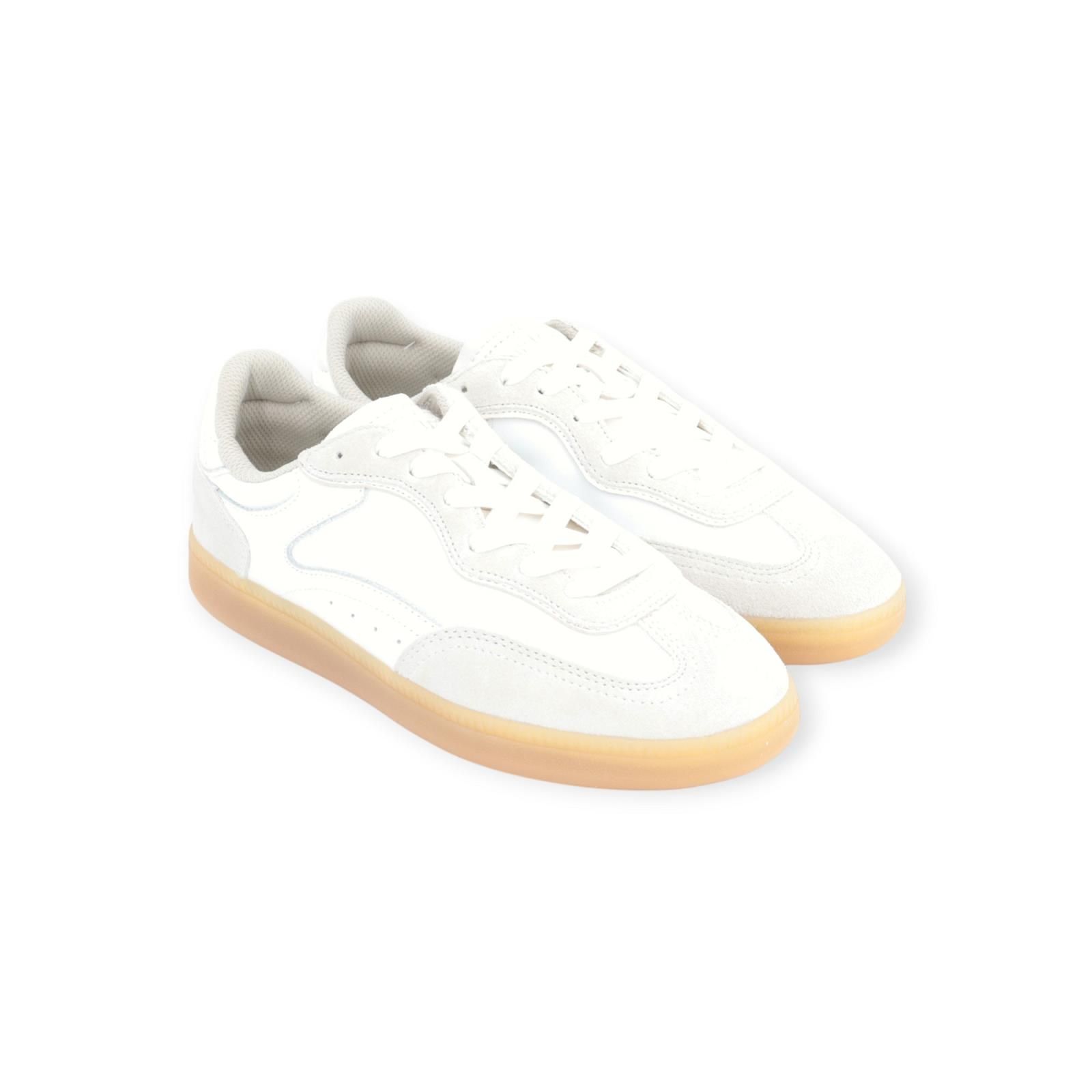 Sneaker Park van Hoff voor dames en heren. Deze sneaker is in wit suède met stiksel leer en nylon. Is op een gummy beige zool met een uitneembare binnenzool. Dit model is unisex.