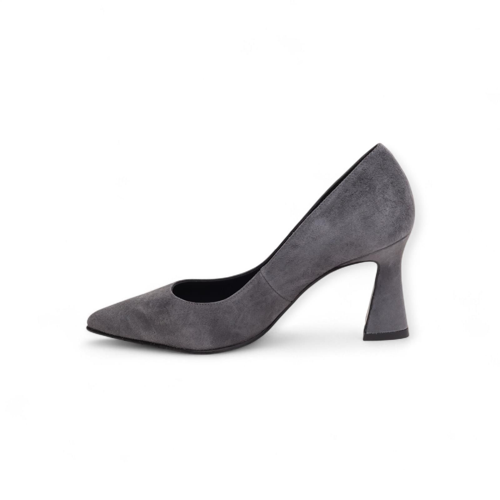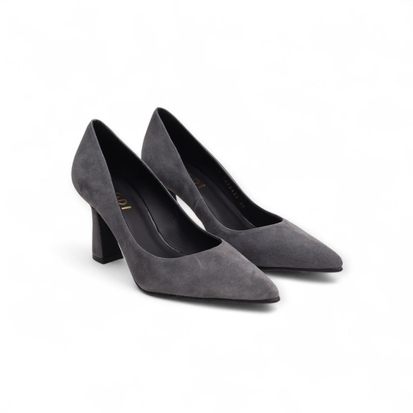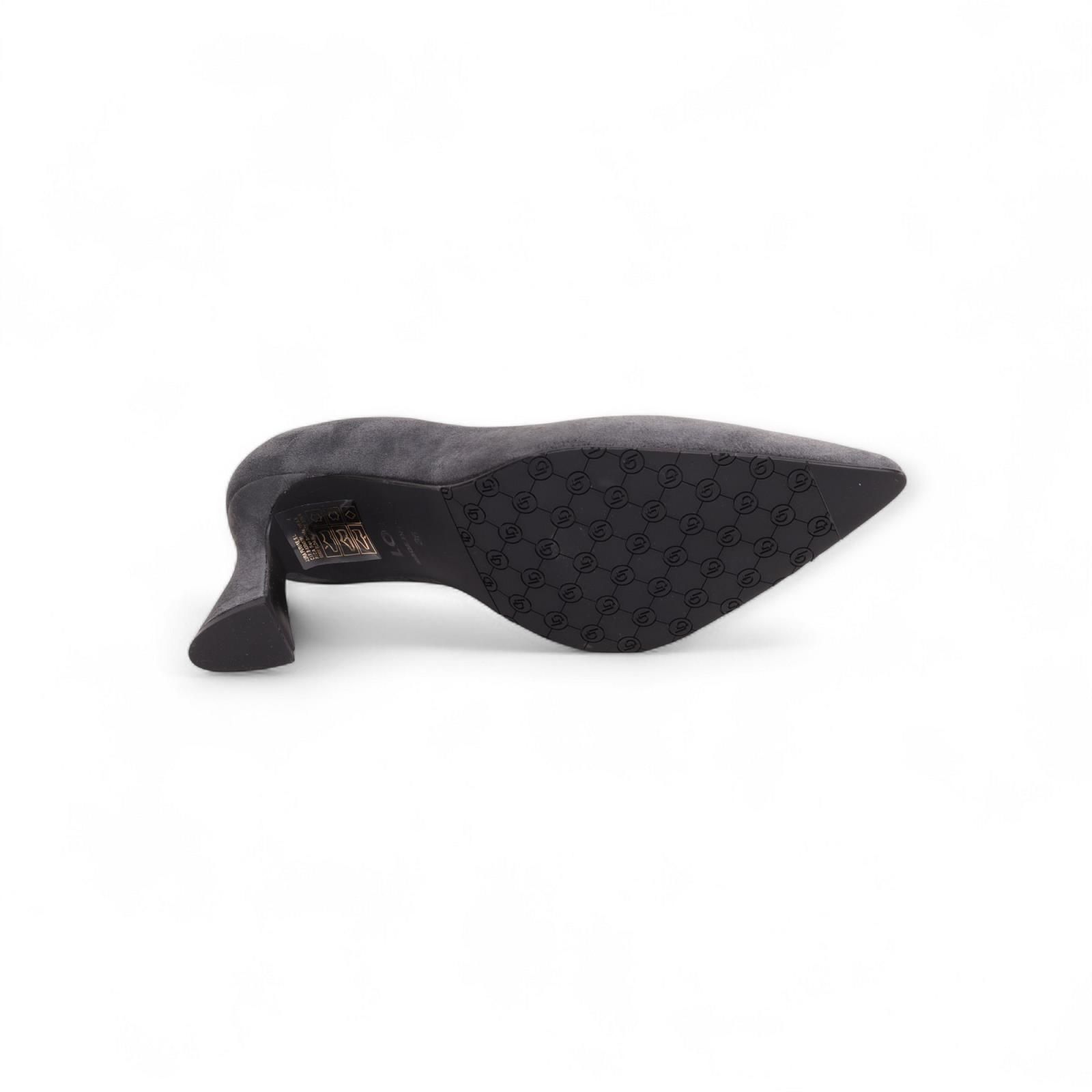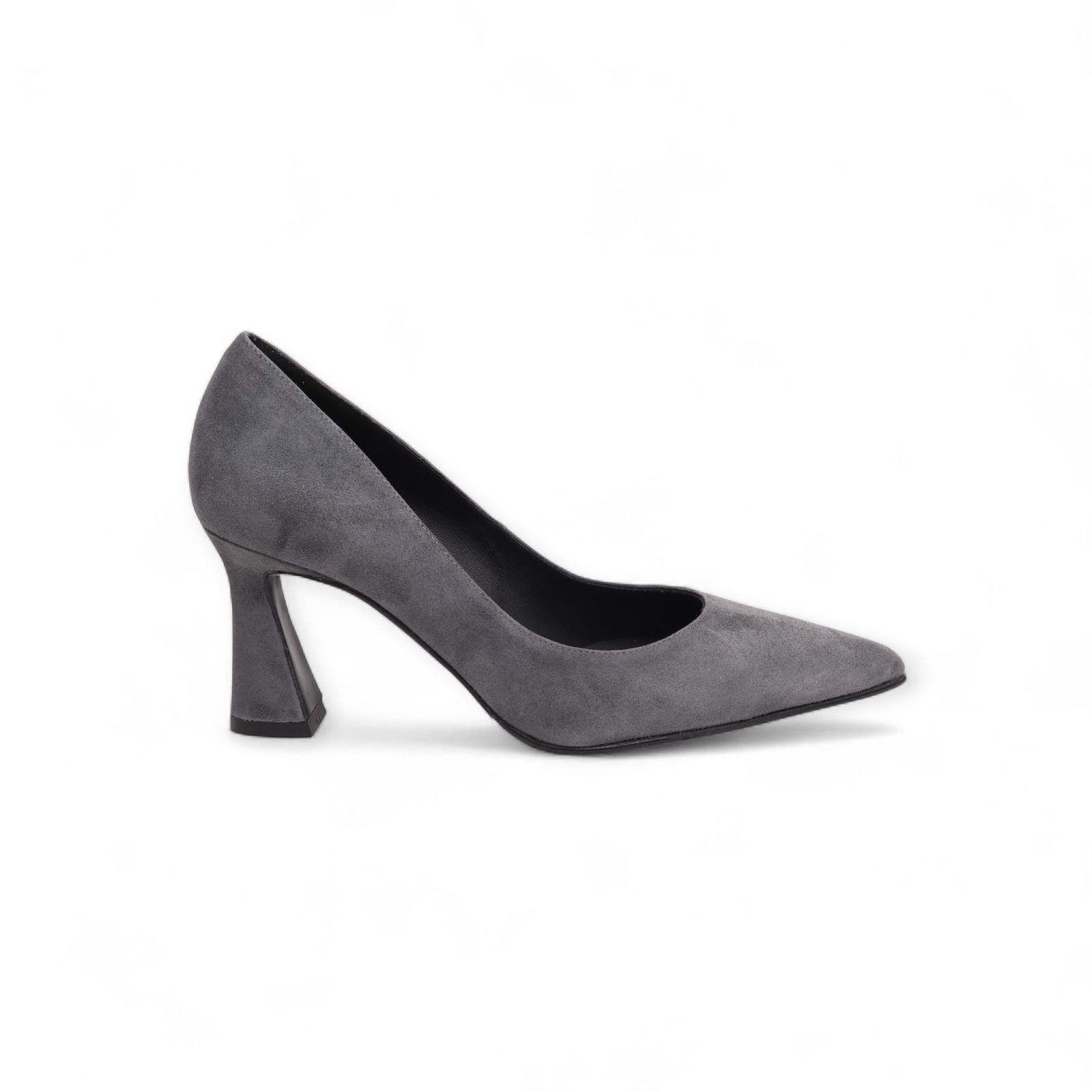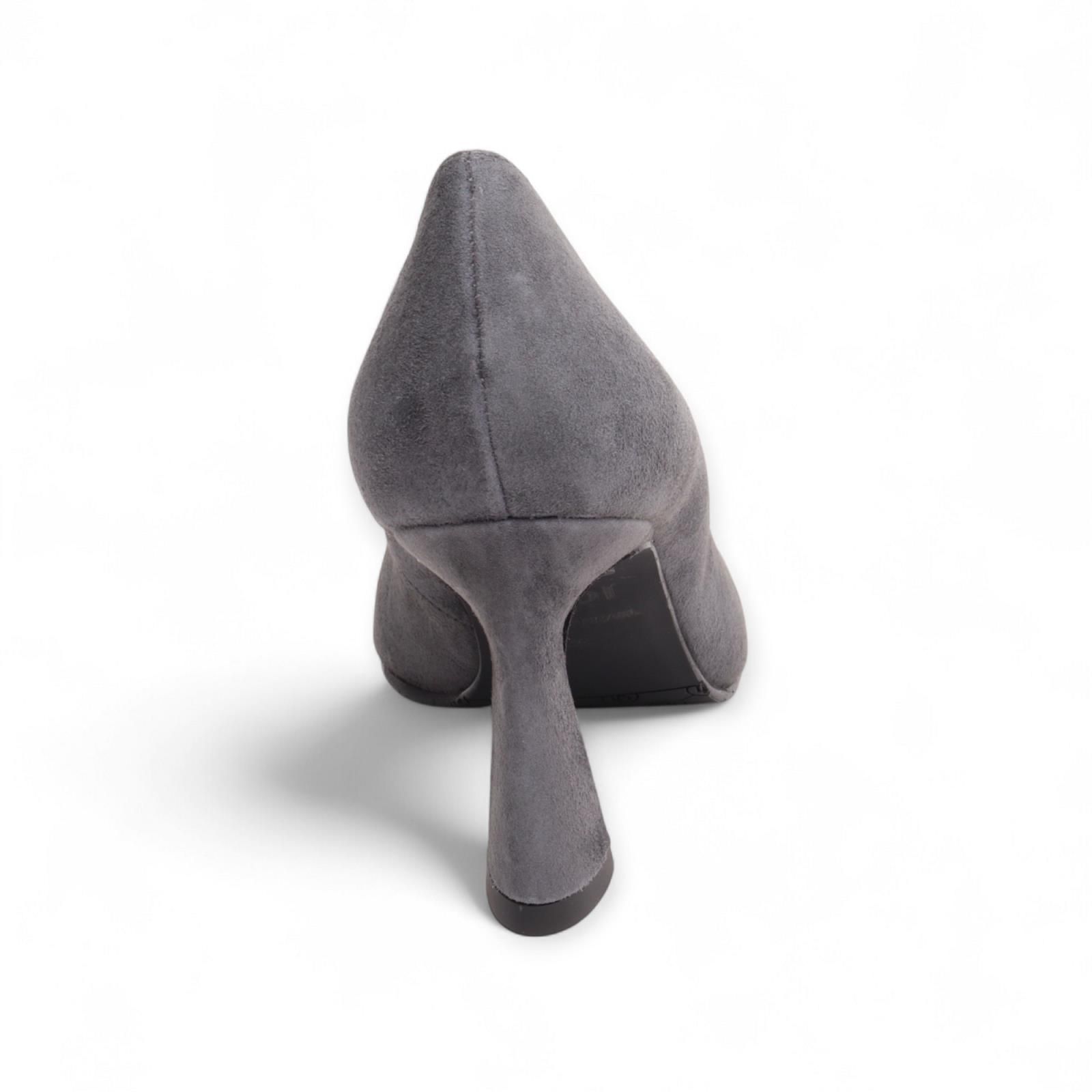 Pump Roa Robin van Lodi in grijs. Deze suede pump heeft een fijne top en een ronde halslijn. Is zeer elegant en heeft een geometrische hak van 7,5cm hoog. Met leer gevoerde binnenkant en een gelbinnenzool voor meer comfort bij elke stap.