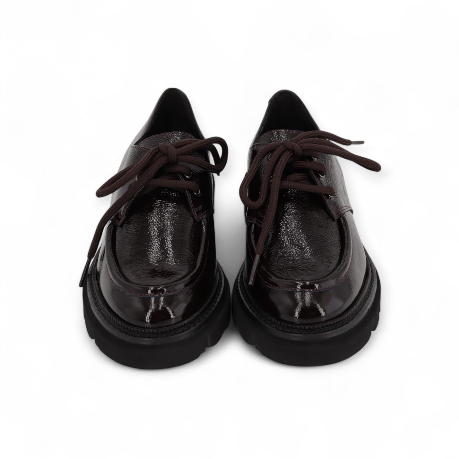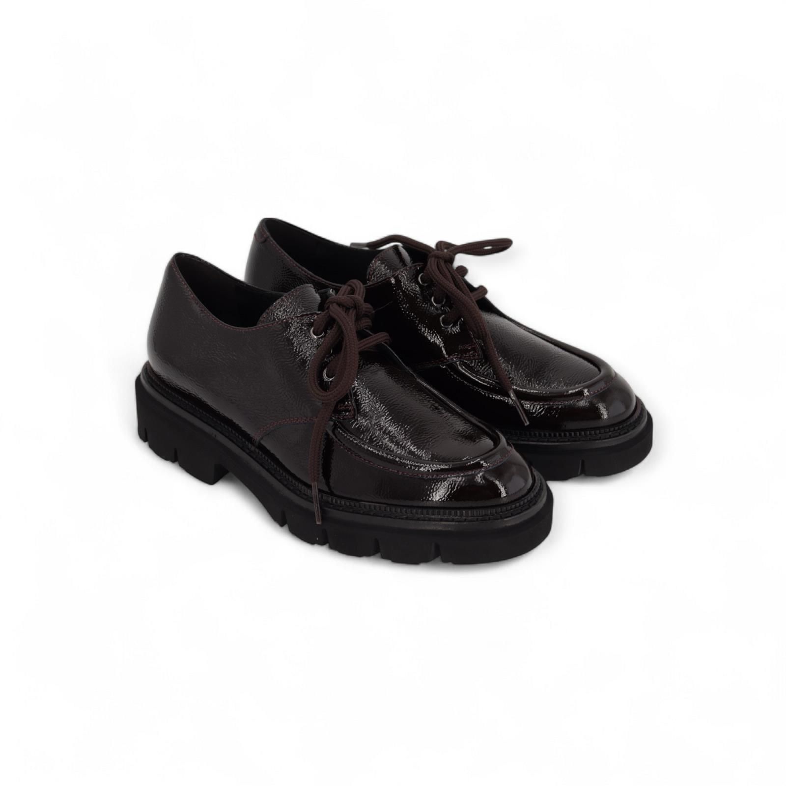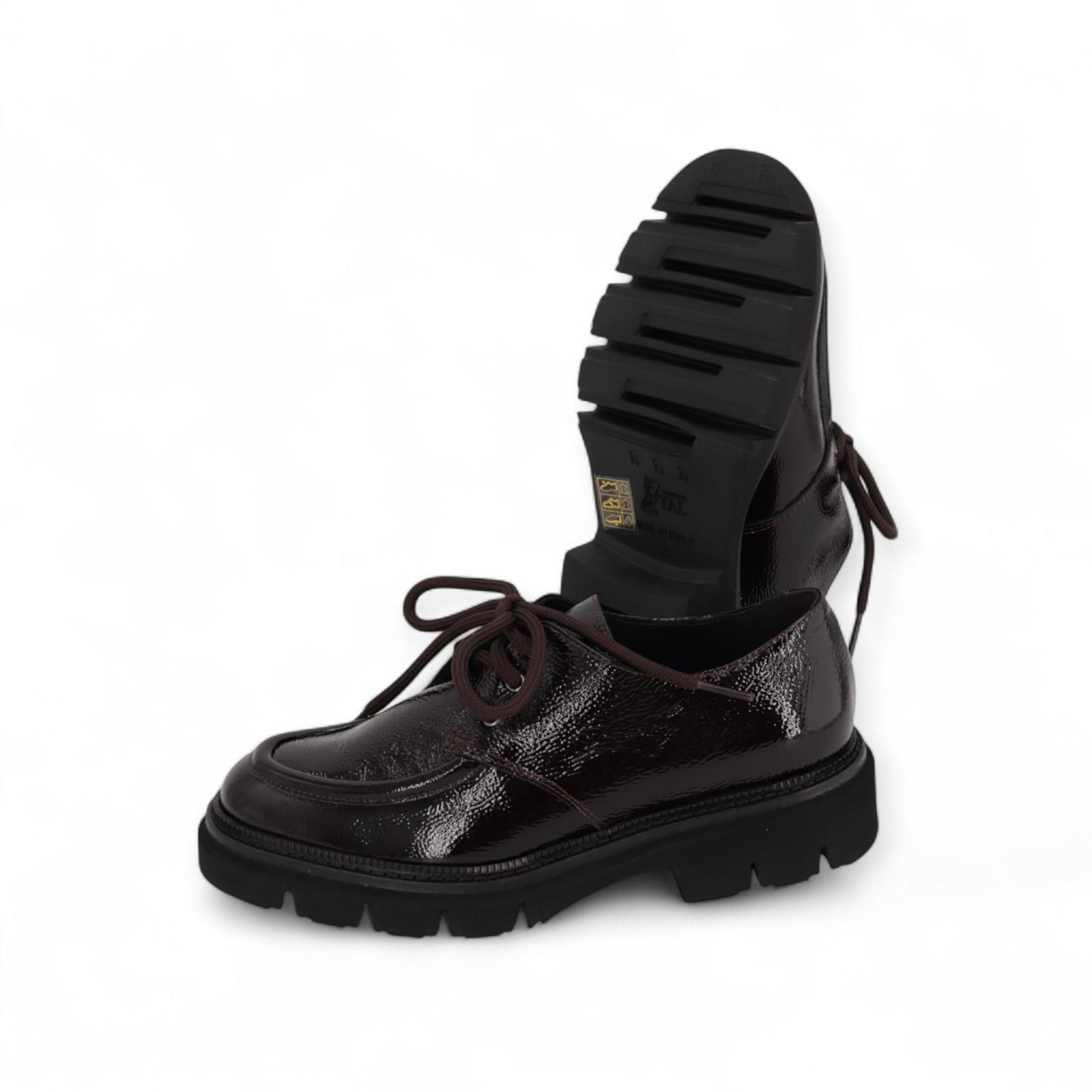 Veterschoen L410 van Luca Grossi voor dames. Deze veterschoen is in zacht bruin lakleer met een dikke stekking over de wreef. Heeft een dikke microzool die voor aangenaam comfort en warmte zorgt.