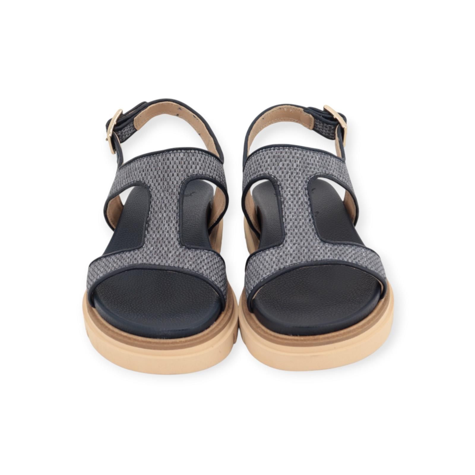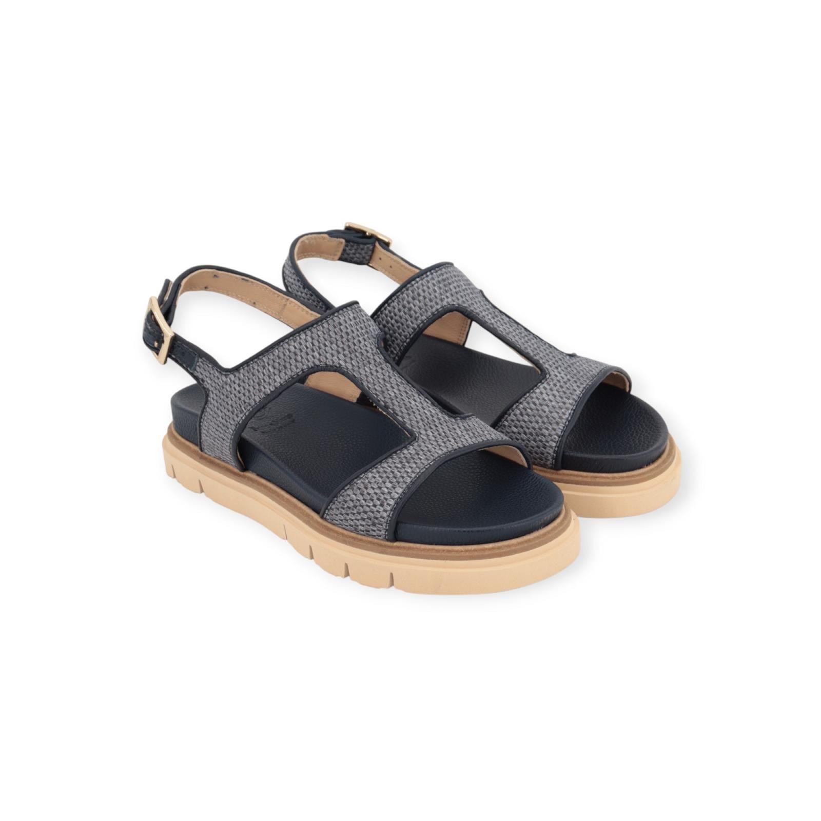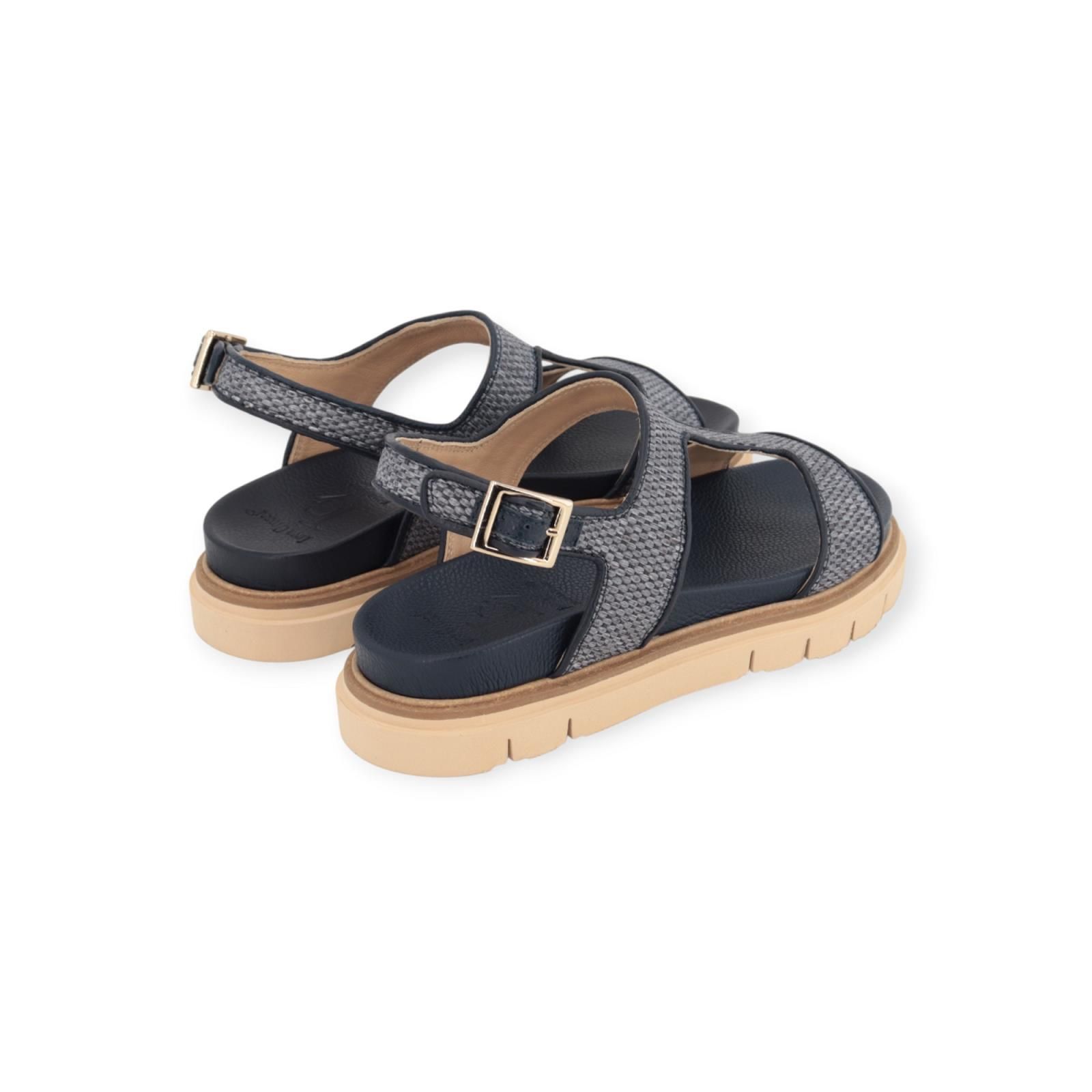 Sandaal L814 van Luca Grossi voor dames. Deze sandaal is in blauw raffia. Het model zit mooi vast aan de voet en heeft een gespsluiting rond de enkel. Heeft een aangenaam voetbed in leer met een dikke microzool die voor aangenaam comfort zorgt.