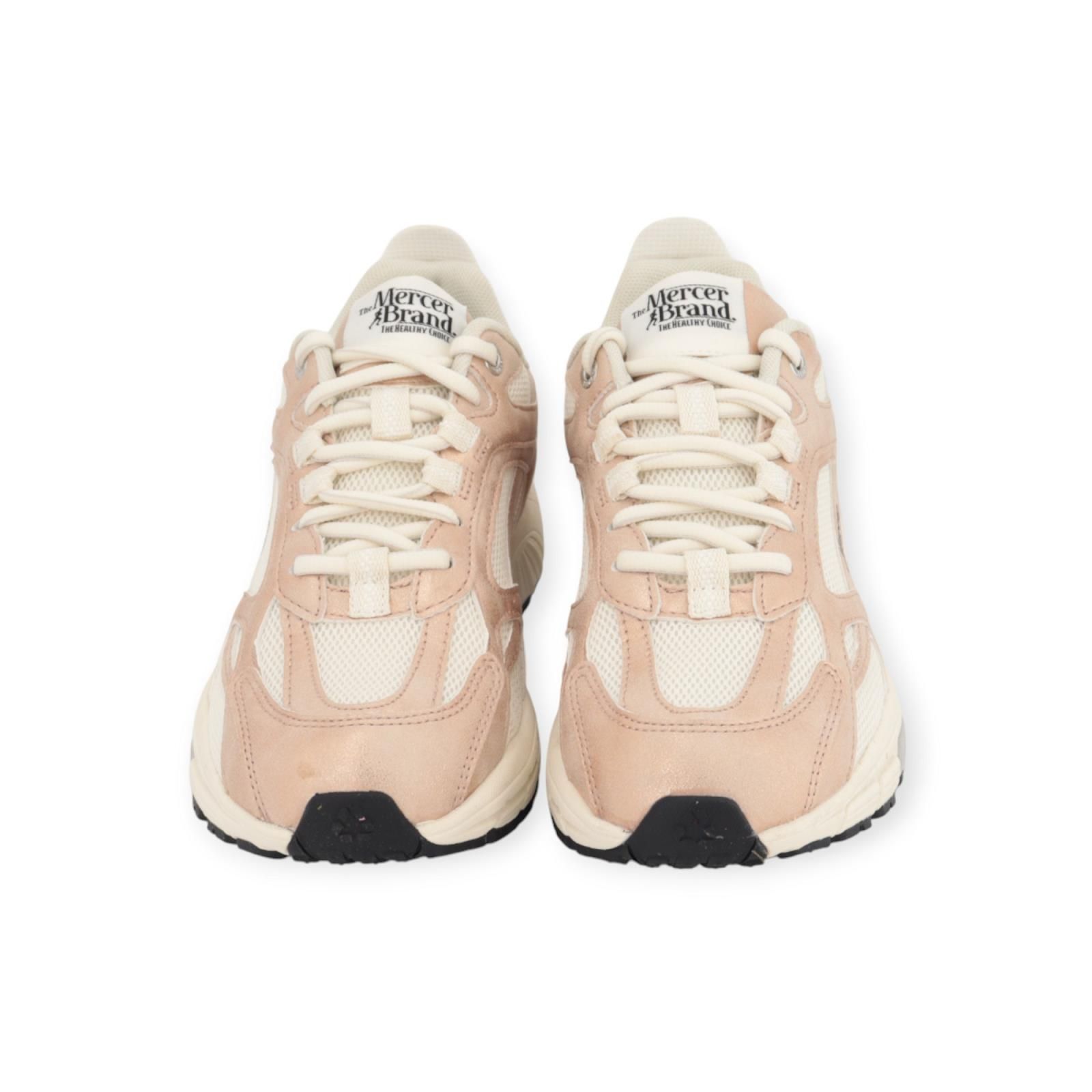 Sneaker The Re-Run Metallic van Mercer voor dames. Deze runner is in roze mat metallic met een vintage finish en een subtiele glans. The Re-Run is ontworpen voor comfort en volledig uit gerecycled materiaal vervaardigd. Heeft een lichtgewicht EVA-middenzool voor een gedempte stap, gecombineerd met een duurzame buitenzool van gerecycled rubber voor langdurige grip. De binnenzool is uitneembaar. Combineer deze schoen met je favoriete outfit van Mercer.