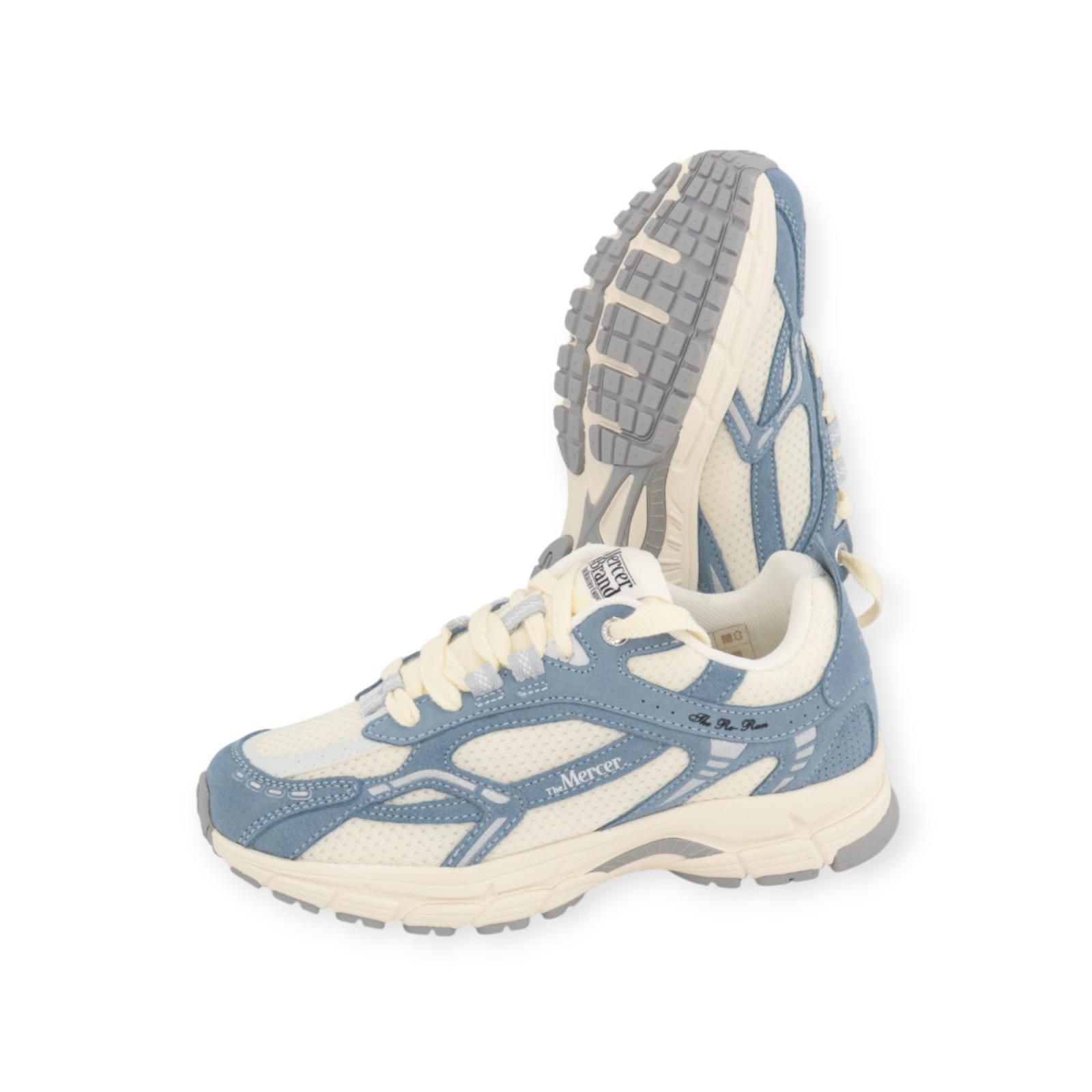 Sneaker The Re-Run Vintage van Mercer voor dames. Deze sneaker is in lichtblauw suède met off wit mesh. The Re-Run is dé klassieker ‘vintage’ waar het allemaal mee begon. The Re-Run: ontworpen voor comfort en volledig uit gerecycled materiaal vervaardigd. Heeft een lichtgewicht EVA-middenzool voor een gedempte stap, gecombineerd met een duurzame buitenzool van gerecycled rubber voor langdurige grip. De binnenzool is uitneembaar. Combineer deze schoen met je favoriete outfit van Mercer.
