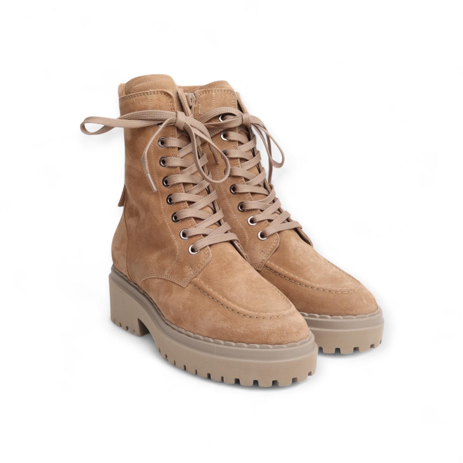 Enkellaars Fae Bobbi Fur van Nubikk voor dames. Deze stoere boot is in zand suède. Heeft een dikke stekking op de voorvoet. Is voorzien van een rits aan de zijkant met vetersluiting. Heeft een dikke zool en een uitneembare binnenzool.