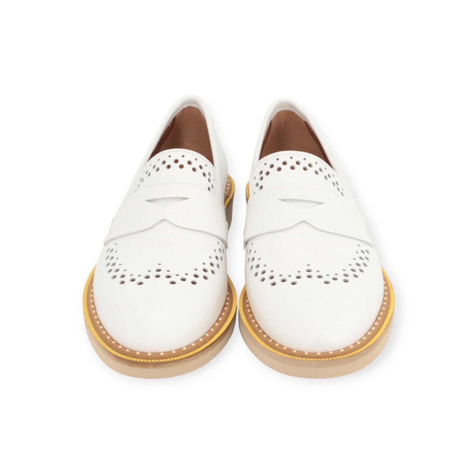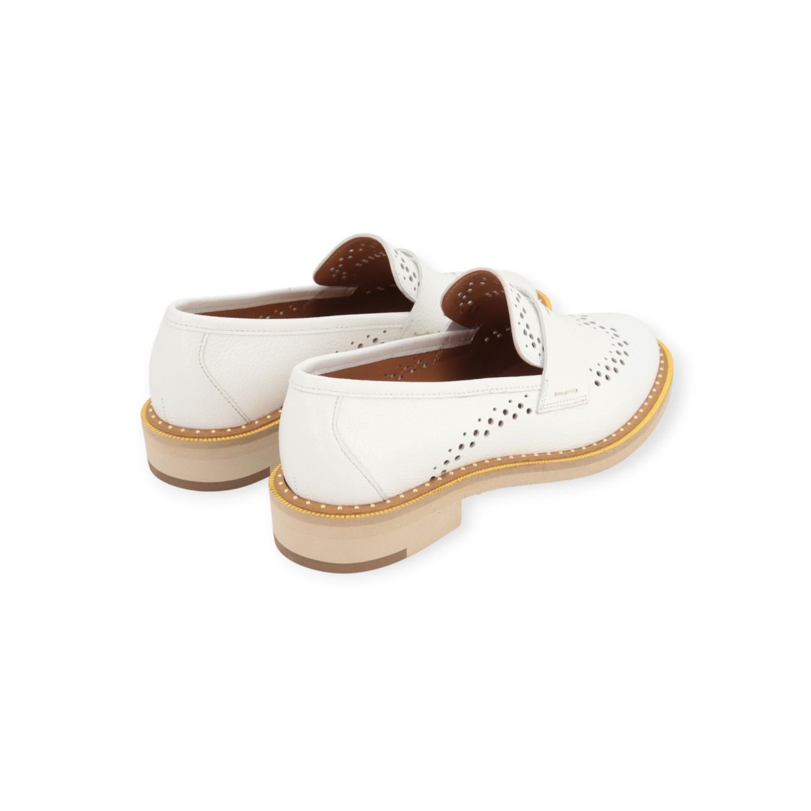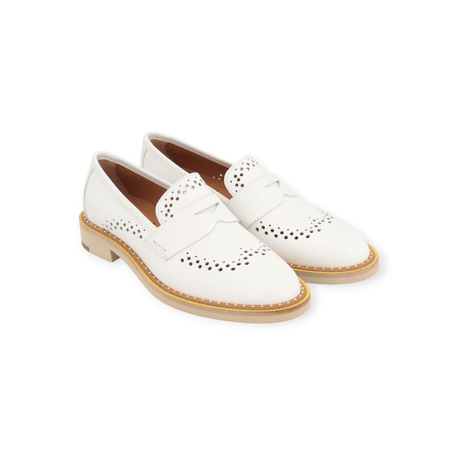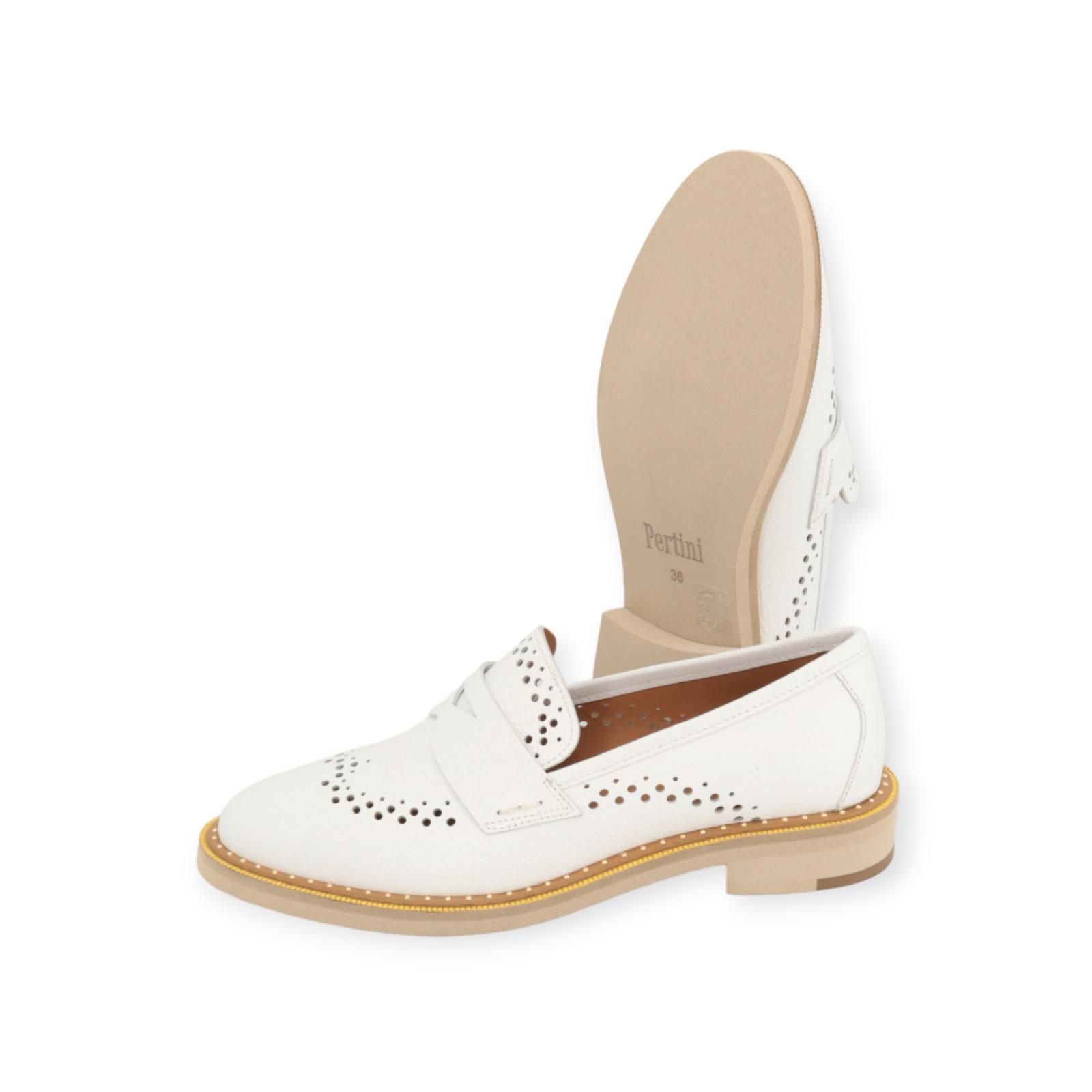 Mocassin van Pertini voor dames in wit leer. Deze mocassin is in wit leer met een band over de wreef. Is afgewerkt met geperforeerde details langs de zijkanten en op de wreef. Heeft een aangename microzool die zeer licht aanvoelt.