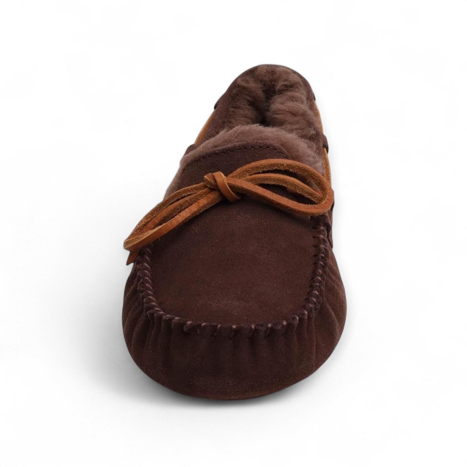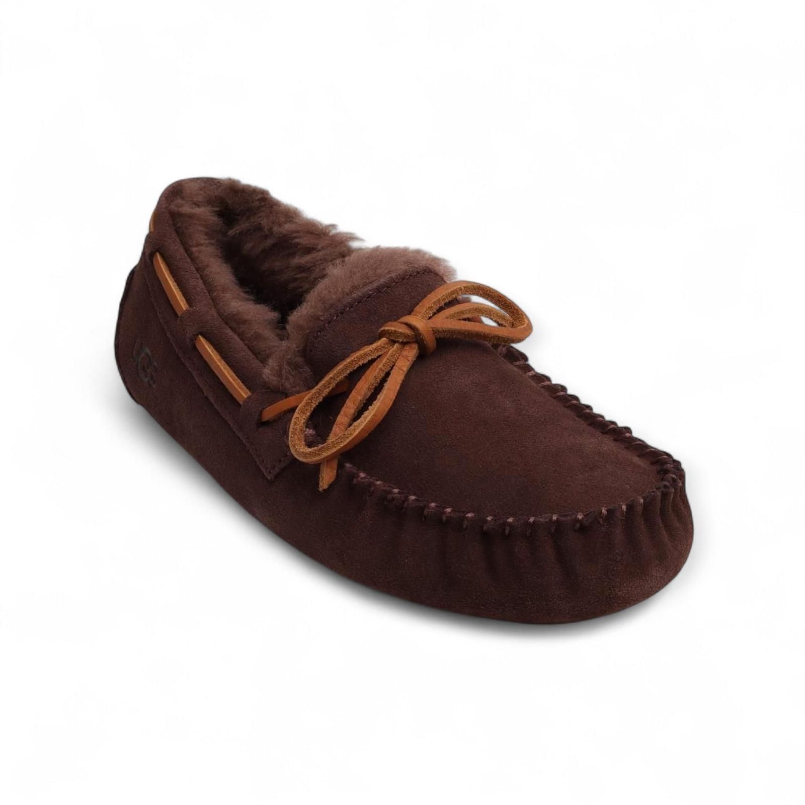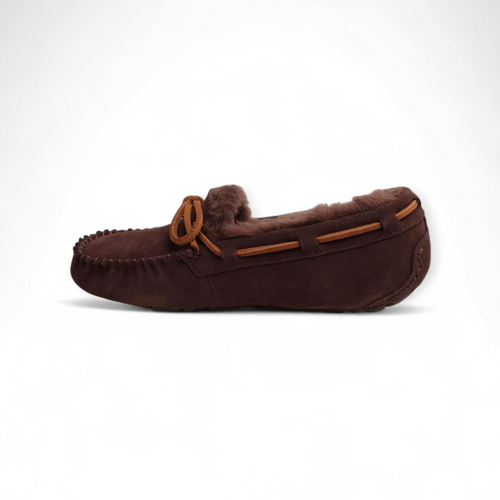 Pantoffel Cozy van UGG voor dames. Deze pantoffel is in bruin gebreid bovenstuk met een kraag van wol. Is binnenin ook in wol. Heeft een super lichte zool die antislip is en afgewerkt met een stoffen bies rond de zool.