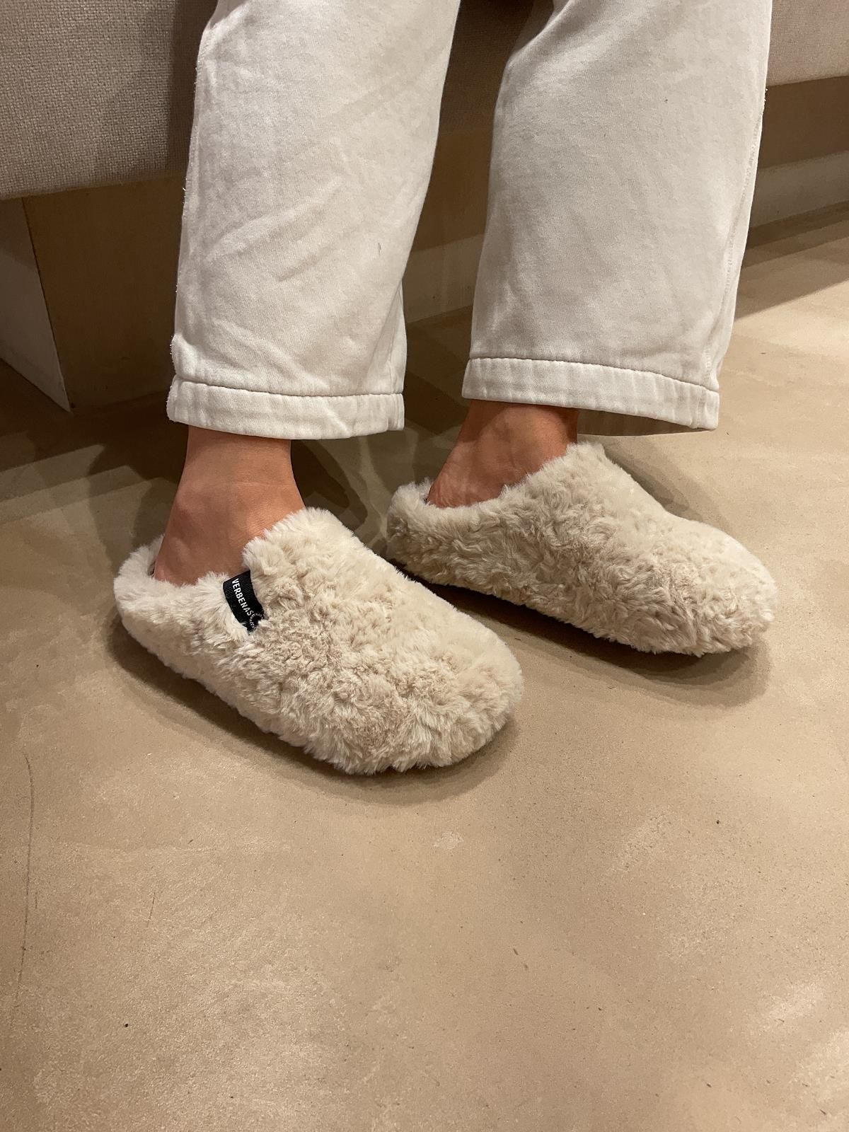 Pantoffel York Damara van Verbenas voor dames. Deze pantoffel is in beige fluffy. Voelt aangenaam warm en is op een antislip zool.