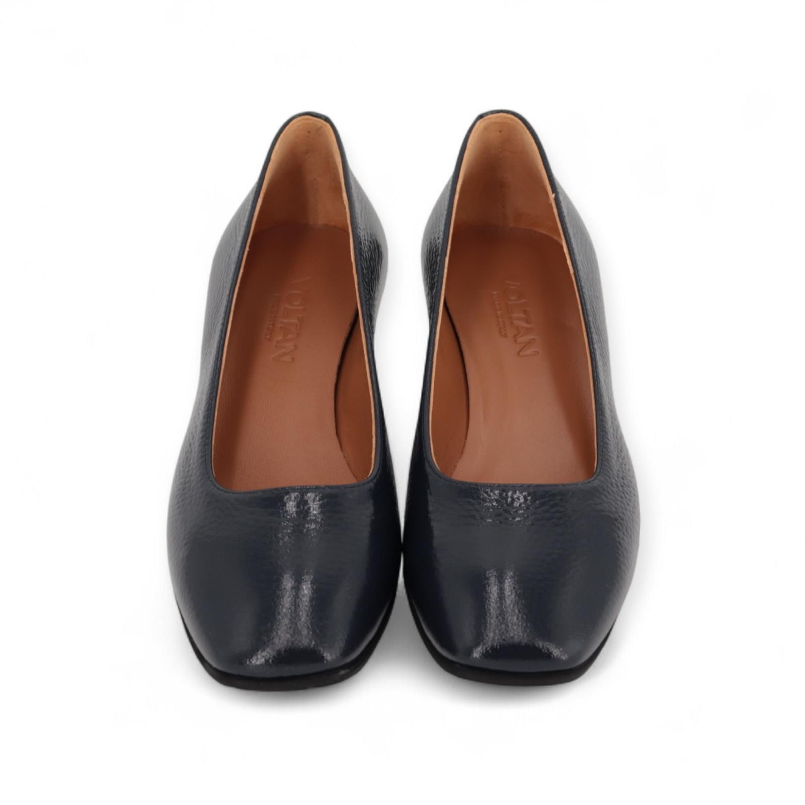 Pump LV438 van Voltan voor dames. Deze elegante pump is in blauw lakleer met een carré top. Heeft een hak van 4,5cm hoog en is volledig vervaardigt in het fijnste leer. Is op een antislip buitenzool. Straal klasse uit met deze Voltan pump.