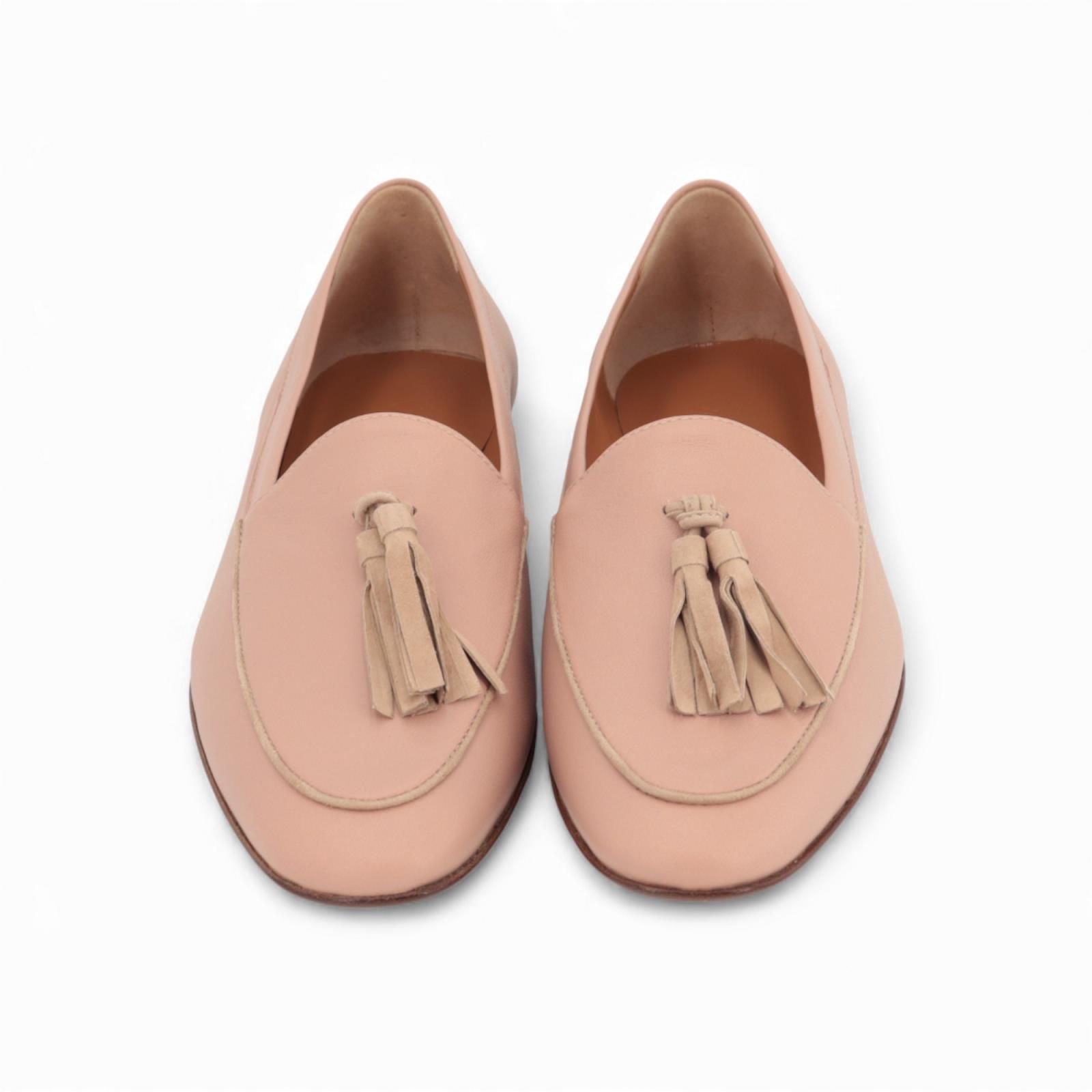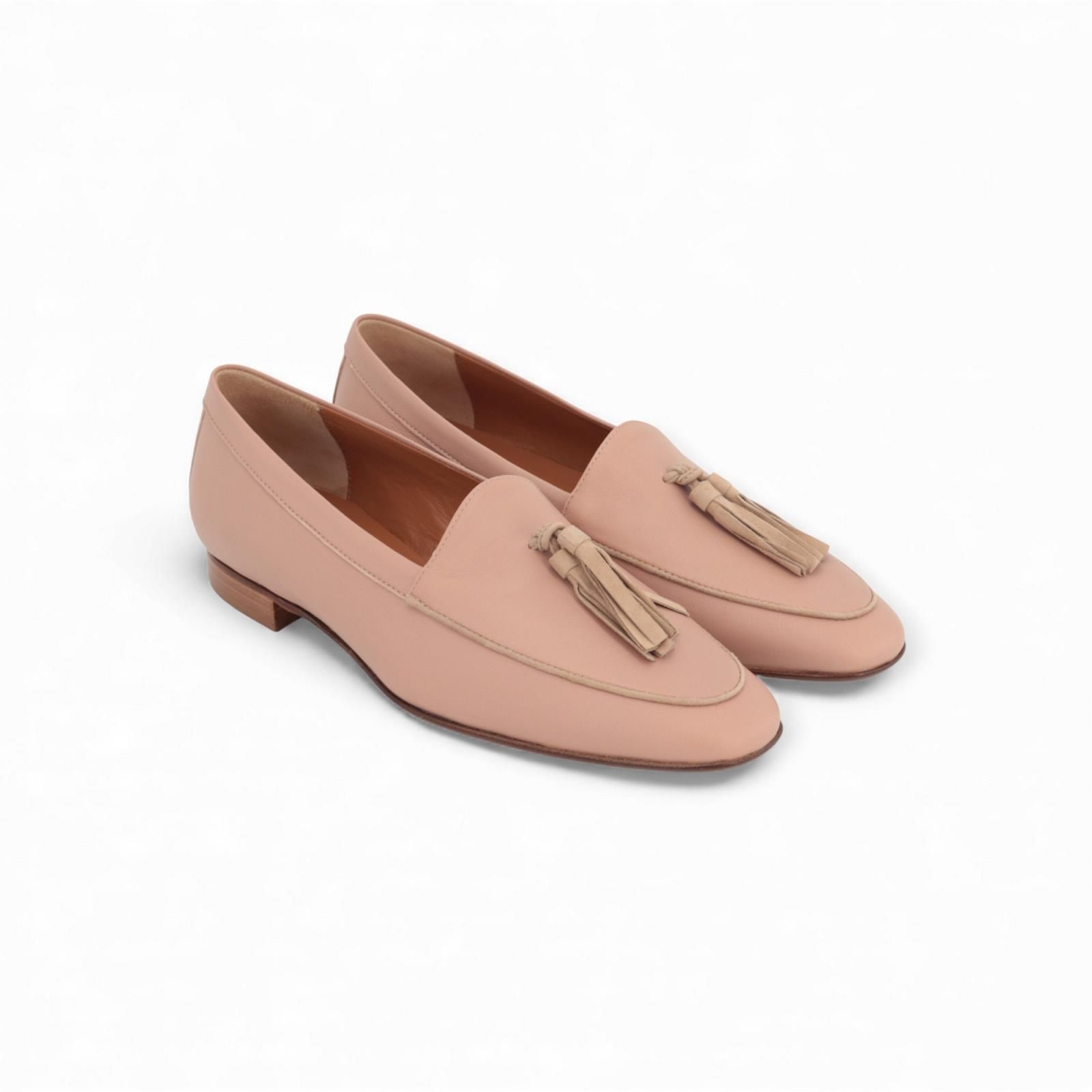 Mocassin LV545N van Voltan voor dames. Deze mocassin is in zacht roze ‘cipria’ leer met een beige suède flosh en beige stekking rond de neus. Is een zeer elegant model met een licht scherpe top. Heeft een antislip zooltje.